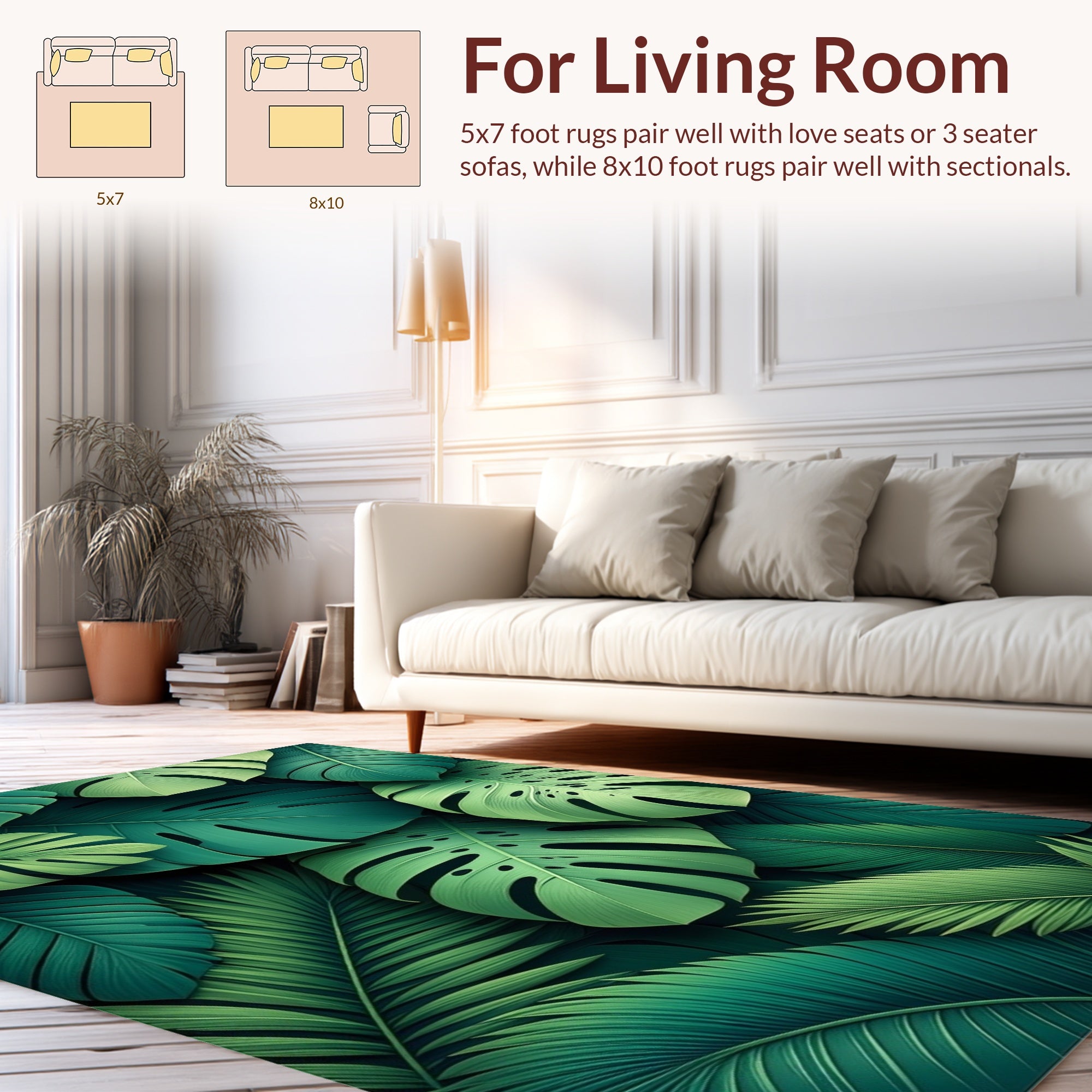 Flatwoven High Traffic Area Rug, Tropical Leaf Inspired, Non Slip, Stain Resistant, Washable Area Rugs for Living Room, Bedroom (Green) Overview: