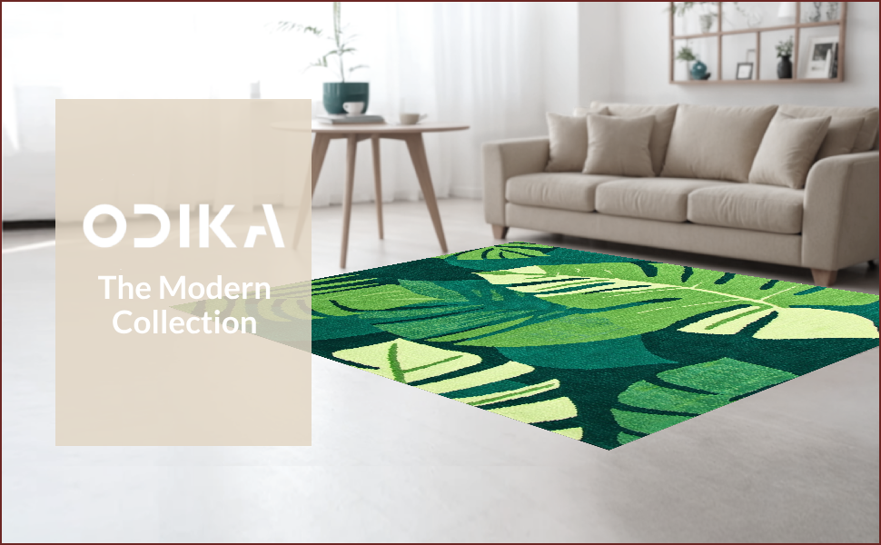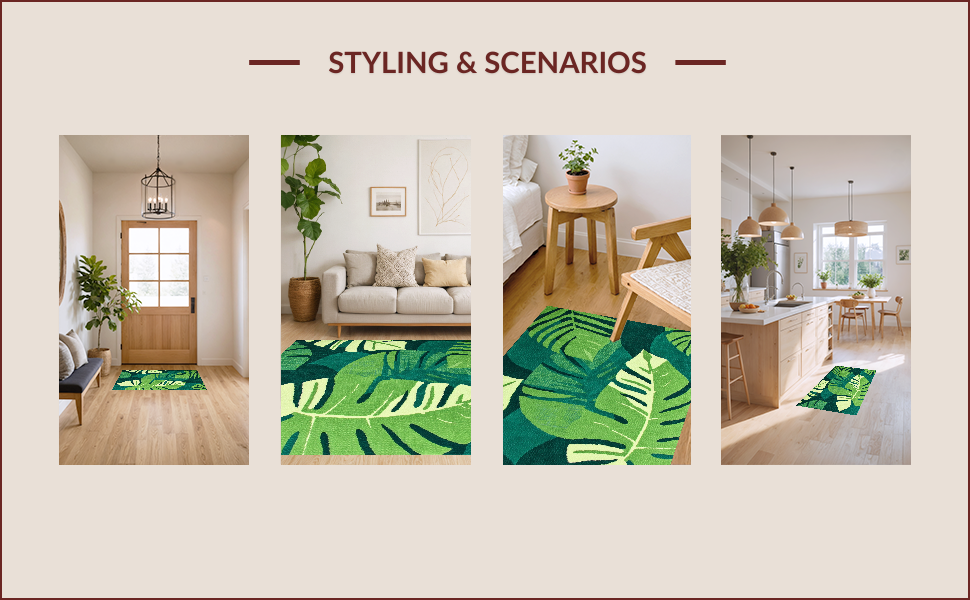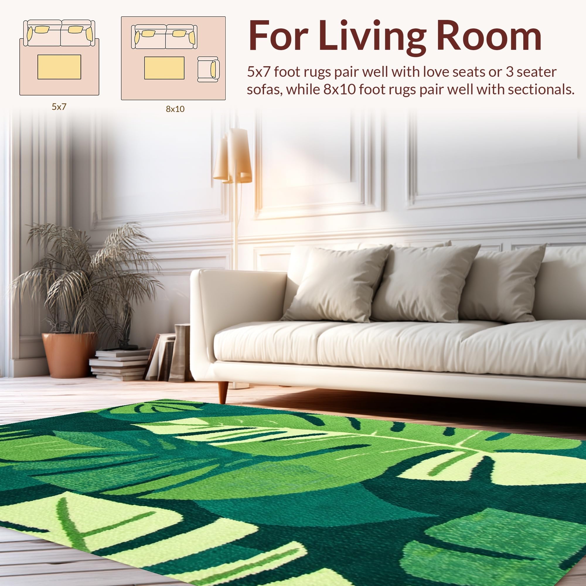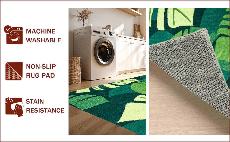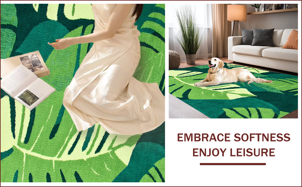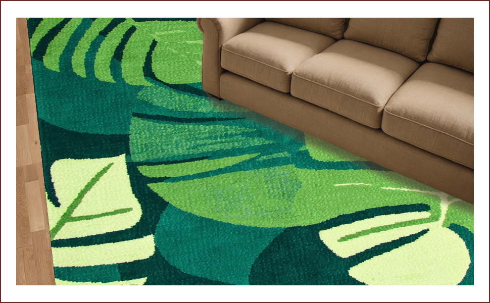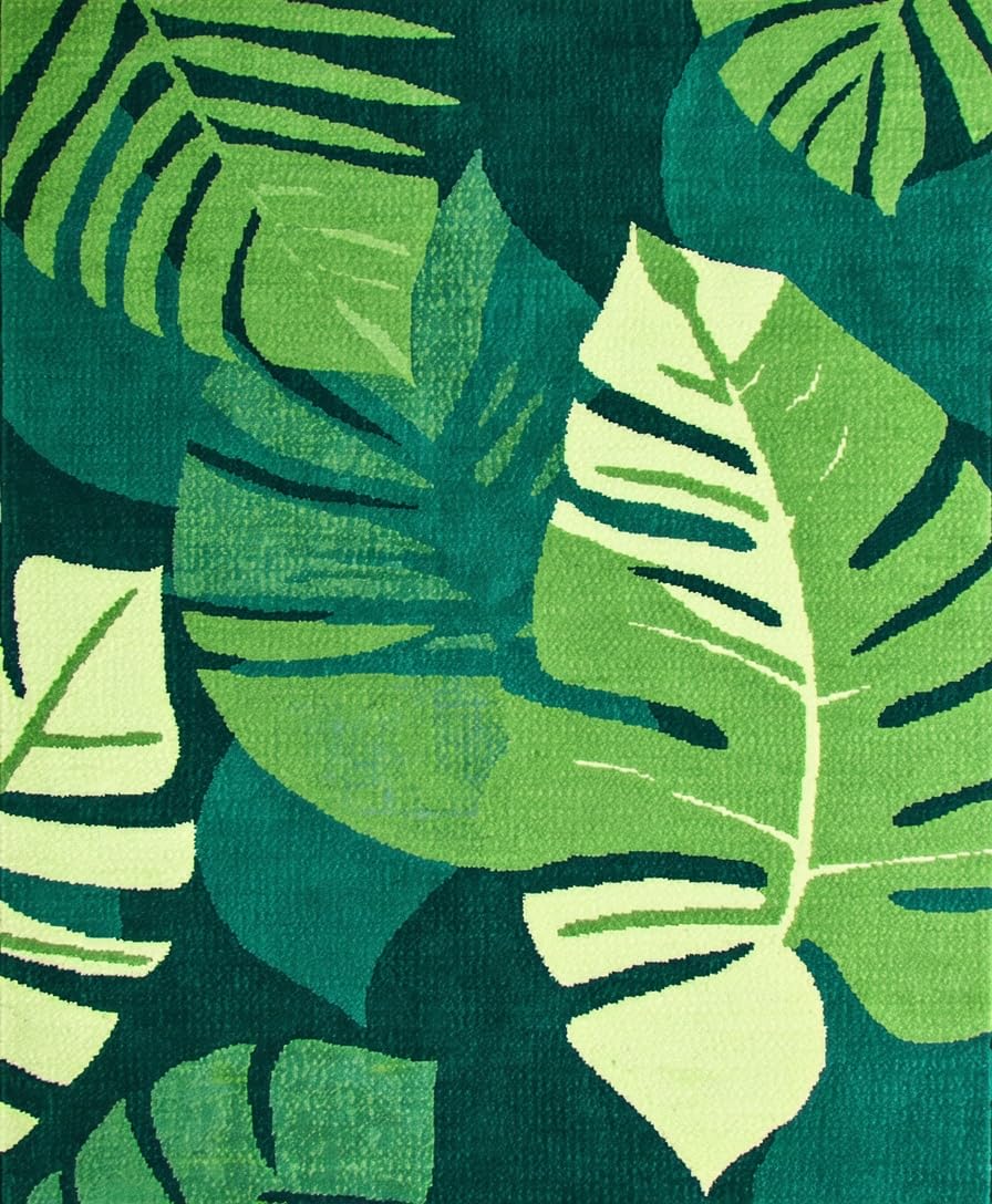 Ultra Soft Area Rug, Non Slip, Stain Resistant, Washable Area Rugs for Living Room, Bedroom, Tropical Leaf Motif Elegance(Green) Overview:
