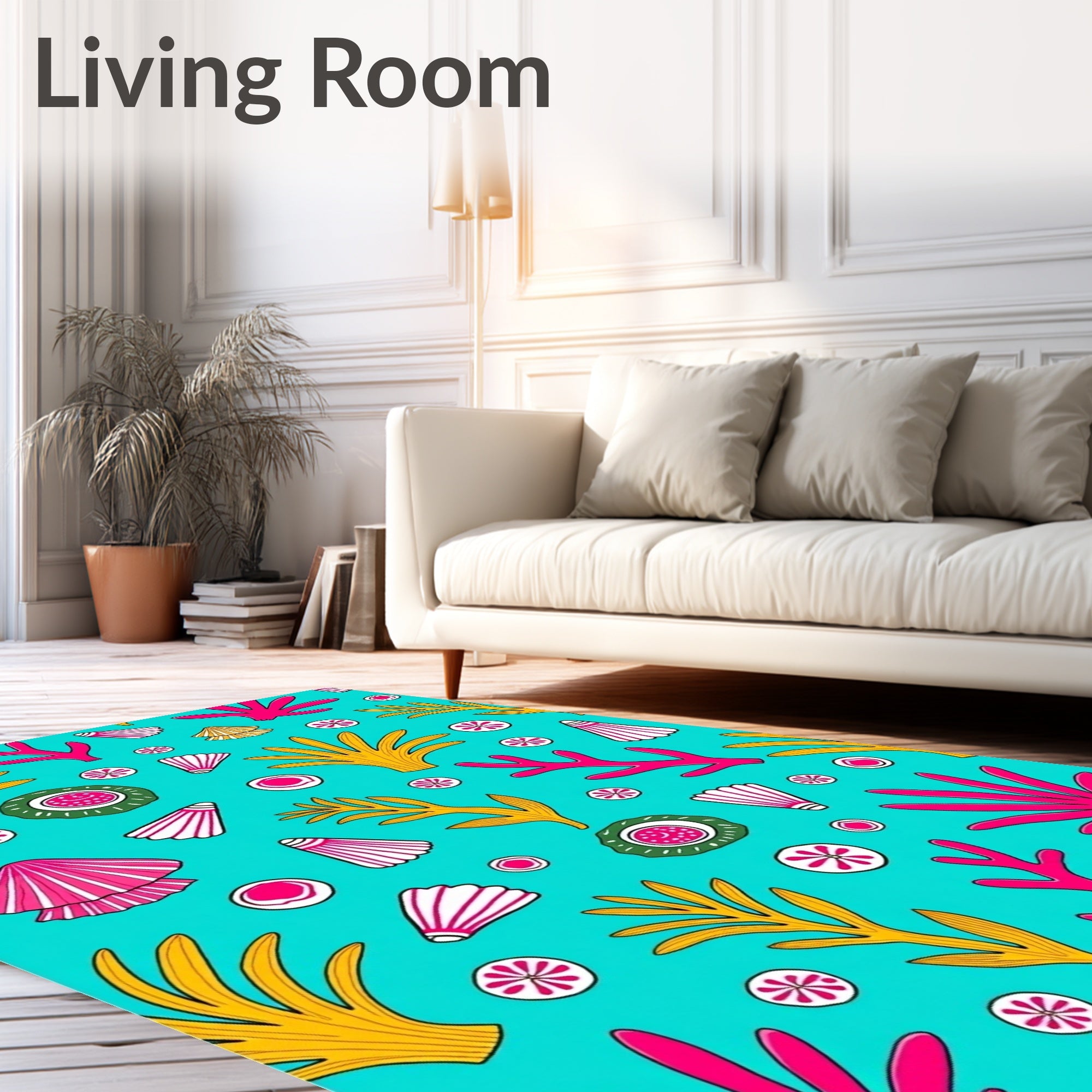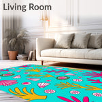 Ultra Soft Area Rug, Non Slip, Stain Resistant, Washable Area Rugs for Living Room, Bedroom, Tropical Marine Celebration(Turquoise) Overview:
