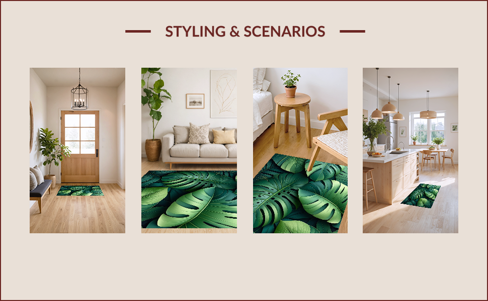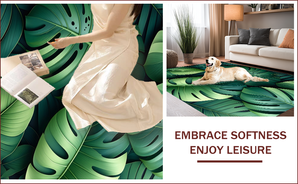 Ultra Soft Area Rug, Non Slip, Stain Resistant, Washable Area Rugs for Living Room, Bedroom, Tropical Oasis Leaf Arrangement(Green) Overview: