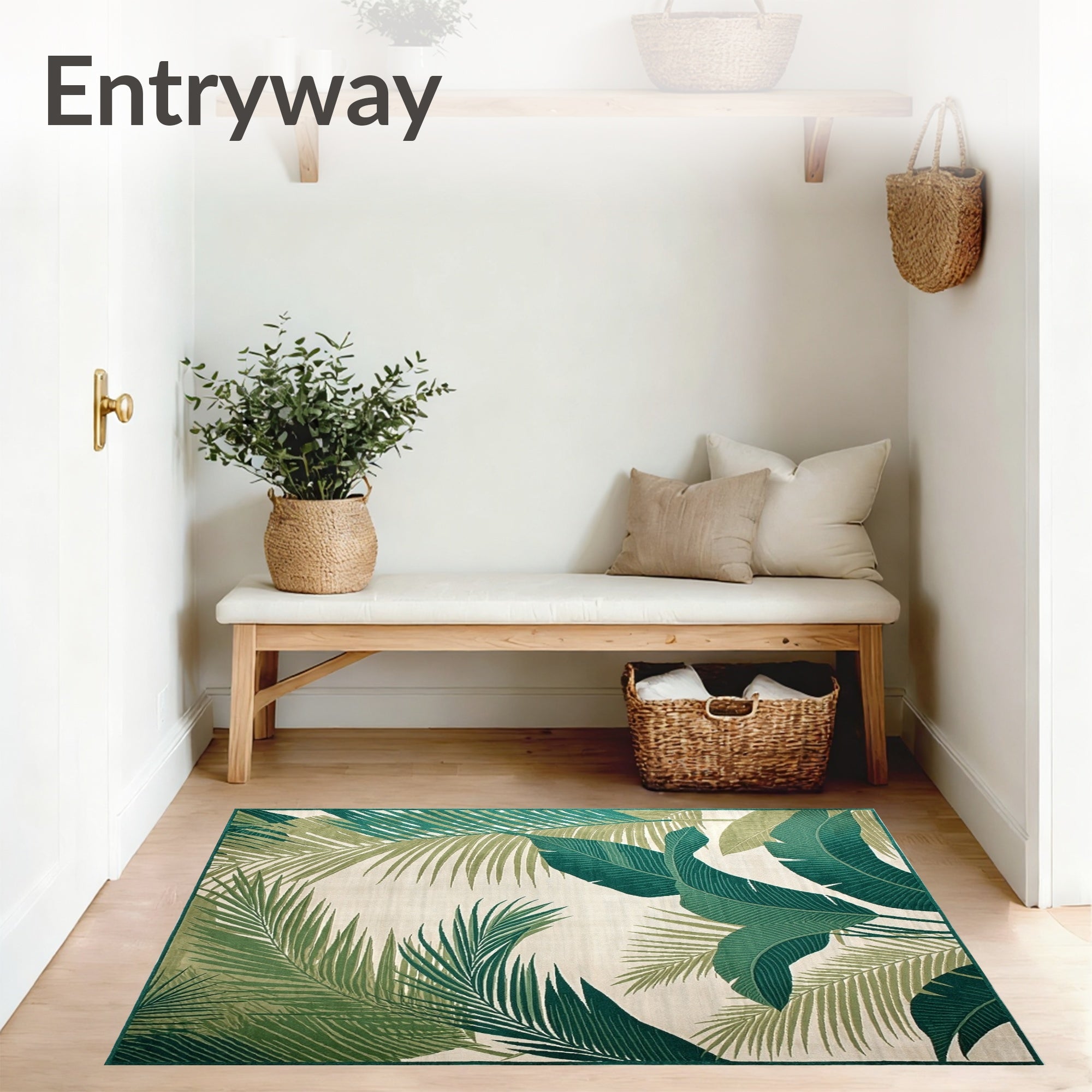 Tropical Paradise Area Rug Royal Palm Leaf Design Carpet(Green)