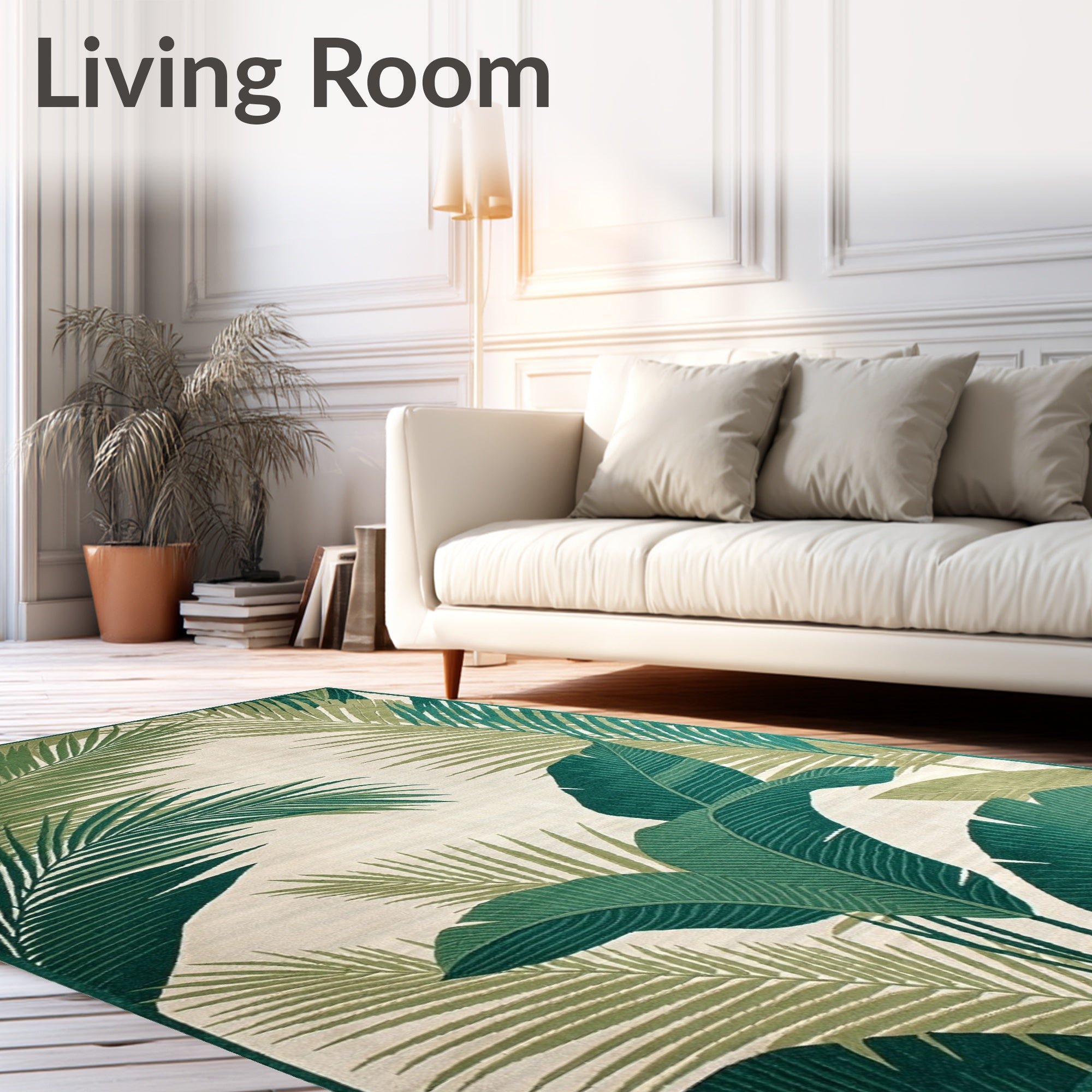 Ultra Soft Area Rug, Non Slip, Stain Resistant, Washable Area Rugs for Living Room, Bedroom, Tropical Paradise Area Rug Royal Palm Leaf Design Carpet(Green) Overview: