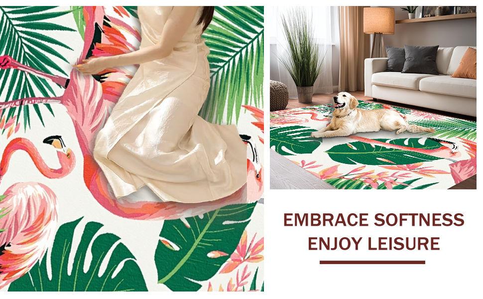 Ultra Soft Area Rug, Non Slip, Stain Resistant, Washable Area Rugs for Living Room, Bedroom, Tropical Pink Flamingo Aesthetic(Pink) Overview: