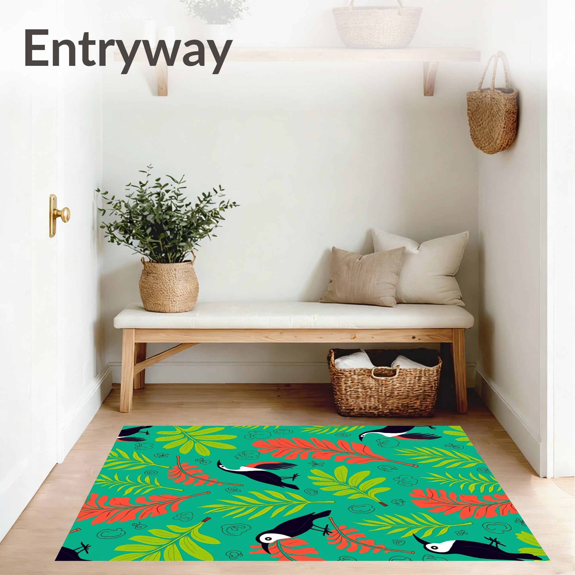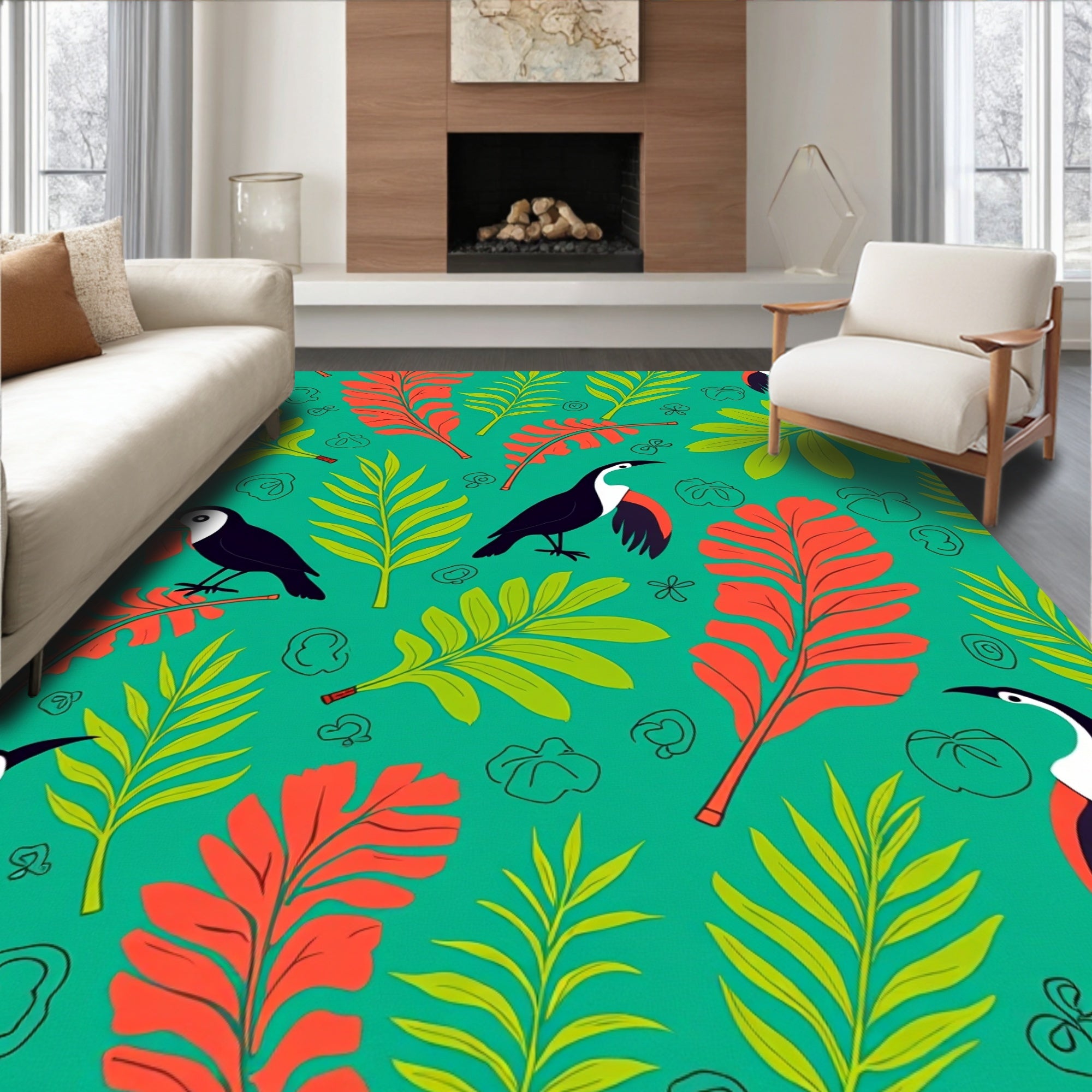 Ultra Soft Area Rug, Non Slip, Stain Resistant, Washable Area Rugs for Living Room, Bedroom, Tropical Rainforest Canopy Botanical Print Indoor Floor Covering(Green) Overview: