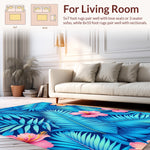 Flatwoven High Traffic Area Rug, Tropical Vibrant Floral Arrangement, Non Slip, Stain Resistant, Washable Area Rugs for Living Room, Bedroom (Blue) Overview: