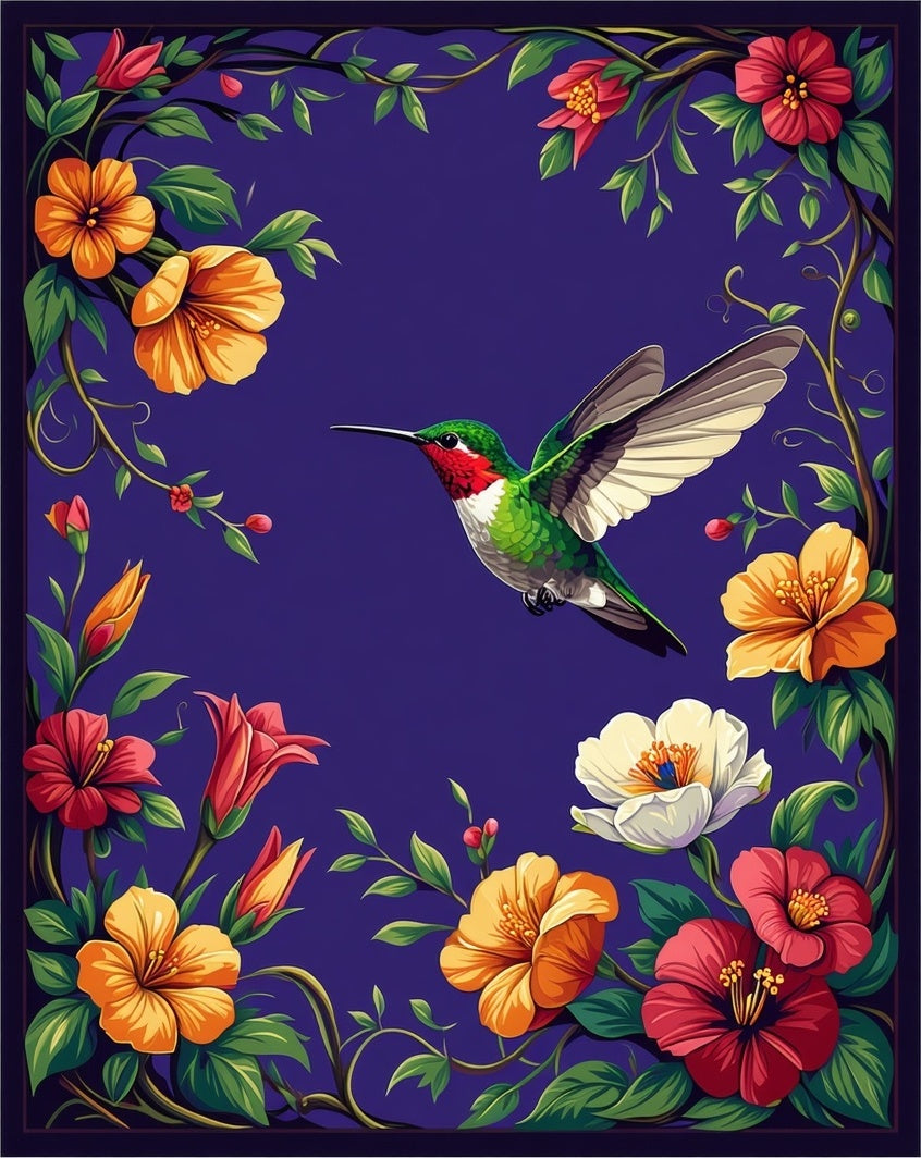 Nectar Half Round with Hummingbird and Trumpet Flower Design(Purple)