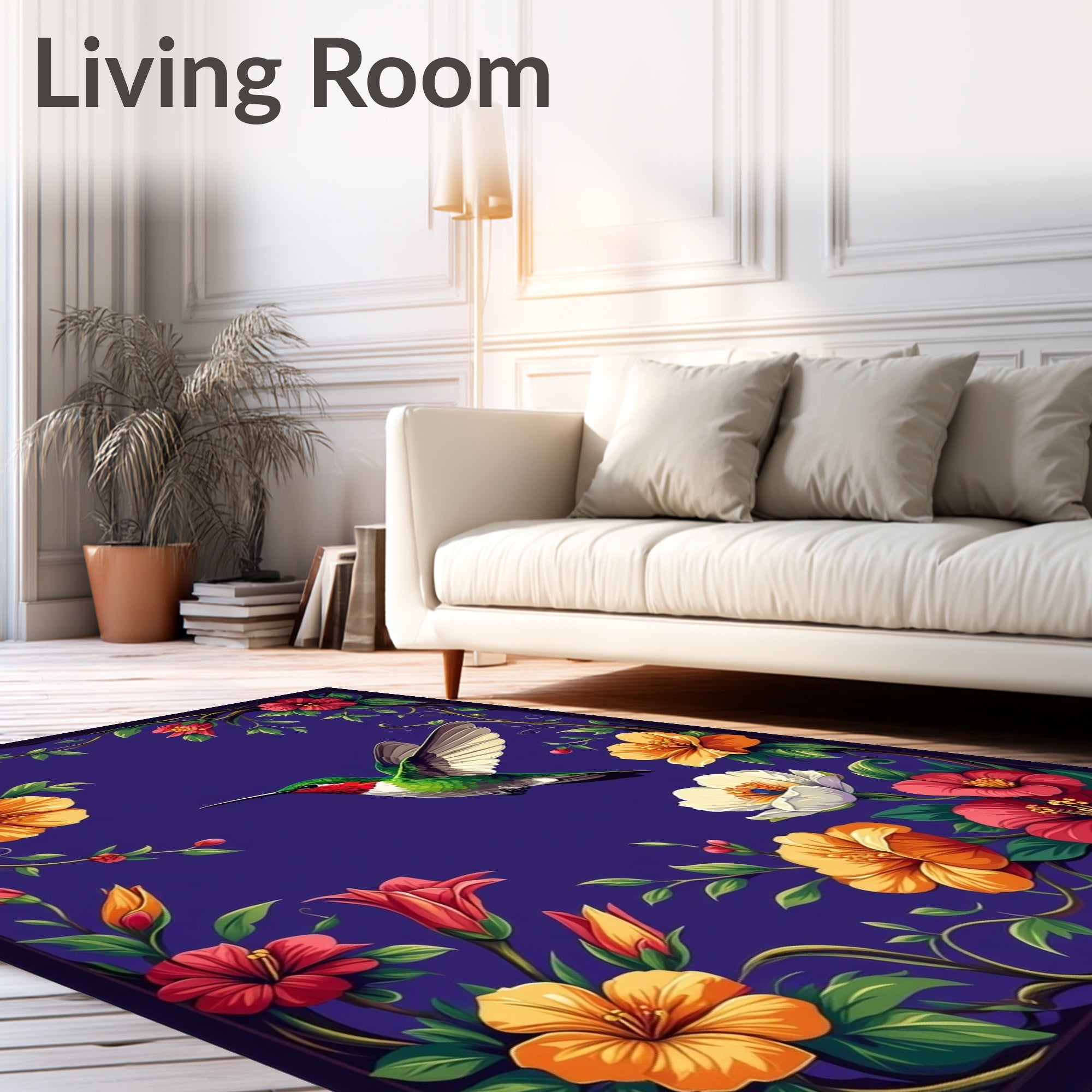 Flatwoven High Traffic Area Rug, Nectar Half Round with Hummingbird and Trumpet Flower Design, Non Slip, Stain Resistant, Washable Area Rugs for Living Room, Bedroom (Purple) Overview: