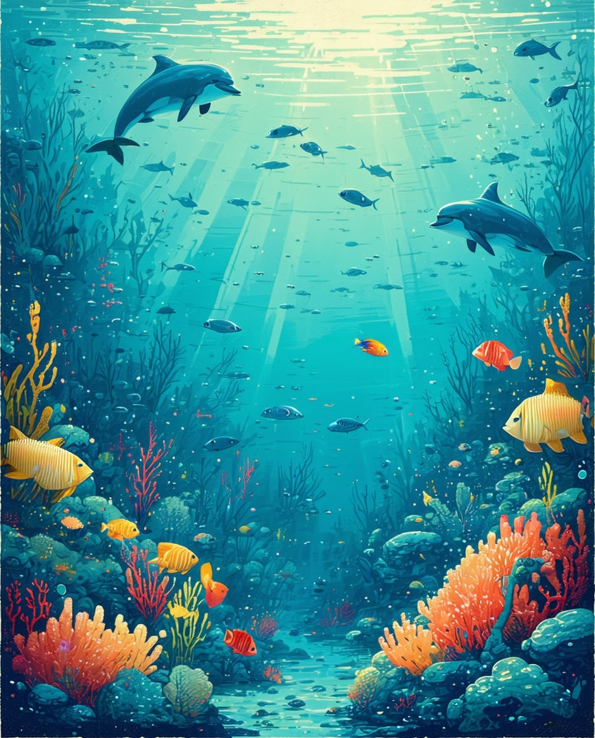 Underwater Adventure Featuring Colorful Sea Creatures Design(Blue)
