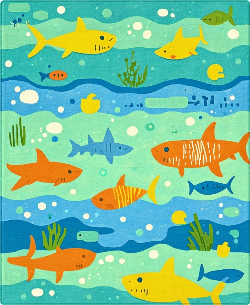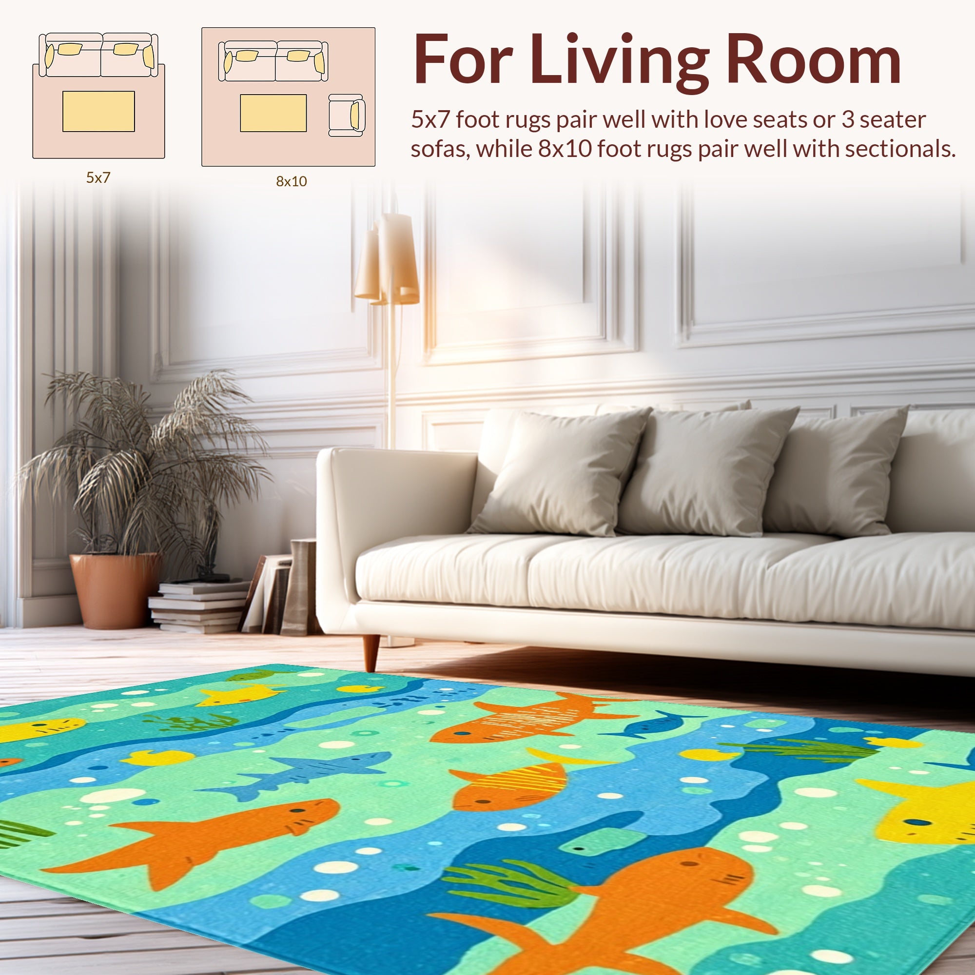 Flatwoven High Traffic Area Rug, Underwater Adventure Theme for Boys, Non Slip, Stain Resistant, Washable Area Rugs for Living Room, Bedroom (Blue) Overview: