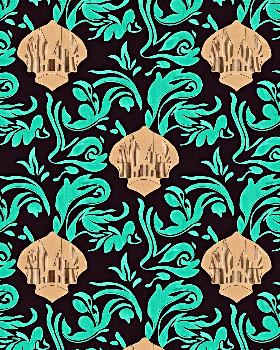 Underwater Garden Kelp Forest with Scallop Shell Medallions(Black)