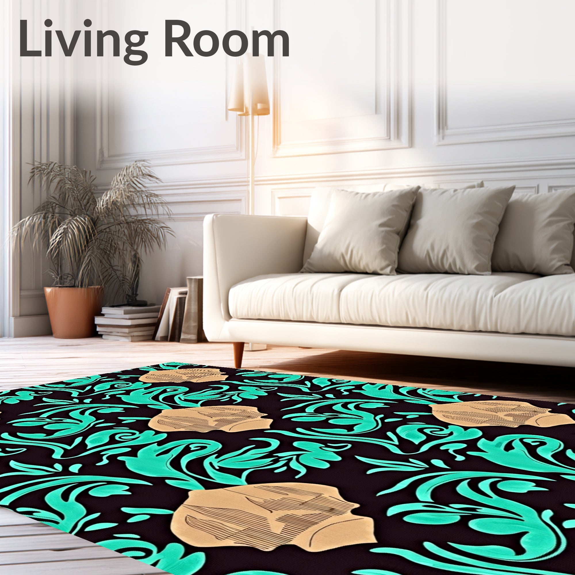 Ultra Soft Area Rug, Non Slip, Stain Resistant, Washable Area Rugs for Living Room, Bedroom, Underwater Garden Kelp Forest with Scallop Shell Medallions(Black) Overview: