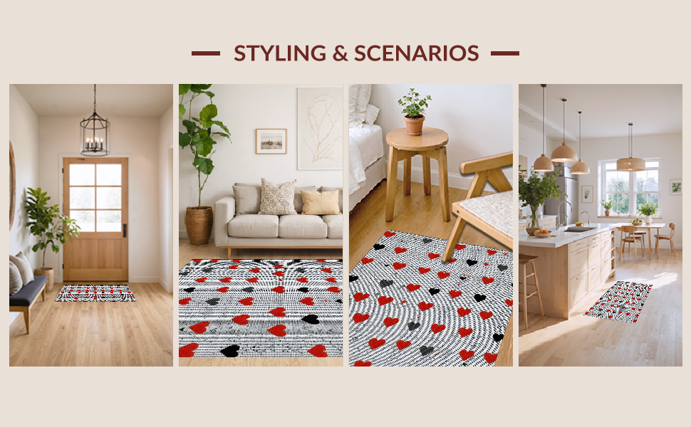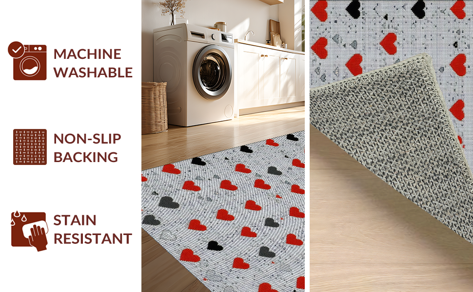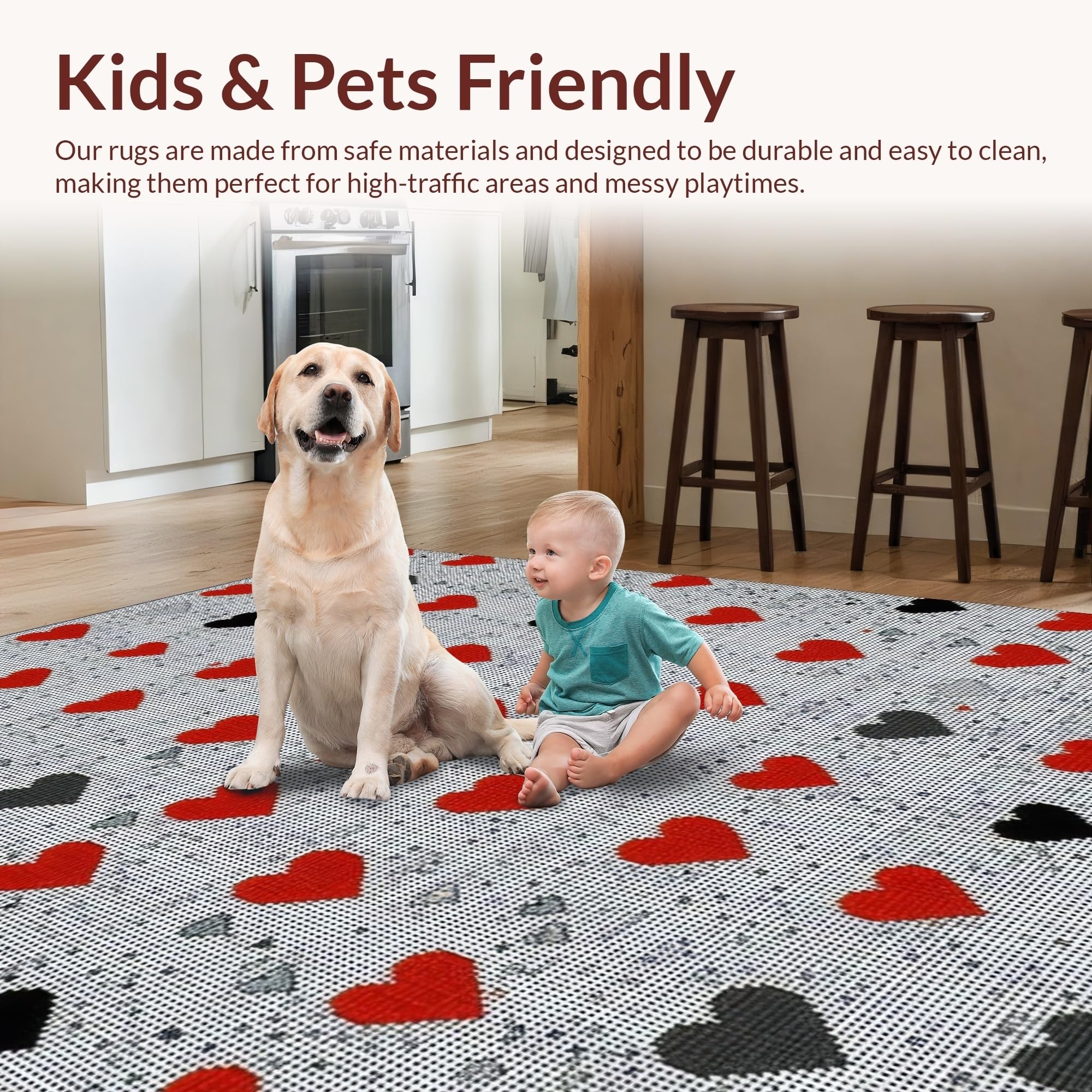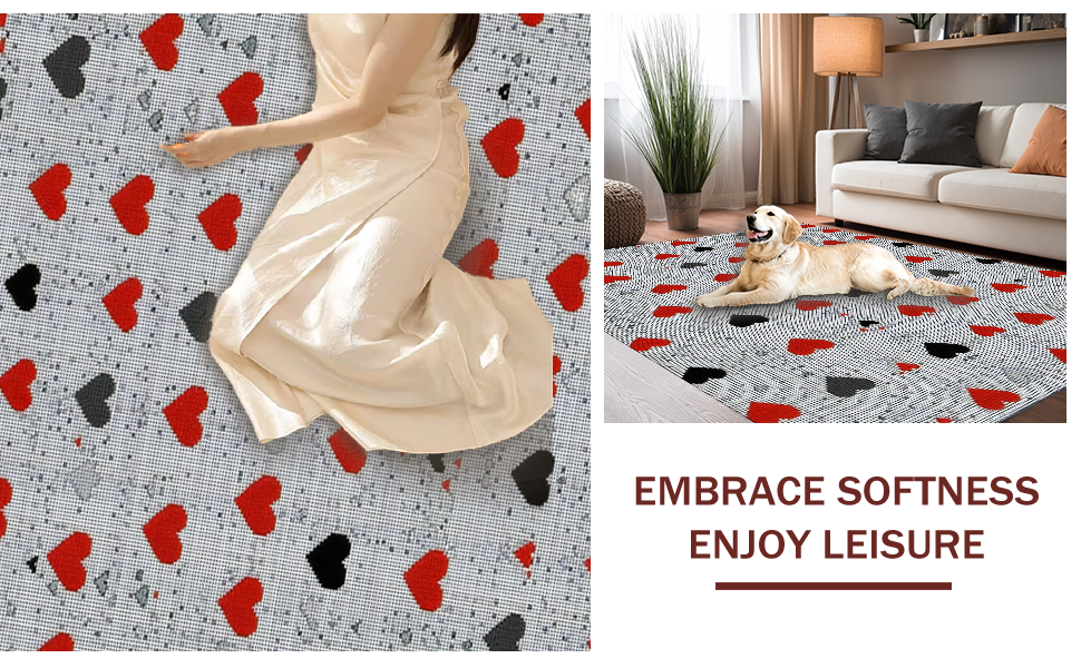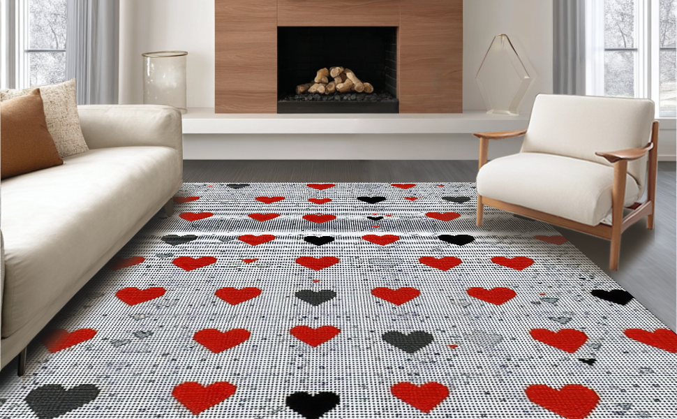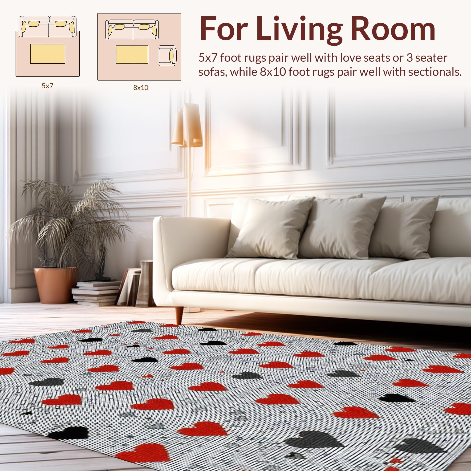 Ultra Soft Area Rug, Non Slip, Stain Resistant, Washable Area Rugs for Living Room, Bedroom, Unique Abstract Heart-Inspired Accent(Red) Overview: