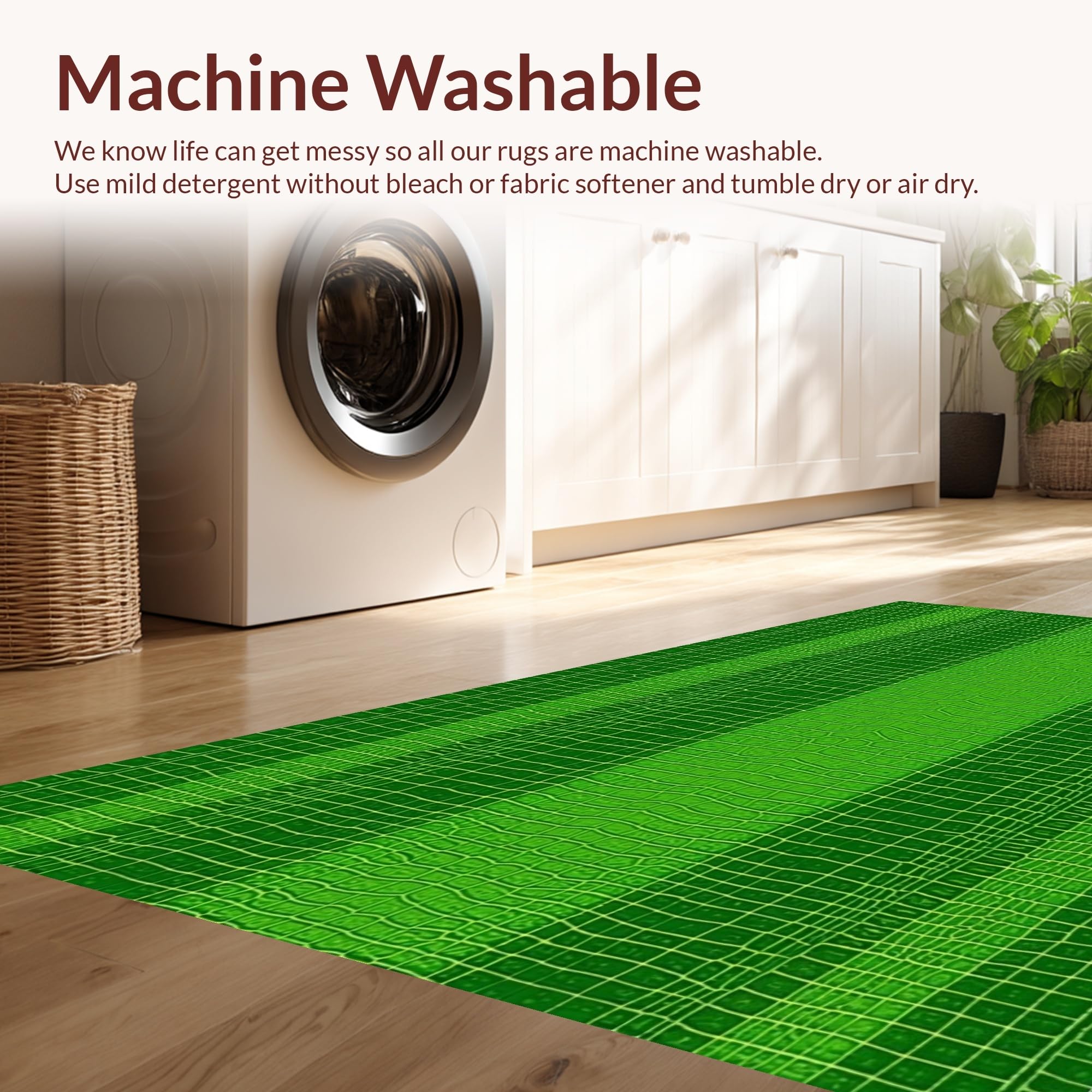 - Machine Washable: Our rugs can be easily thrown in the wash machine.