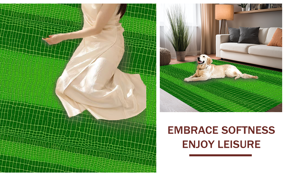 Ultra Soft Area Rug, Non Slip, Stain Resistant, Washable Area Rugs for Living Room, Bedroom, Unique Animal Imprint Soft Touch(Green) Overview: