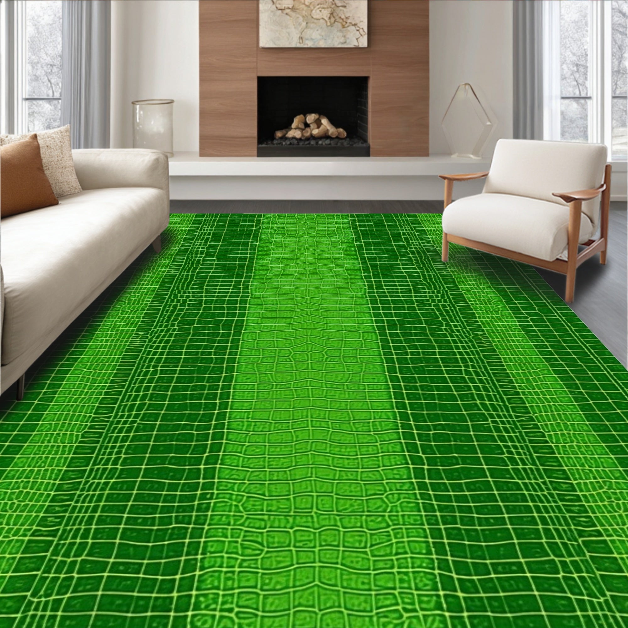 Flatwoven High Traffic Area Rug, Unique Animal Touch, Non Slip, Stain Resistant, Washable Area Rugs for Living Room, Bedroom (Green) Overview: