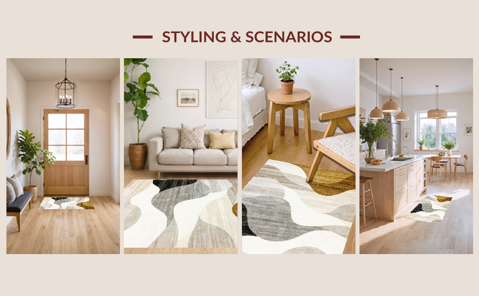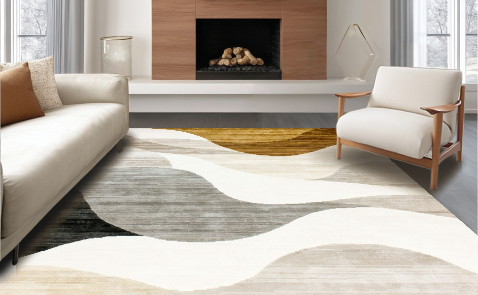 Ultra Soft Area Rug, Non Slip, Stain Resistant, Washable Area Rugs for Living Room, Bedroom, Unique Eclectic Faded Textures(Beige) Overview: