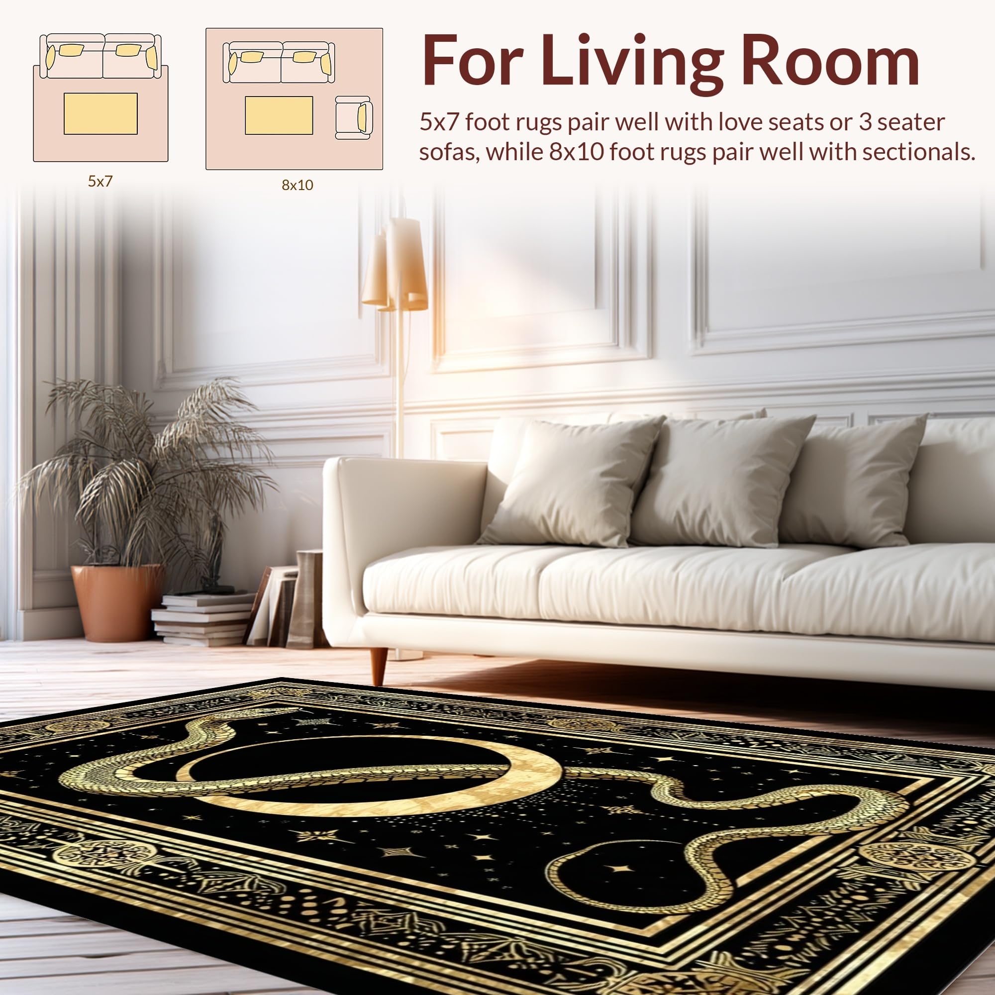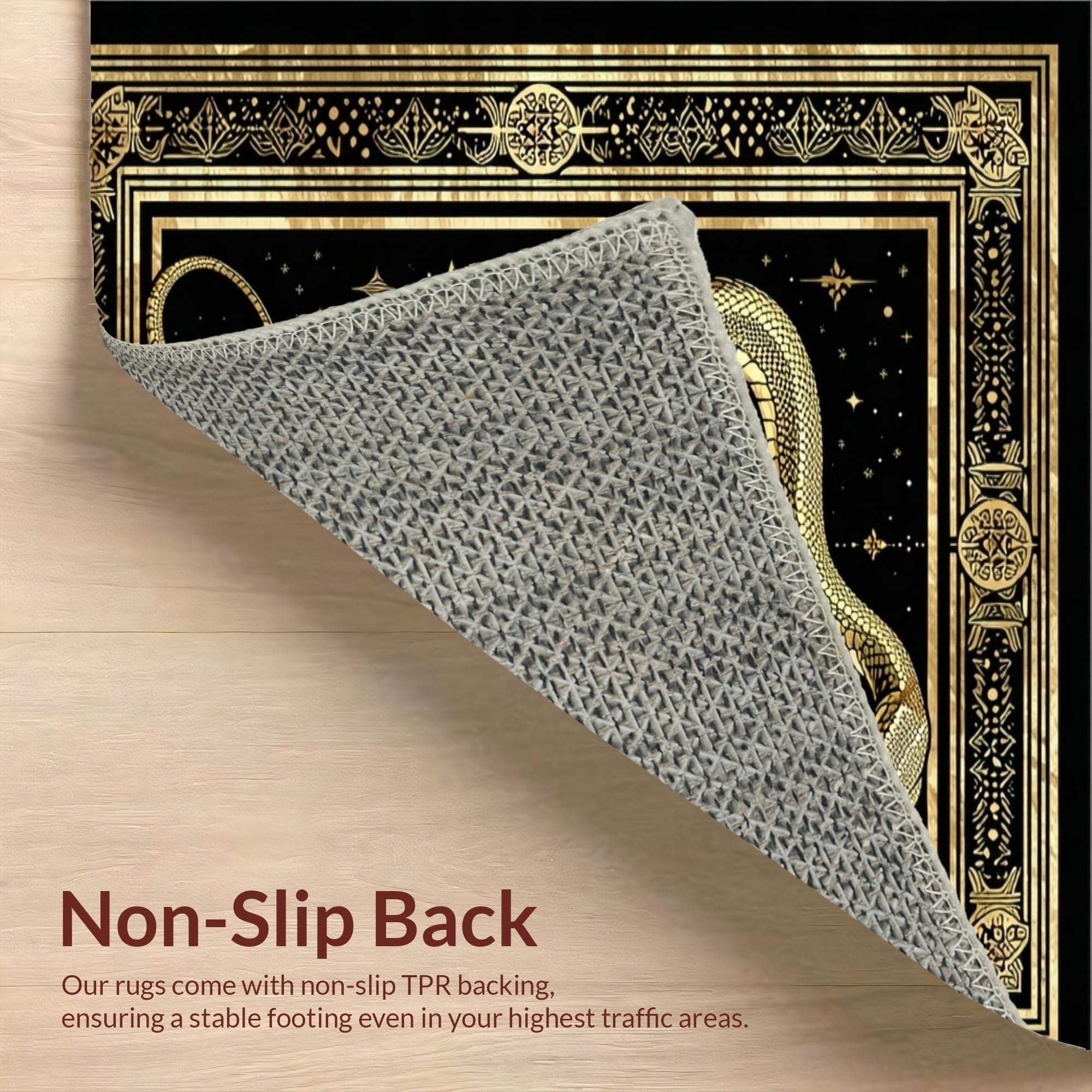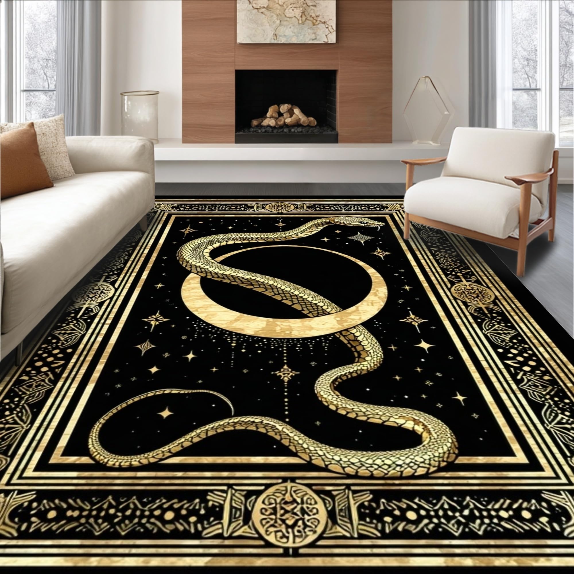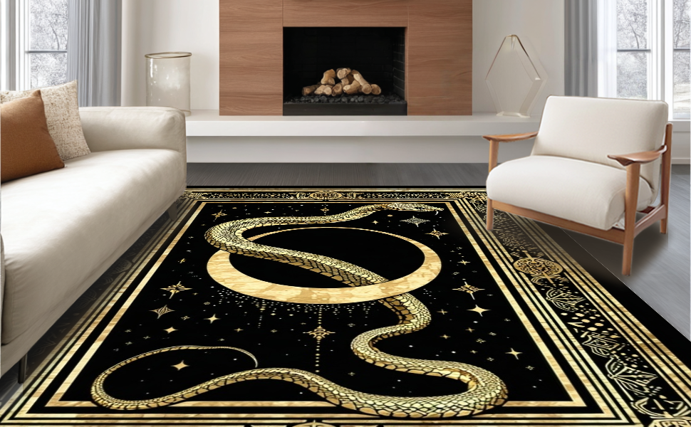 Ultra Soft Area Rug, Non Slip, Stain Resistant, Washable Area Rugs for Living Room, Bedroom, Unique Ethereal Serpent Sculpture(Gold) Overview: