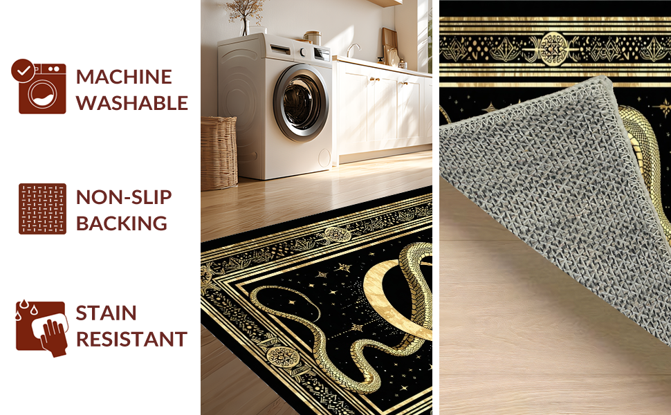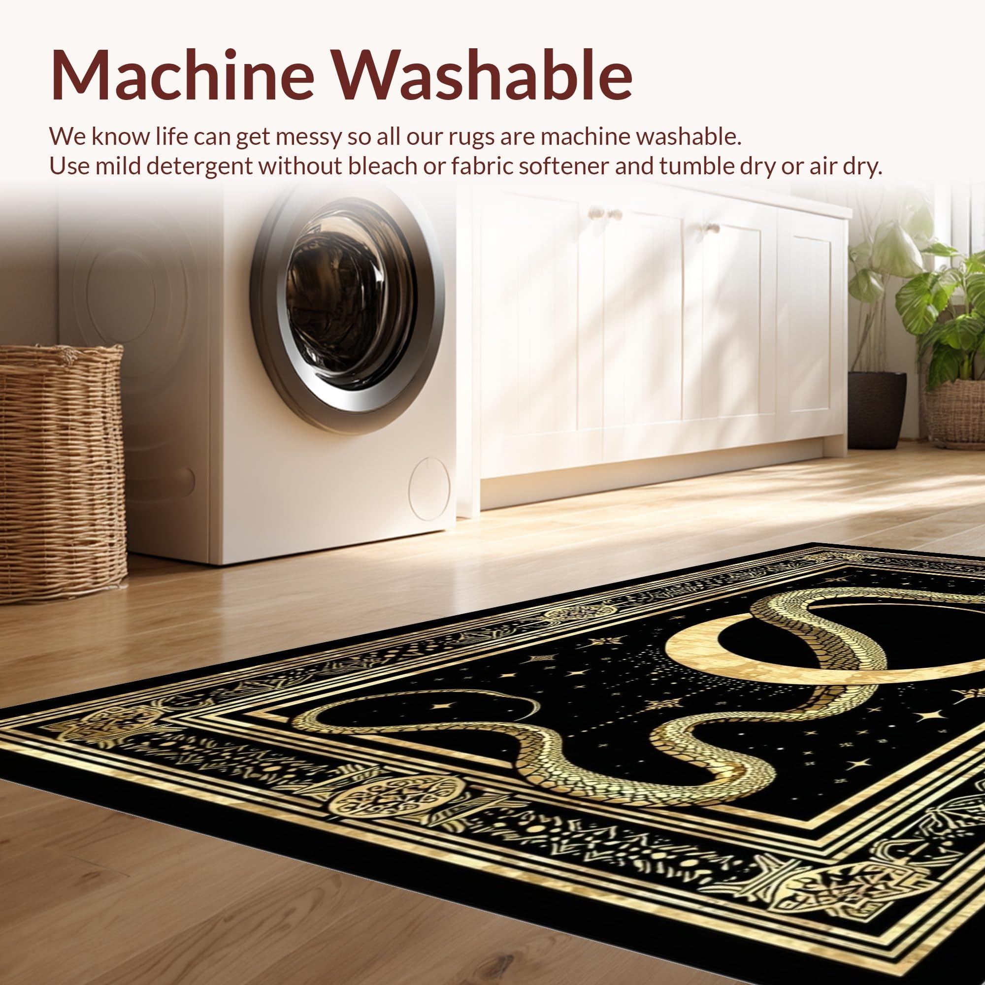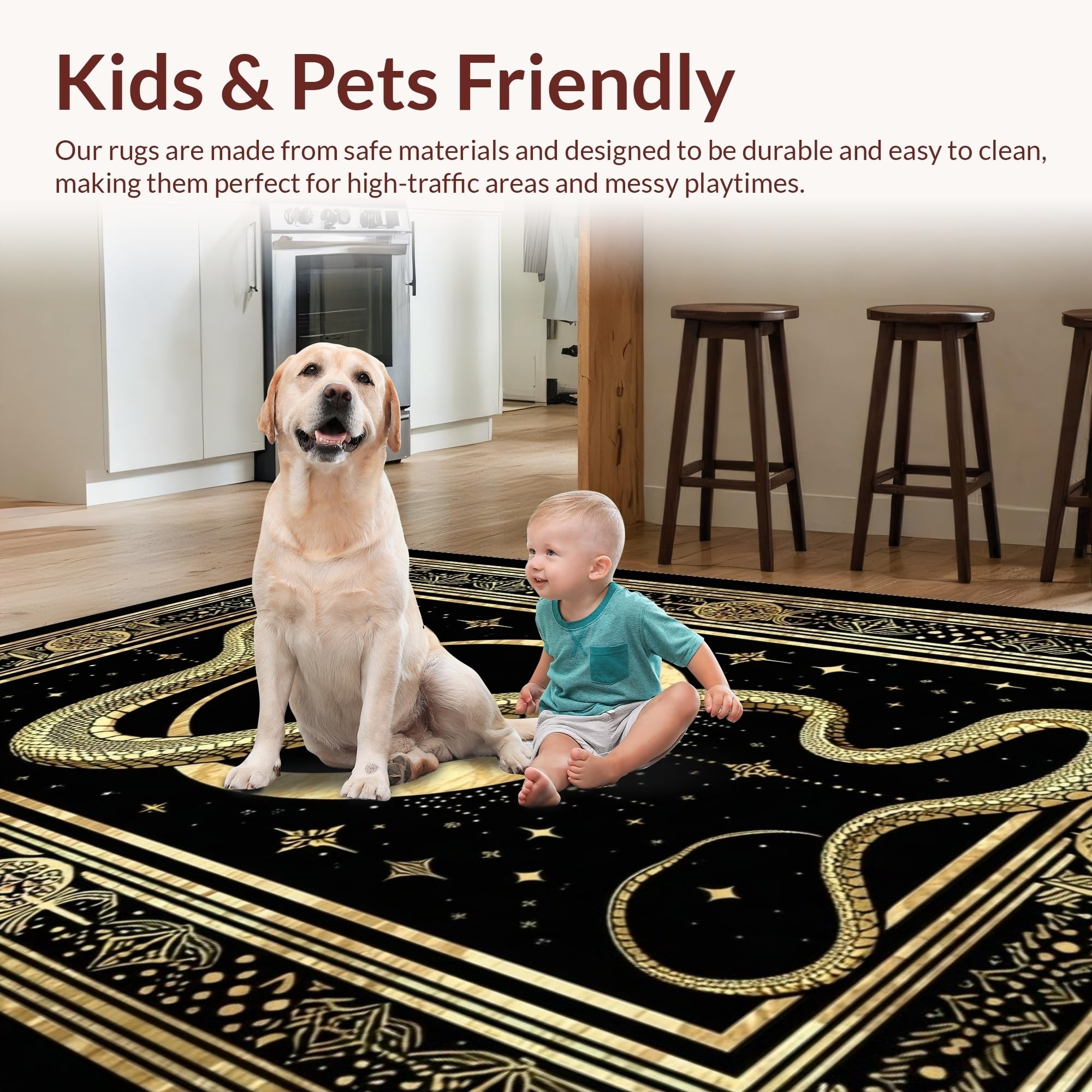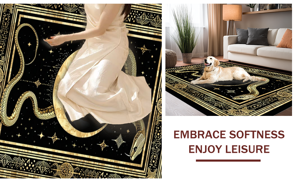 Ultra Soft Area Rug, Non Slip, Stain Resistant, Washable Area Rugs for Living Room, Bedroom, Unique Ethereal Serpent Sculpture(Gold) Overview: