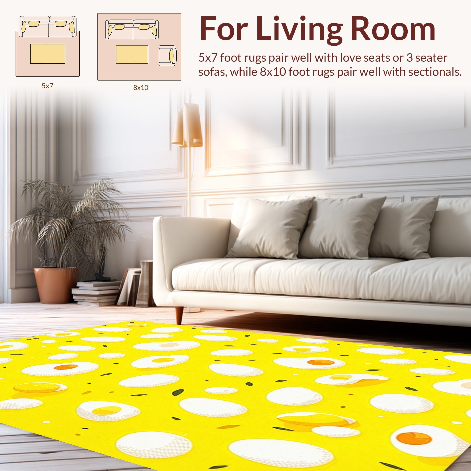 Flatwoven High Traffic Area Rug, Unique Egg, Non Slip, Stain Resistant, Washable Area Rugs for Living Room, Bedroom (Yellow) Overview: