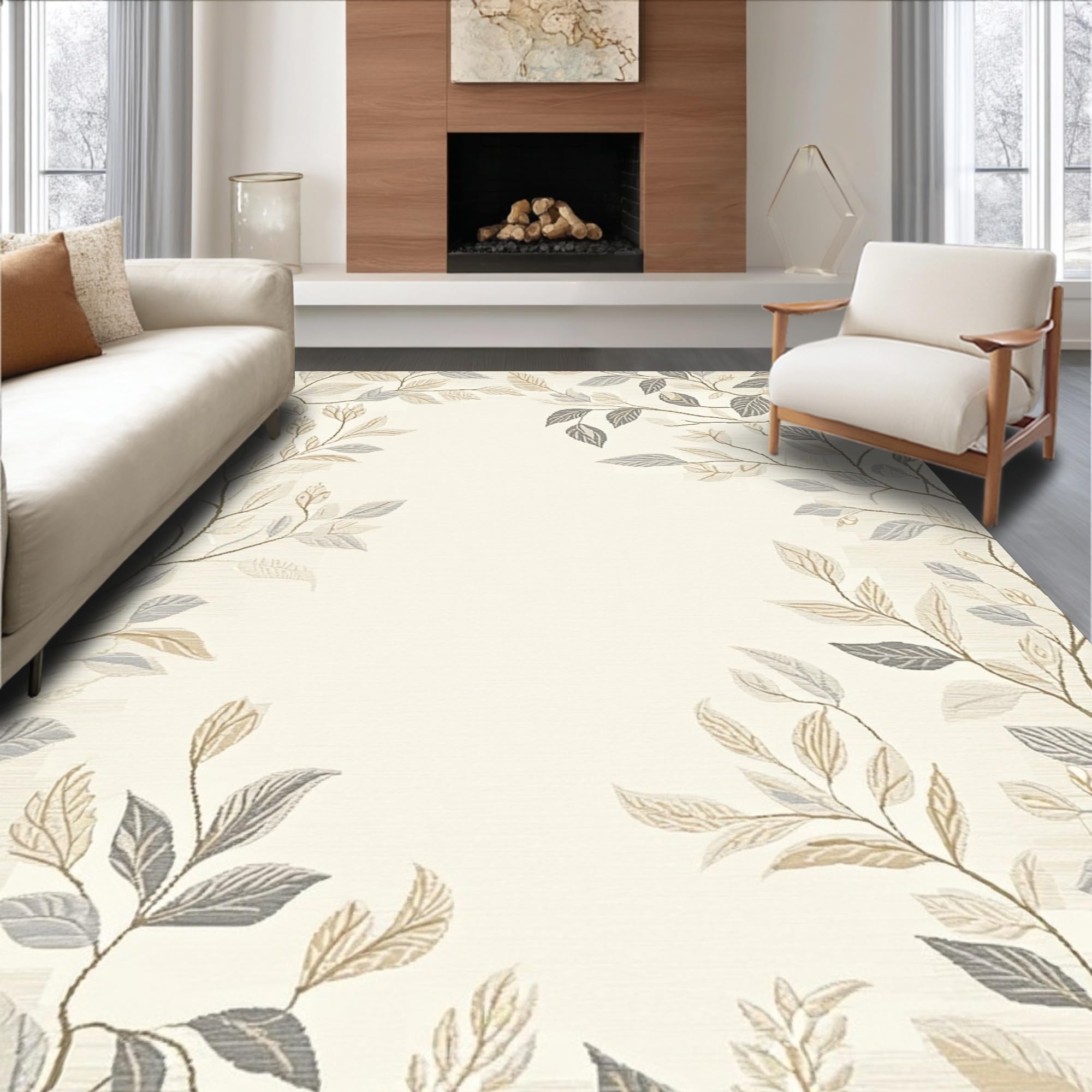 Ultra Soft Area Rug, Non Slip, Stain Resistant, Washable Area Rugs for Living Room, Bedroom, Urban Canopy Area with Stylized Botanical and Gentle Animal Shapes(Beige) Overview: