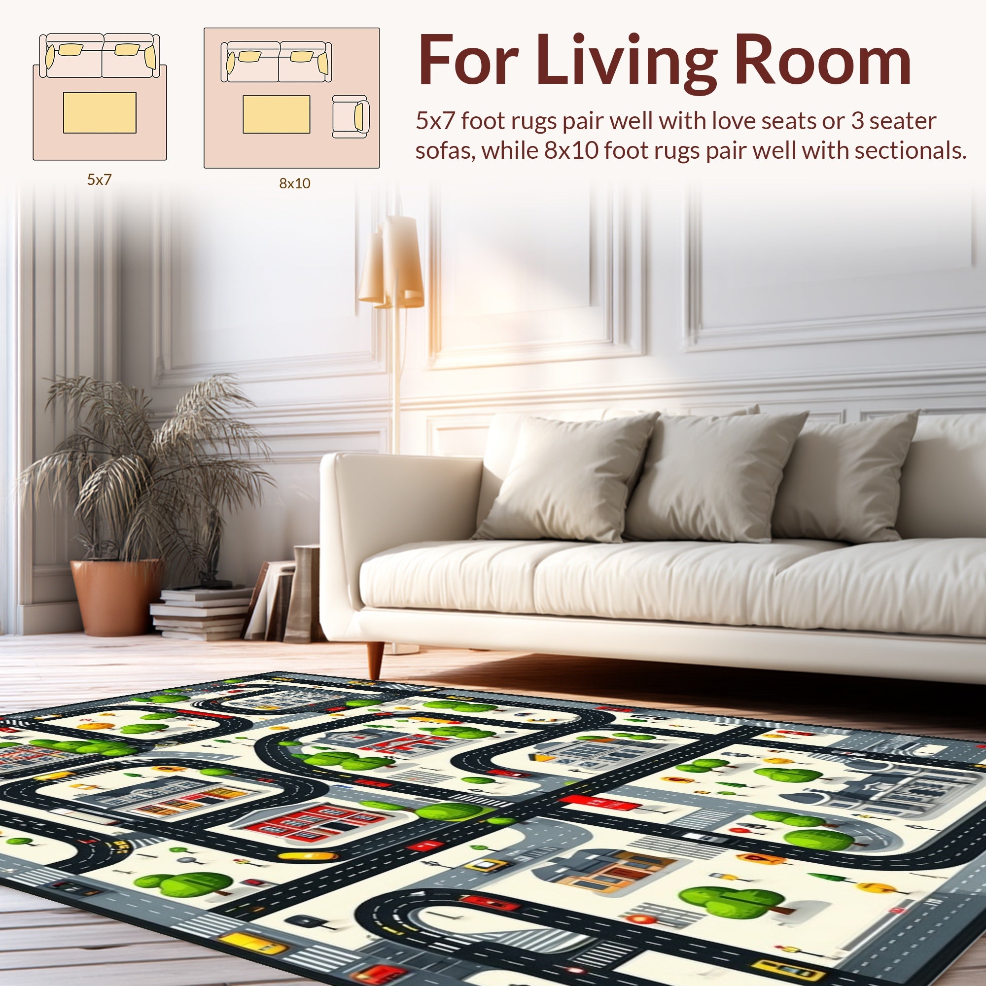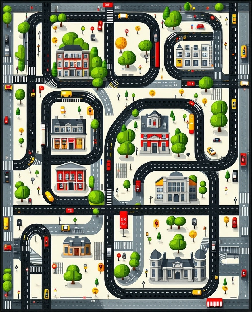 Flatwoven High Traffic Area Rug, Urban Cityscape Play, Non Slip, Stain Resistant, Washable Area Rugs for Living Room, Bedroom (Black) Overview: