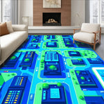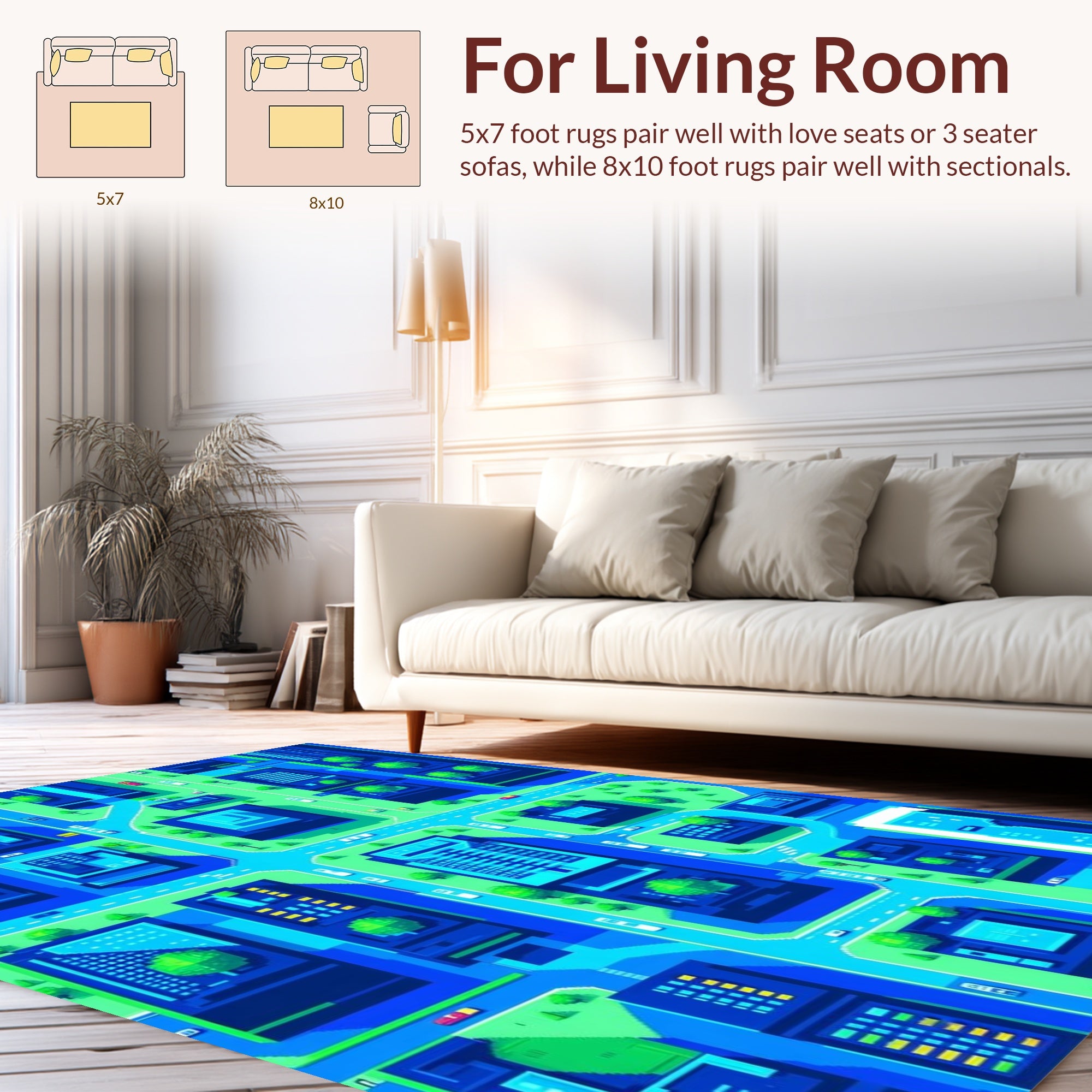 Flatwoven High Traffic Area Rug, Urban Vivid Colorful Landscape, Non Slip, Stain Resistant, Washable Area Rugs for Living Room, Bedroom (Blue) Overview:
