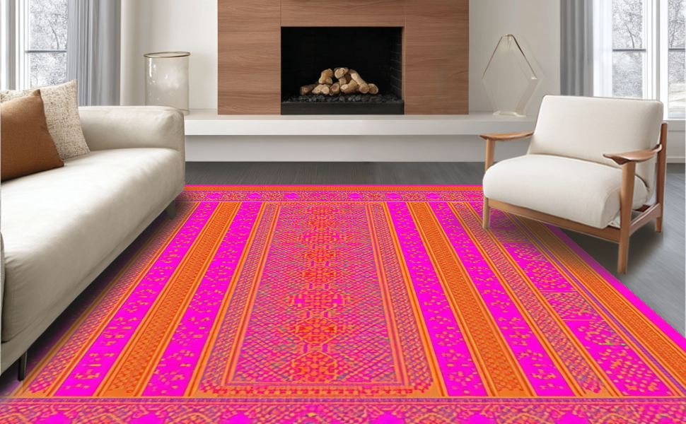 Ultra Soft Area Rug, Non Slip, Stain Resistant, Washable Area Rugs for Living Room, Bedroom, Vibrant Abstract Art Design(Pink) Overview: