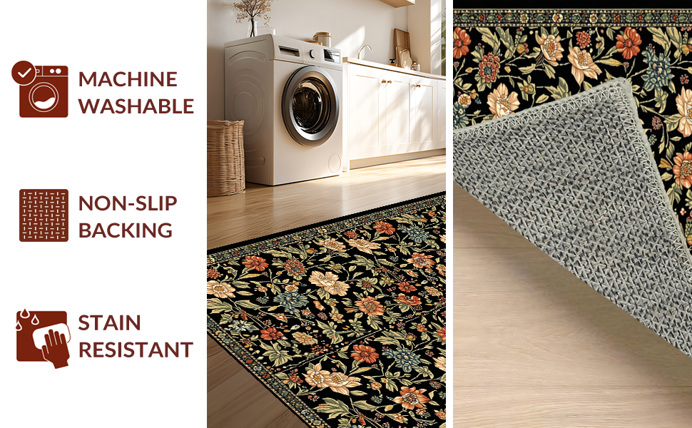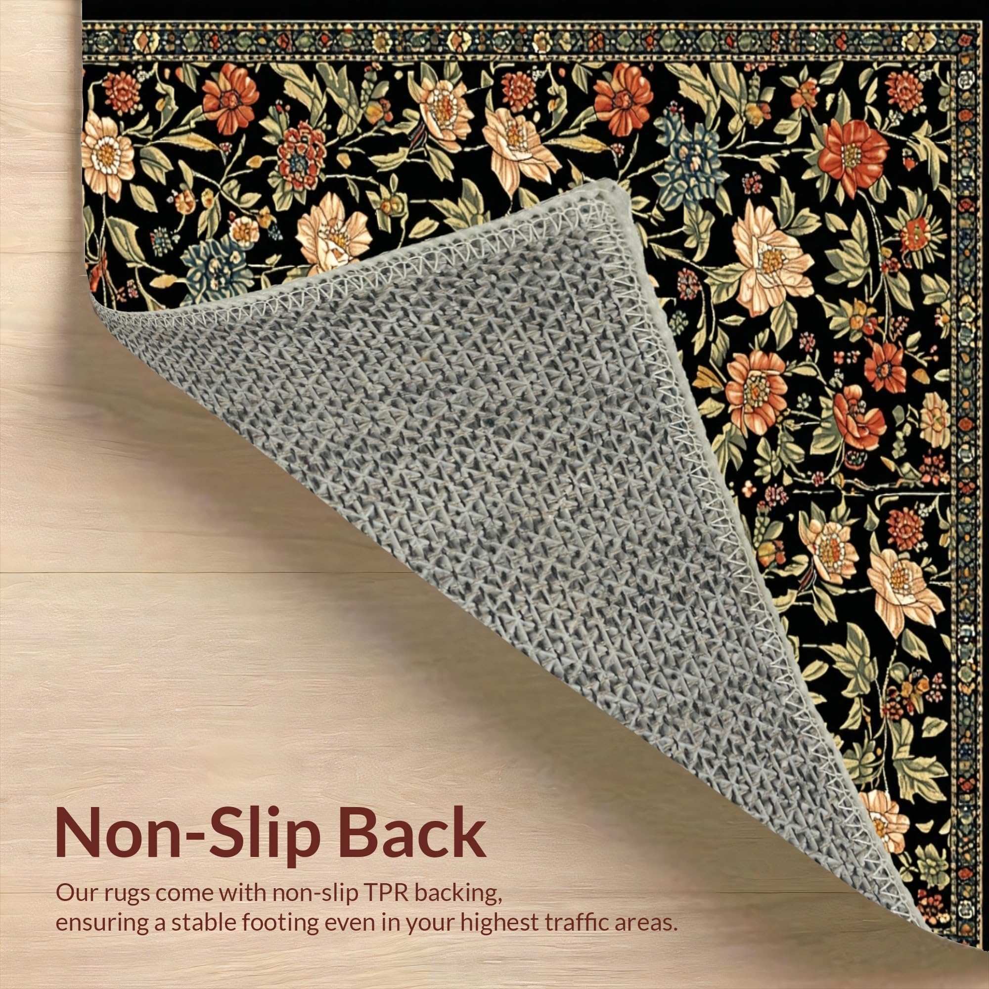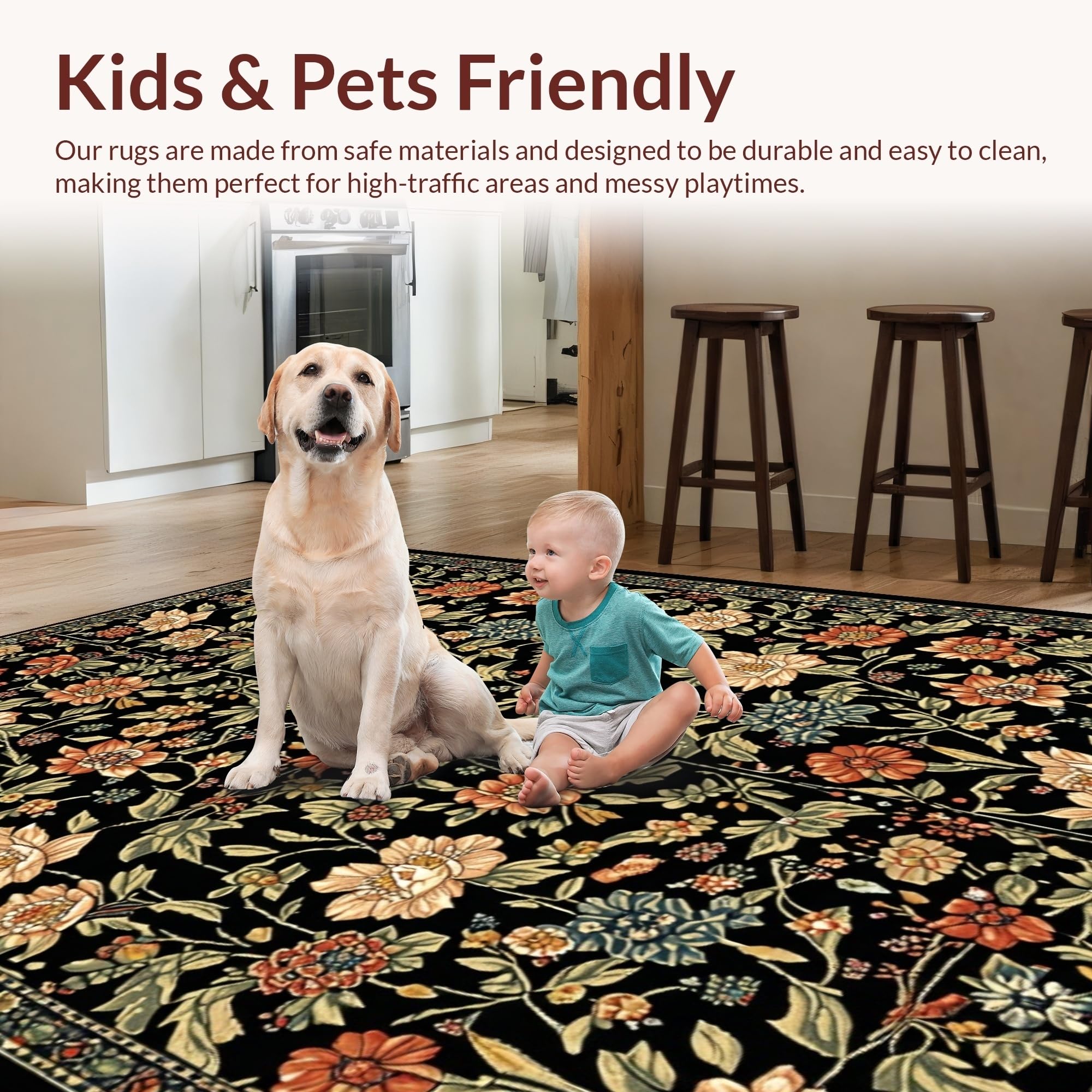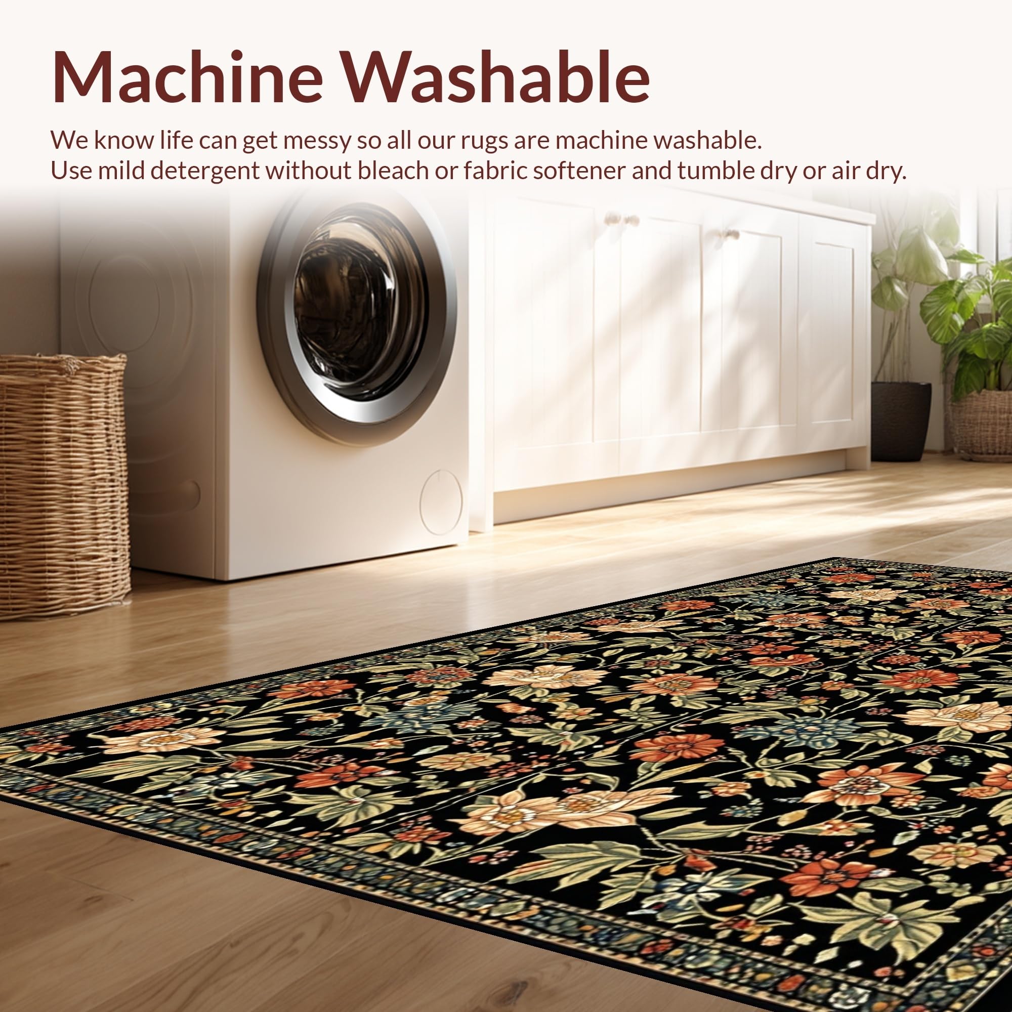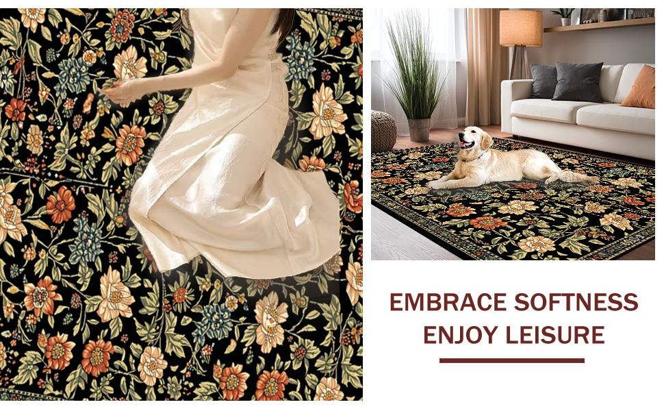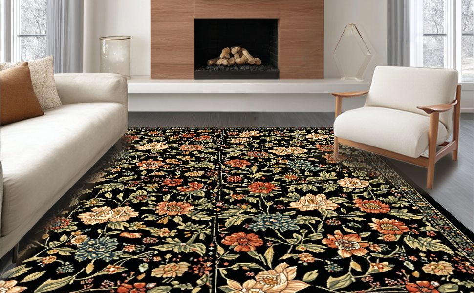 Ultra Soft Area Rug, Non Slip, Stain Resistant, Washable Area Rugs for Living Room, Bedroom, Vibrant Abstract Botanical Aesthetic(Black) Overview:
