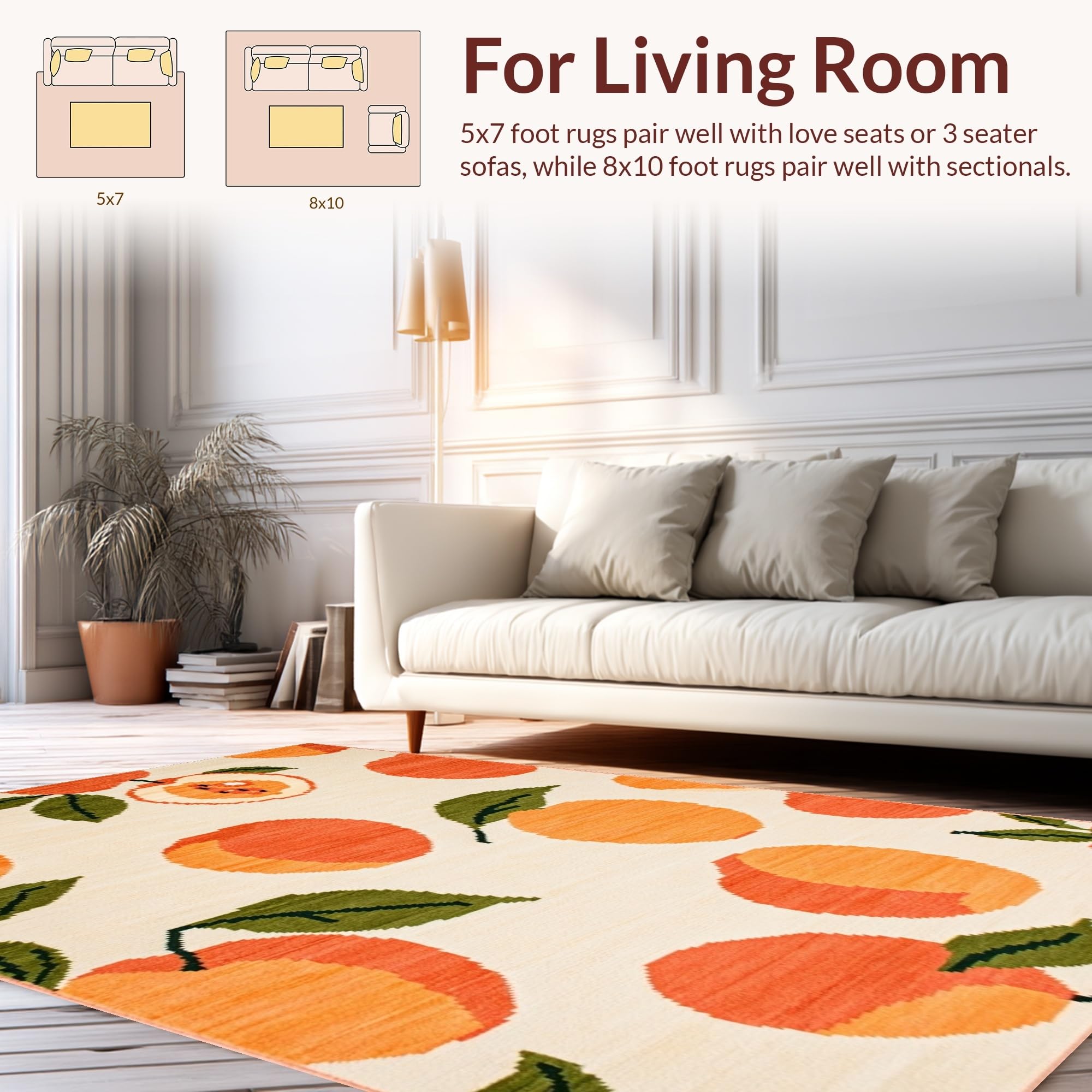Ultra Soft Area Rug, Non Slip, Stain Resistant, Washable Area Rugs for Living Room, Bedroom, Vibrant Abstract Citrus Design Appeal(Beige) Overview: