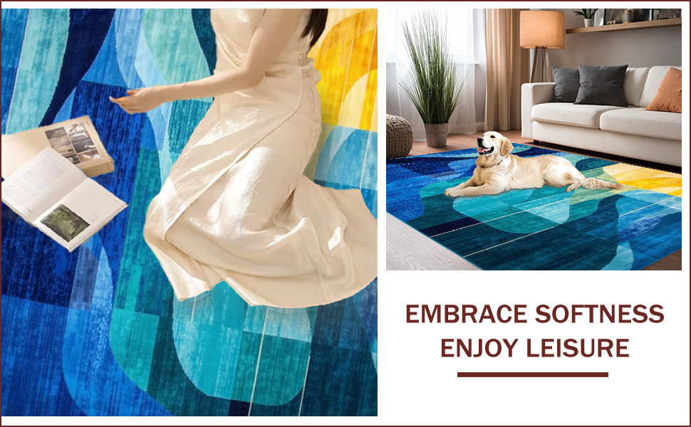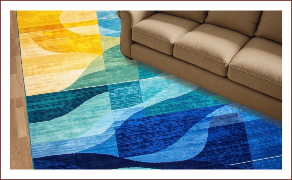 Ultra Soft Area Rug, Non Slip, Stain Resistant, Washable Area Rugs for Living Room, Bedroom, Vibrant Abstract Color Fusion(Blue) Overview: