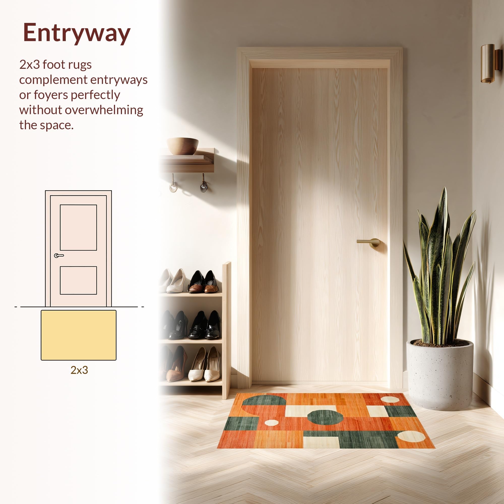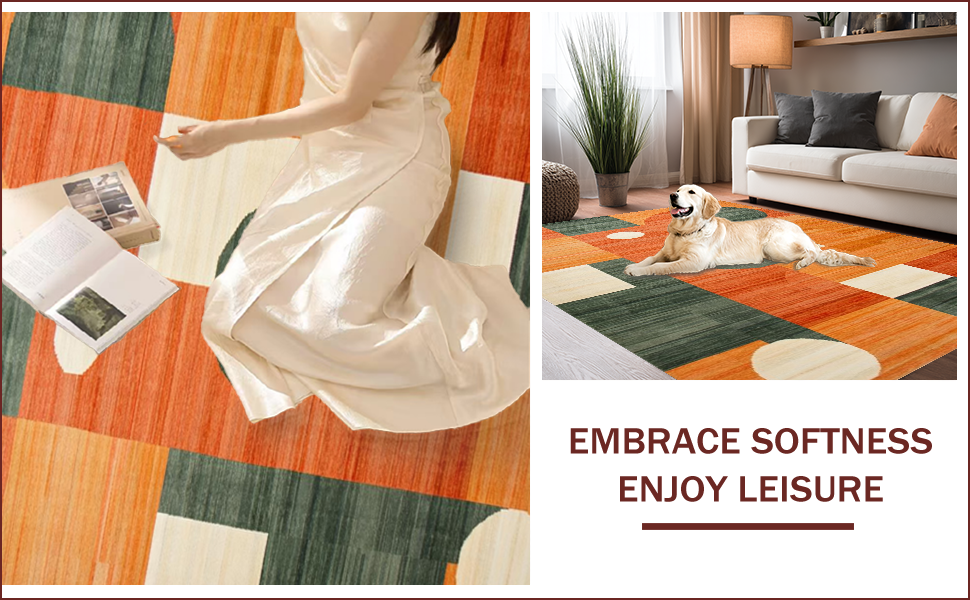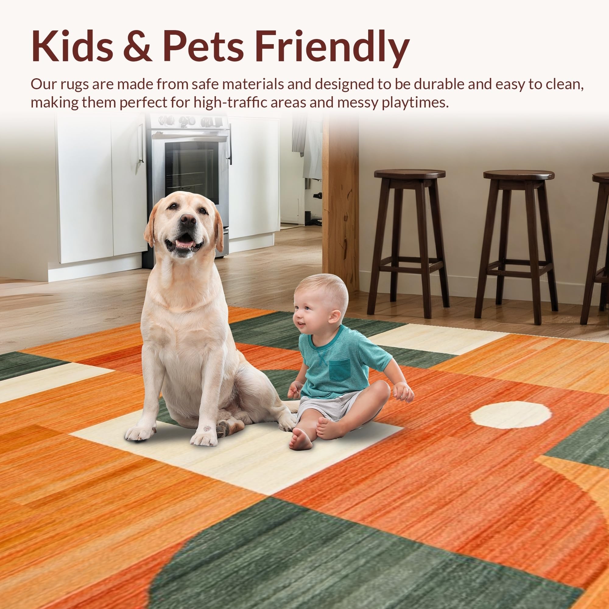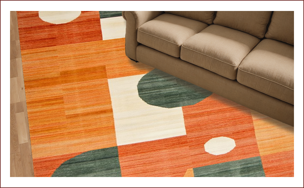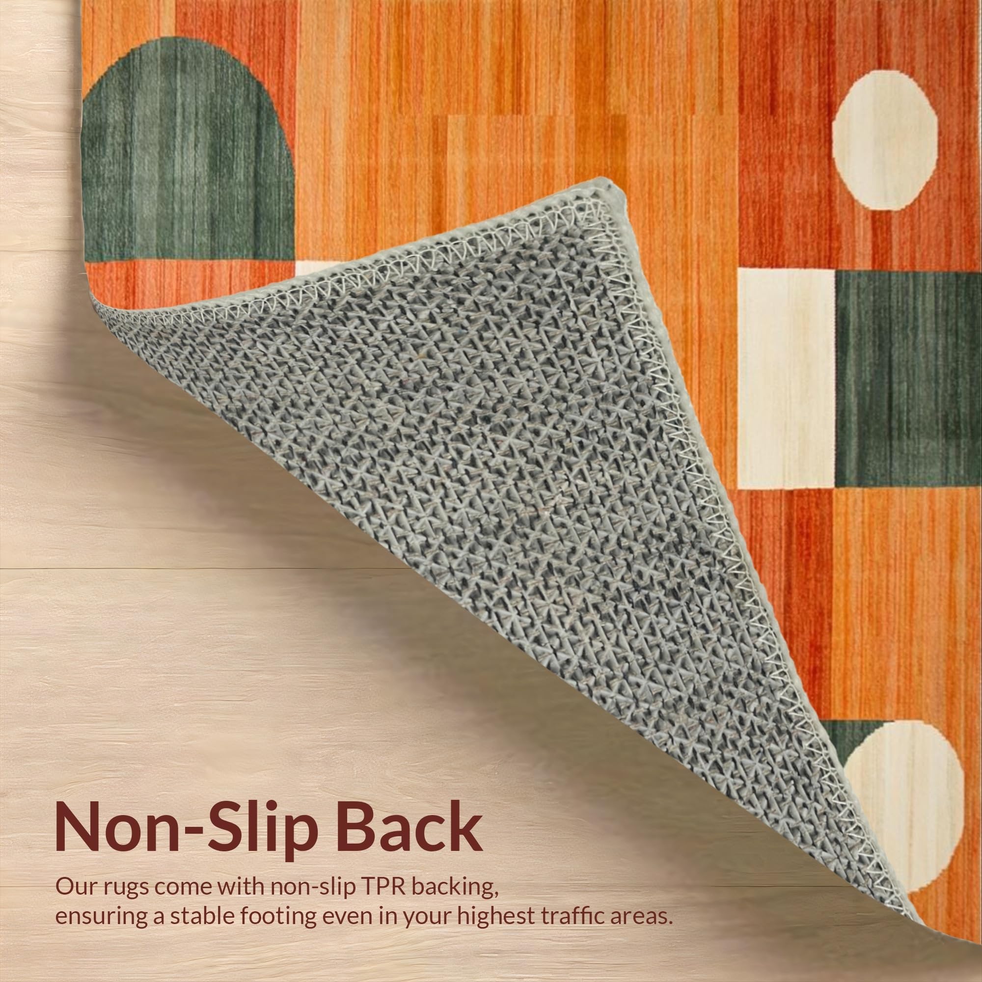 Ultra Soft Area Rug, Non Slip, Stain Resistant, Washable Area Rugs for Living Room, Bedroom, Vibrant Abstract Curvilinear Design(Orange) Overview: