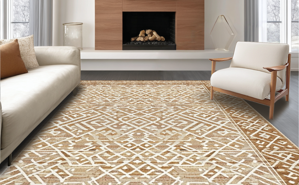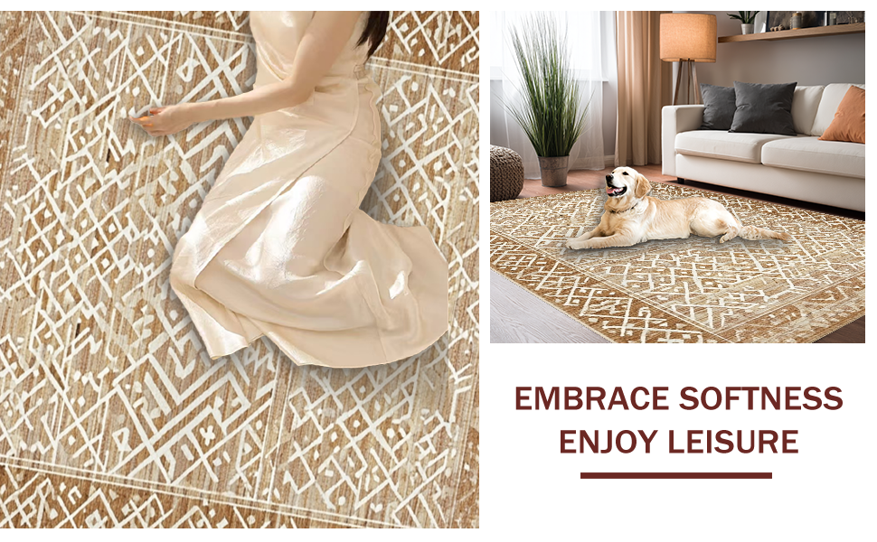 Ultra Soft Area Rug, Non Slip, Stain Resistant, Washable Area Rugs for Living Room, Bedroom, Vibrant Abstract Ethnic Aesthetic(Beige) Overview: