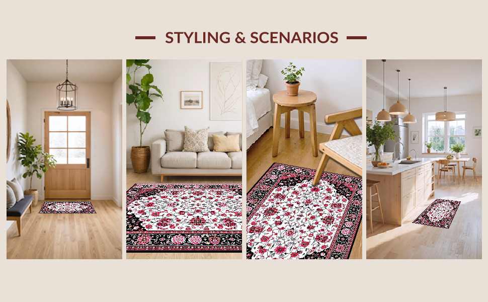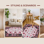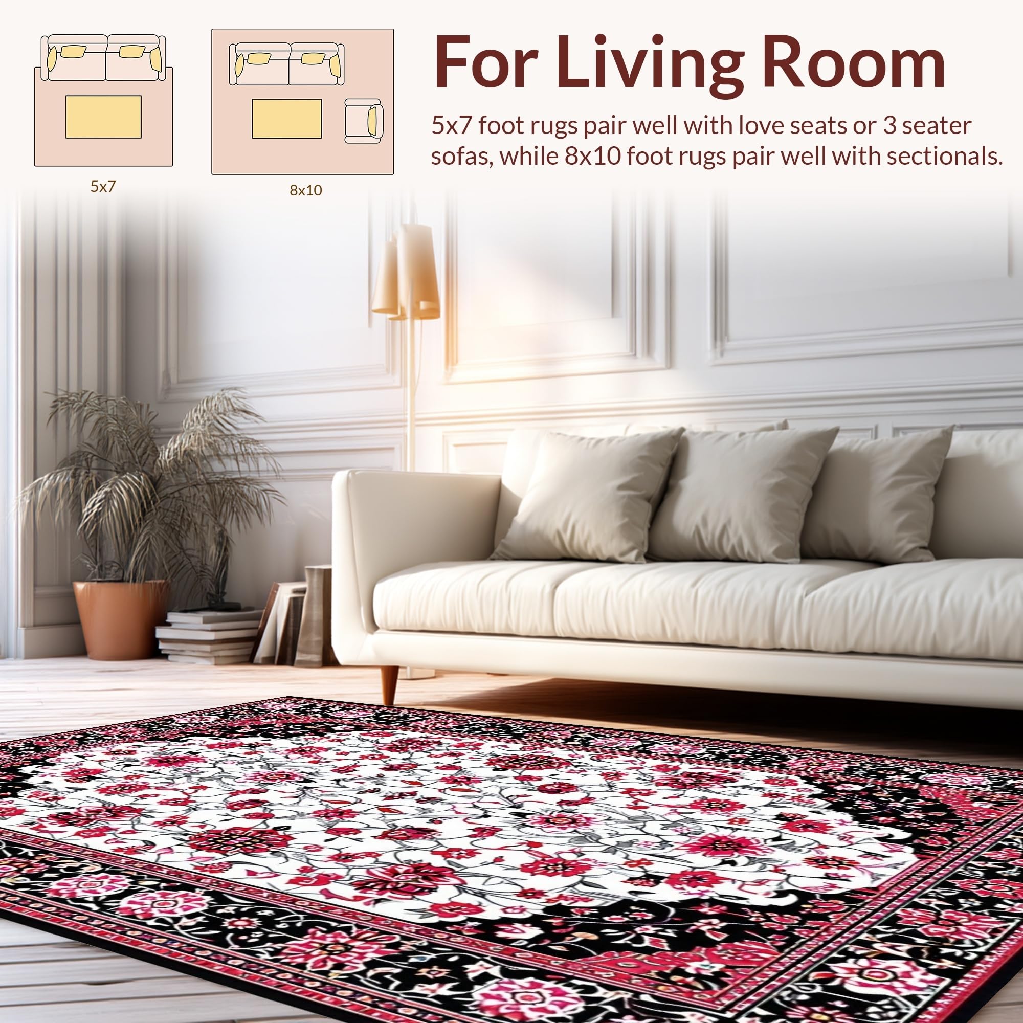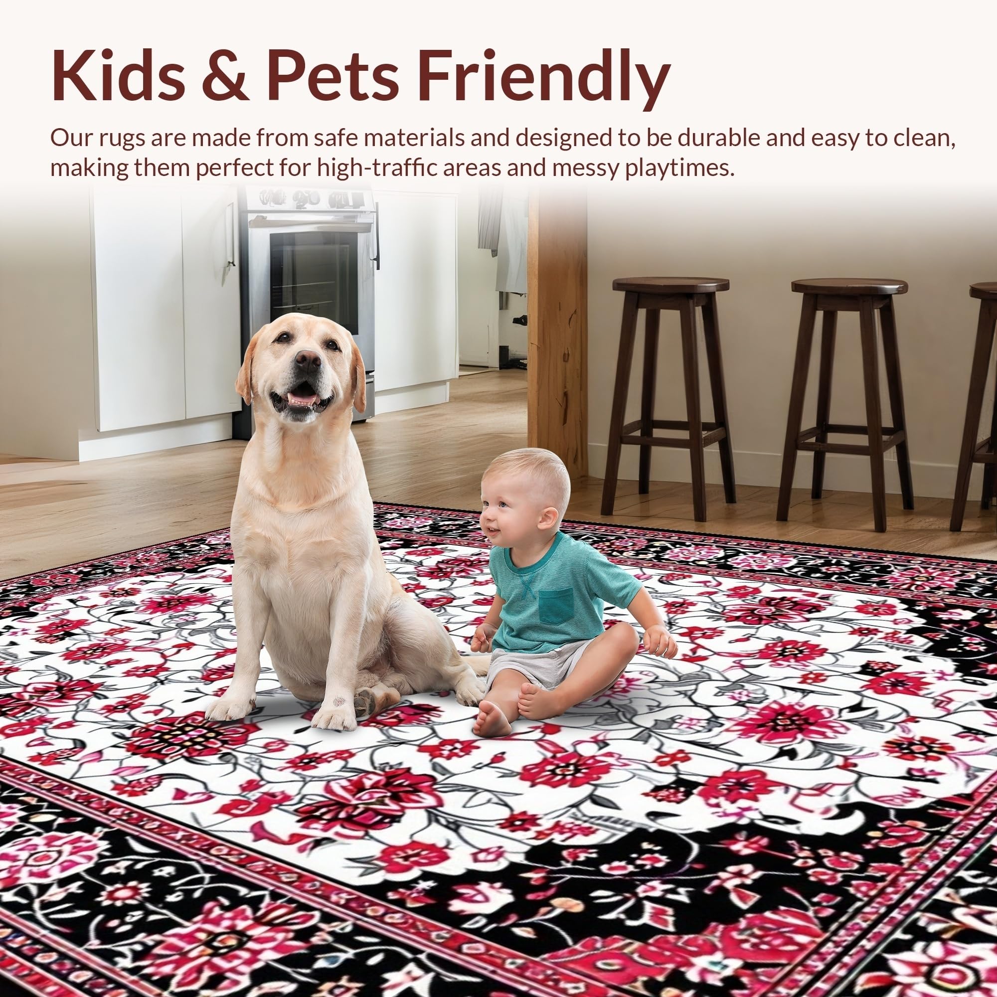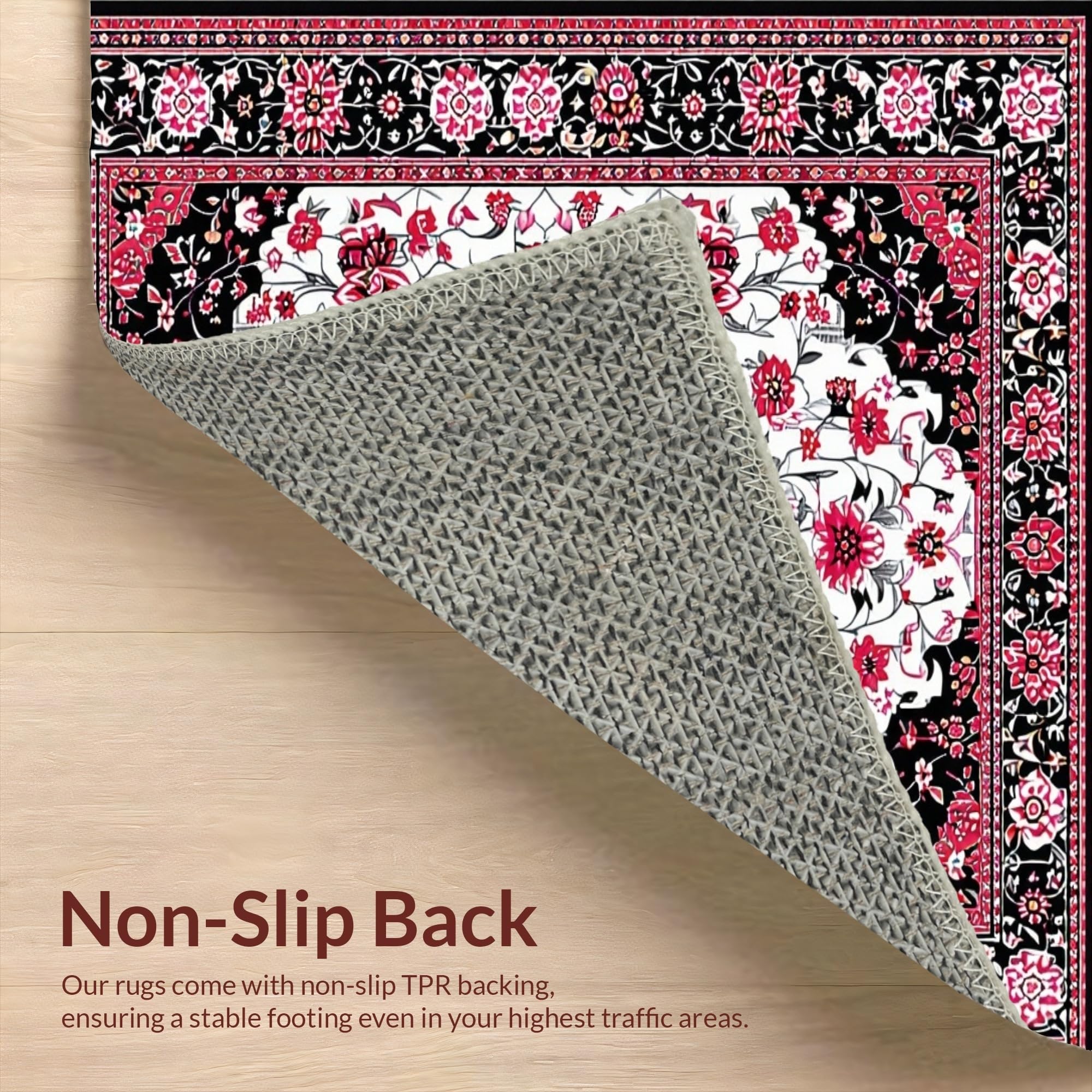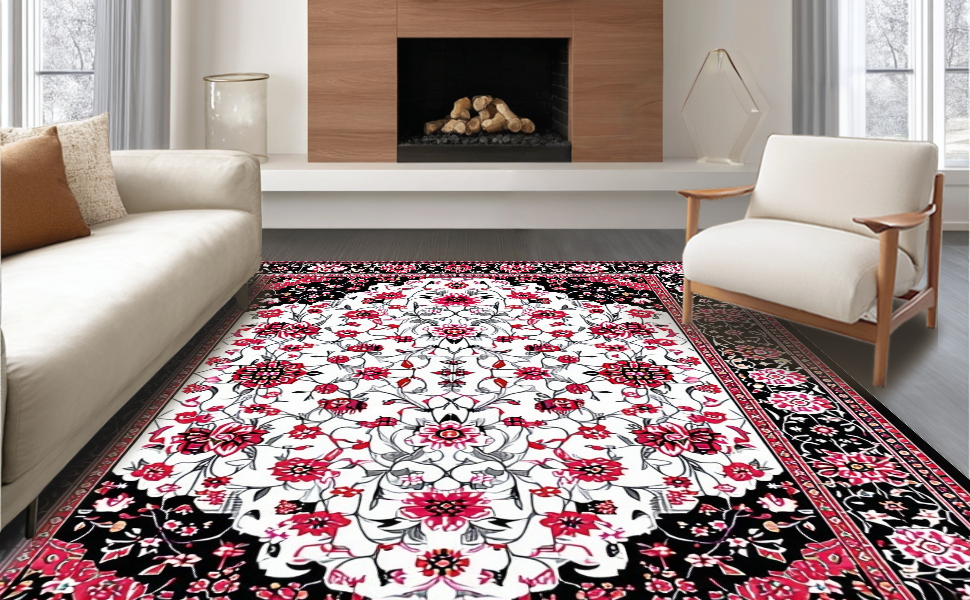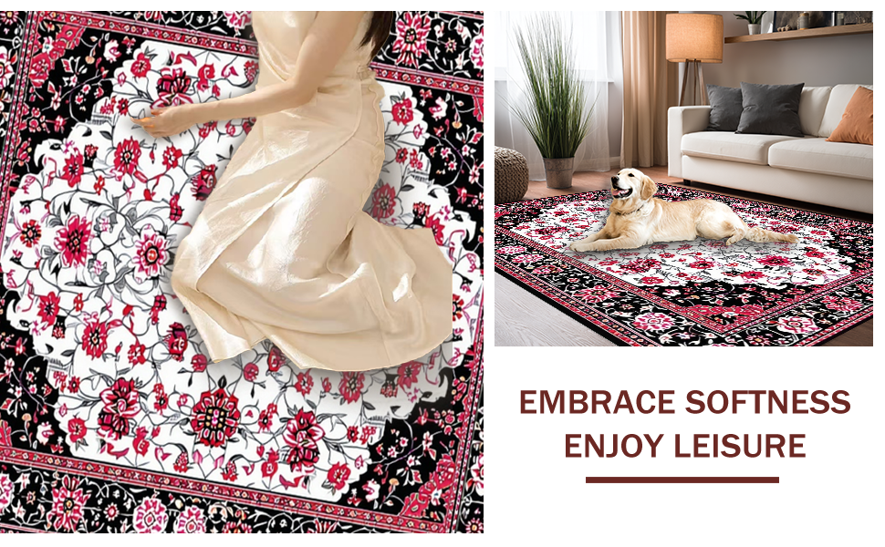 Ultra Soft Area Rug, Non Slip, Stain Resistant, Washable Area Rugs for Living Room, Bedroom, Vibrant Abstract Floral Elements(Black) Overview: