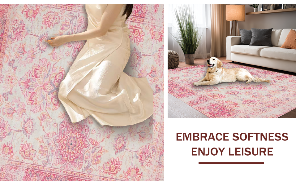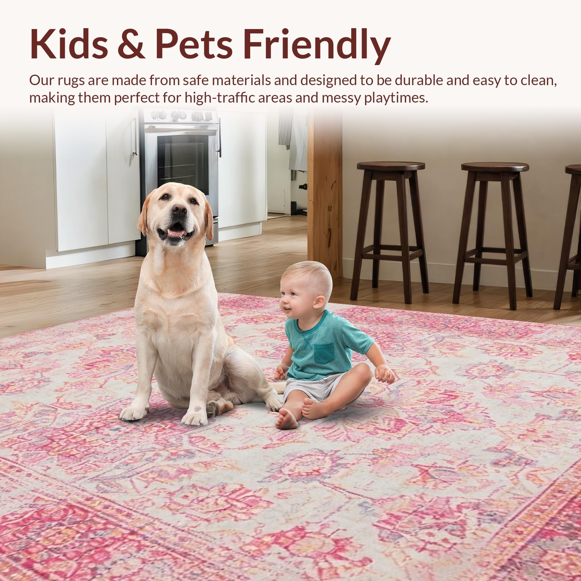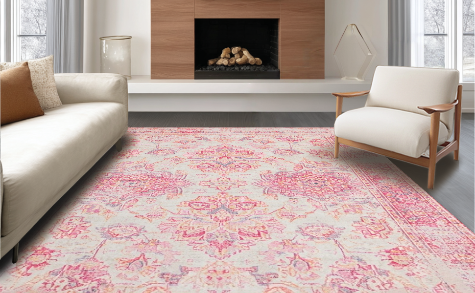 Ultra Soft Area Rug, Non Slip, Stain Resistant, Washable Area Rugs for Living Room, Bedroom, Vibrant Abstract Floral Vision(Pink) Overview: