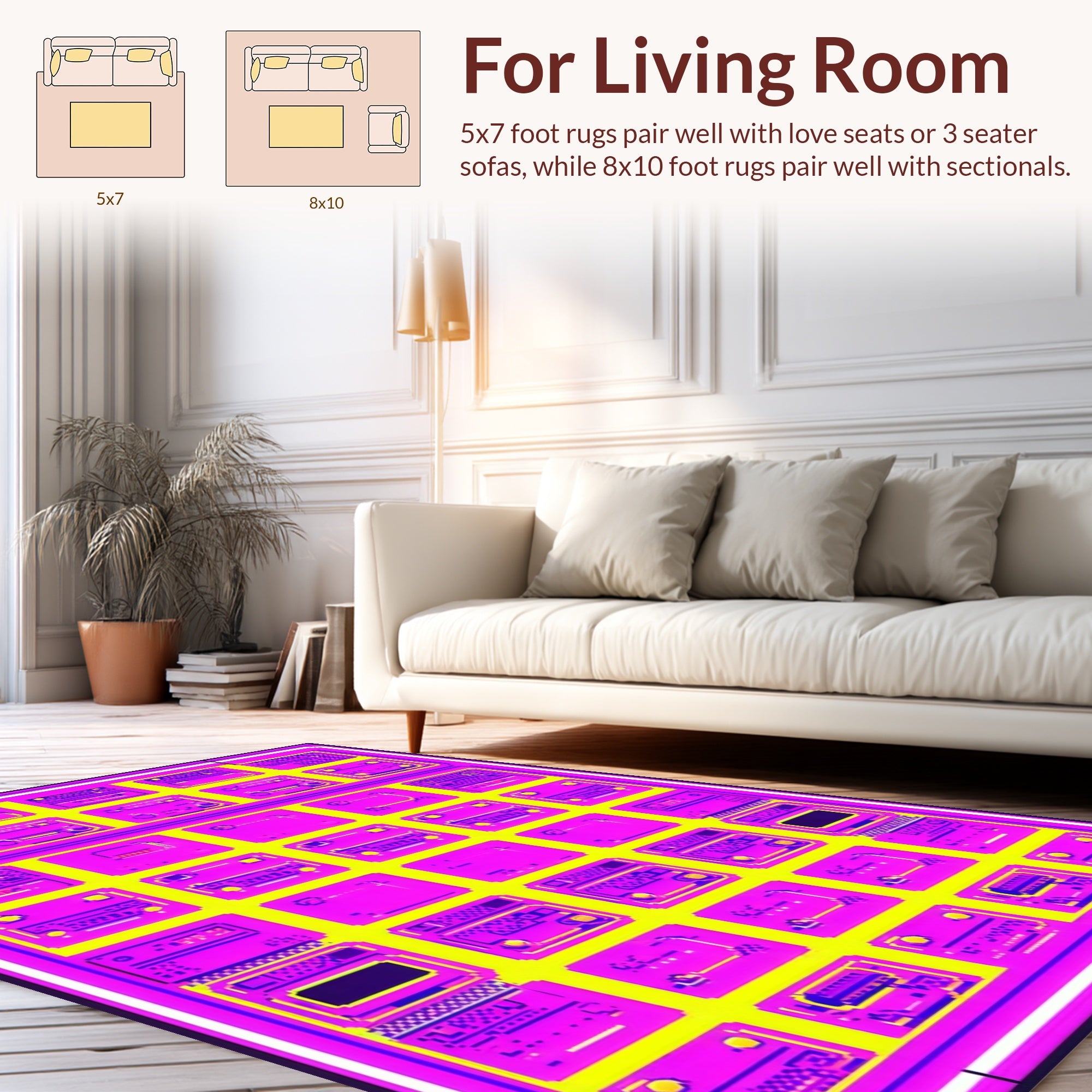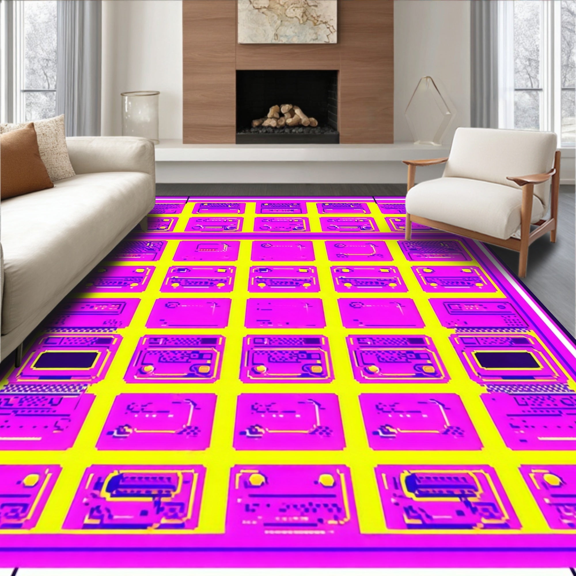 Flatwoven High Traffic Area Rug, Vibrant Abstract Playful Graphics, Non Slip, Stain Resistant, Washable Area Rugs for Living Room, Bedroom (Pink) Overview: