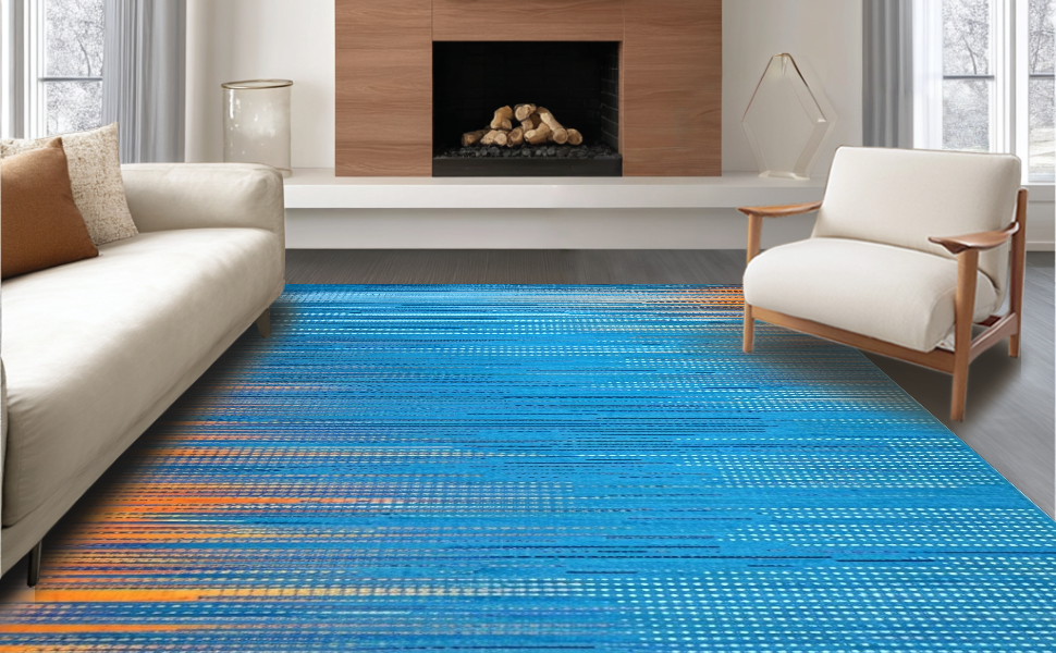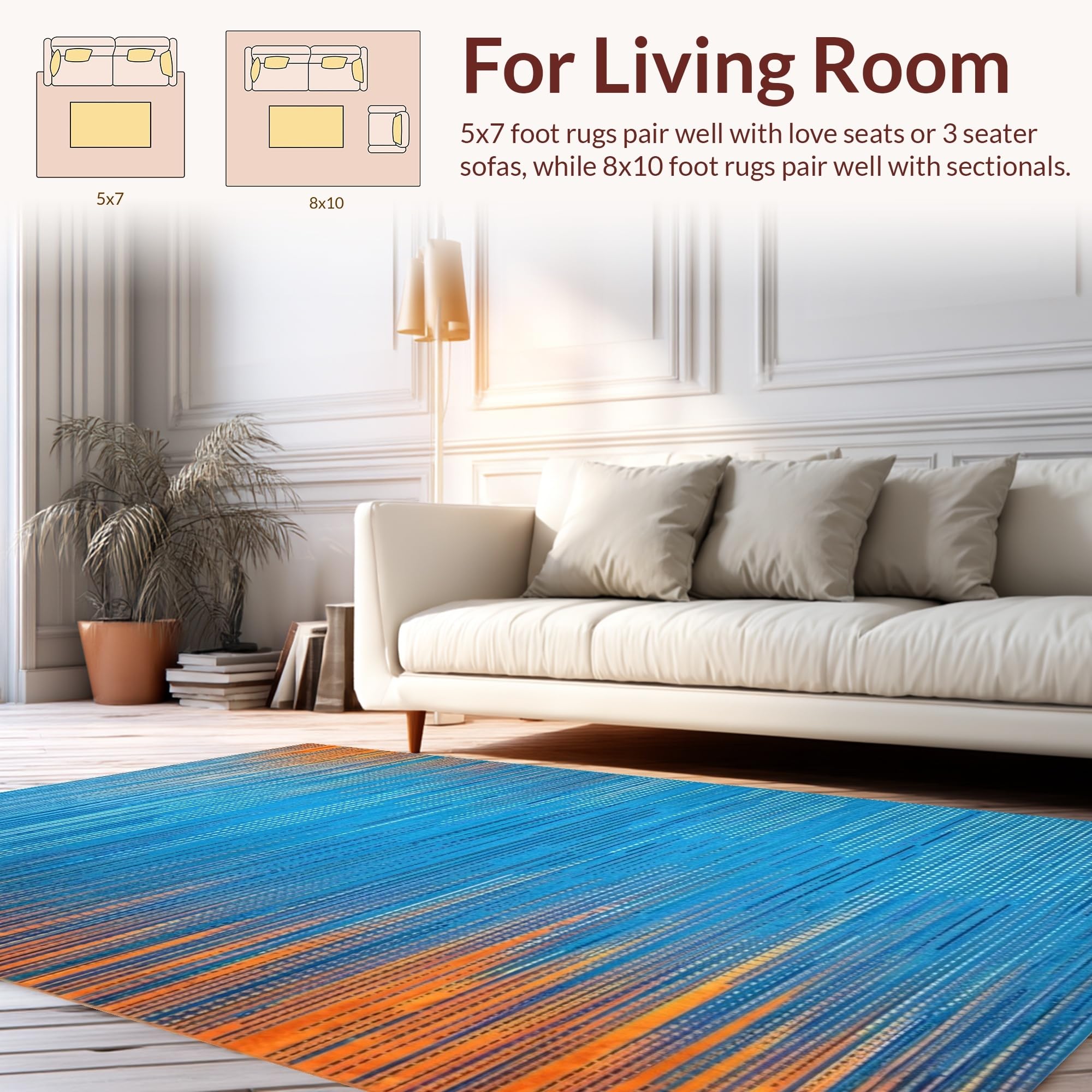 Ultra Soft Area Rug, Non Slip, Stain Resistant, Washable Area Rugs for Living Room, Bedroom, Vibrant Abstract Wave Aesthetics(Blue) Overview:
