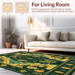 Ultra Soft Area Rug, Non Slip, Stain Resistant, Washable Area Rugs for Living Room, Bedroom, Vibrant Area Featuring Geometric Animal Motifs and Floral Designs(Green) Overview: