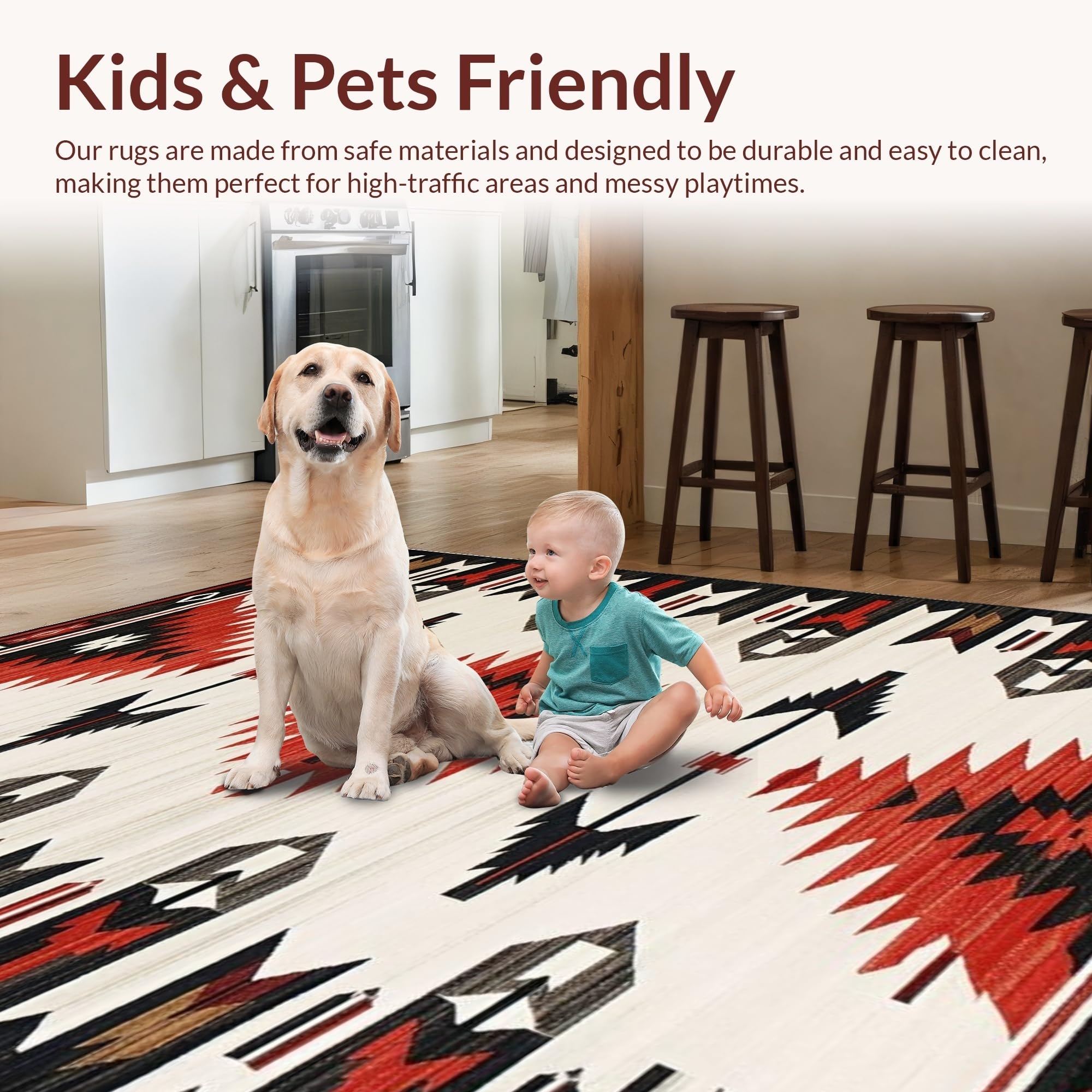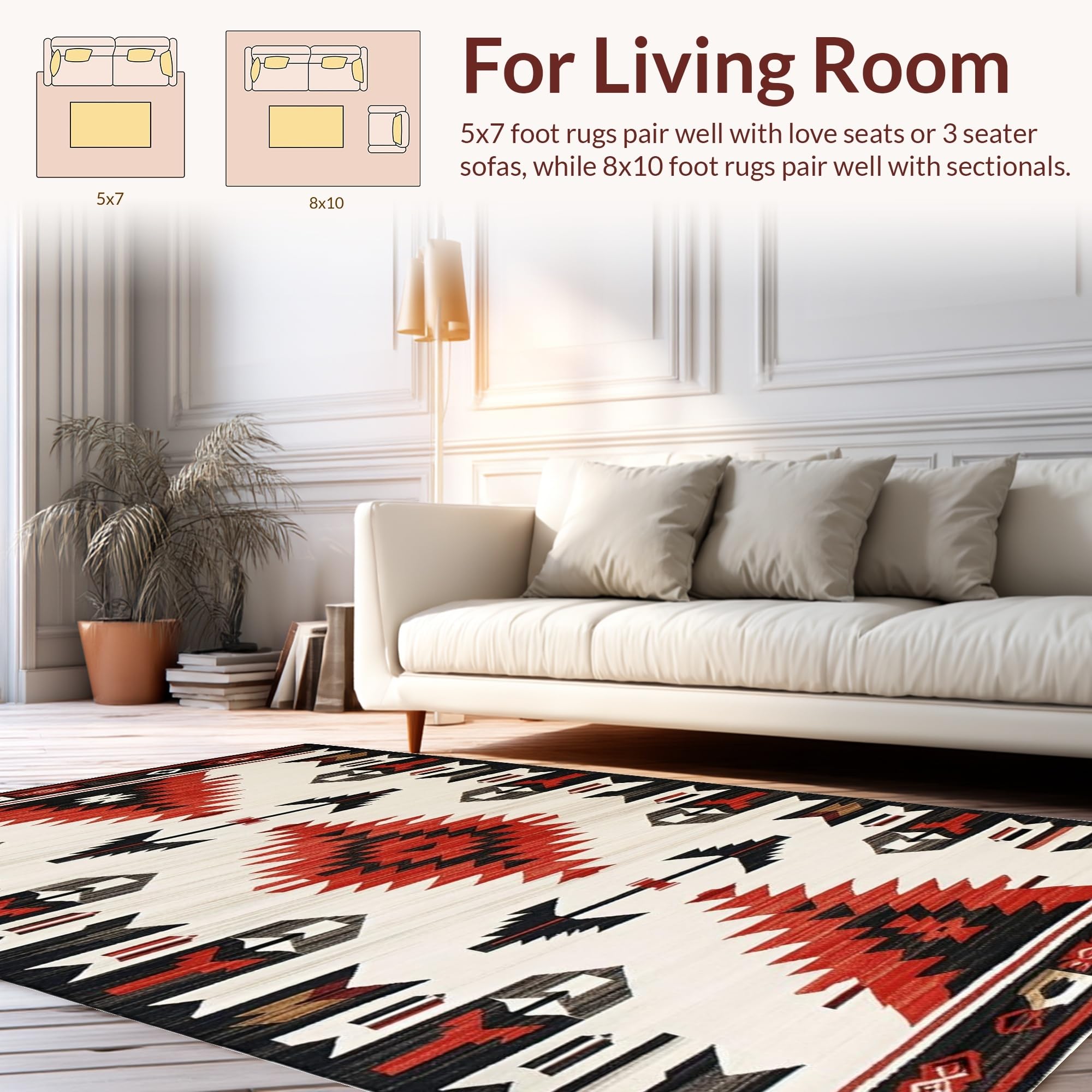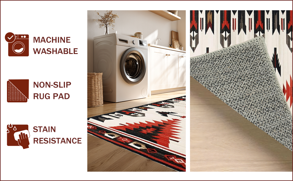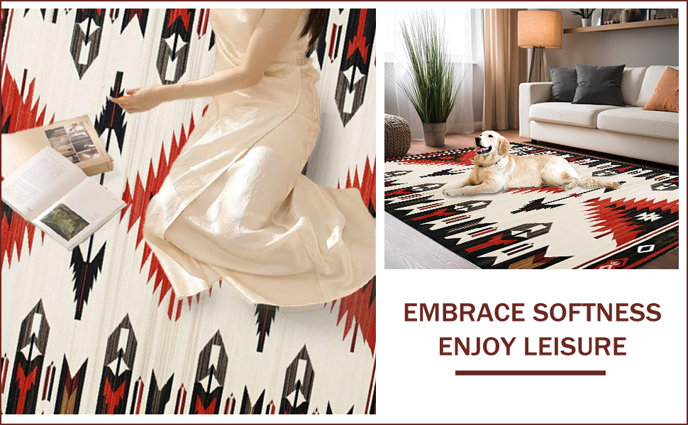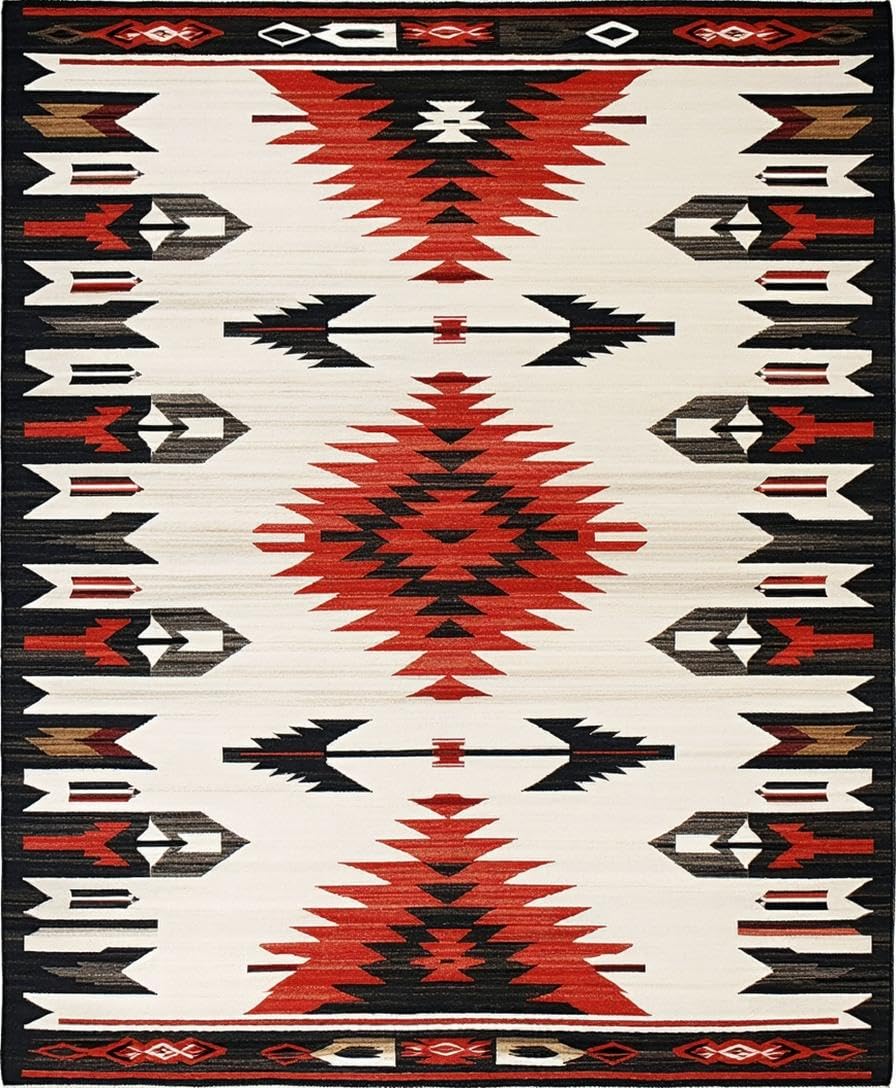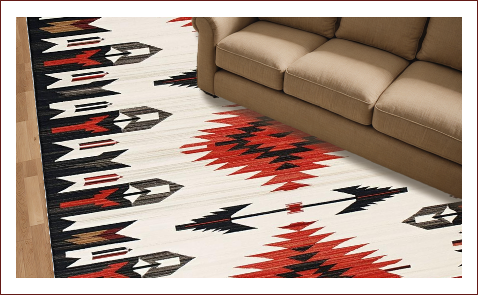 Ultra Soft Area Rug, Non Slip, Stain Resistant, Washable Area Rugs for Living Room, Bedroom, Vibrant Arrow Geometric Style(Red) Overview: