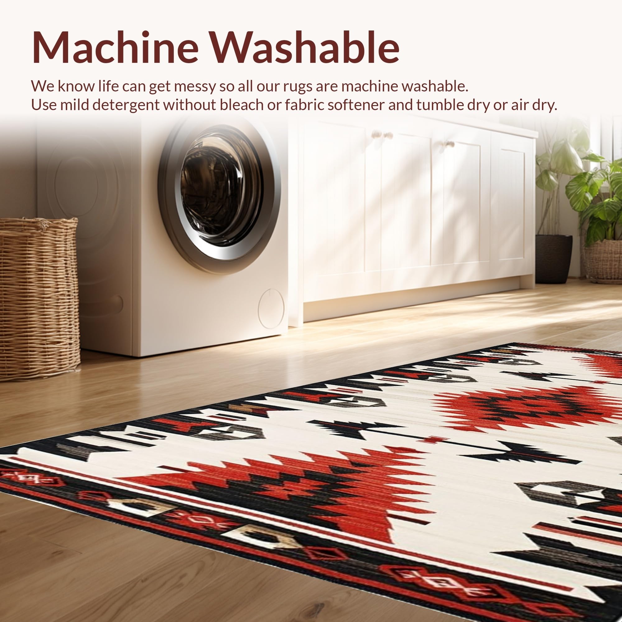 - Machine Washable: Our rugs can be easily thrown in the wash machine.