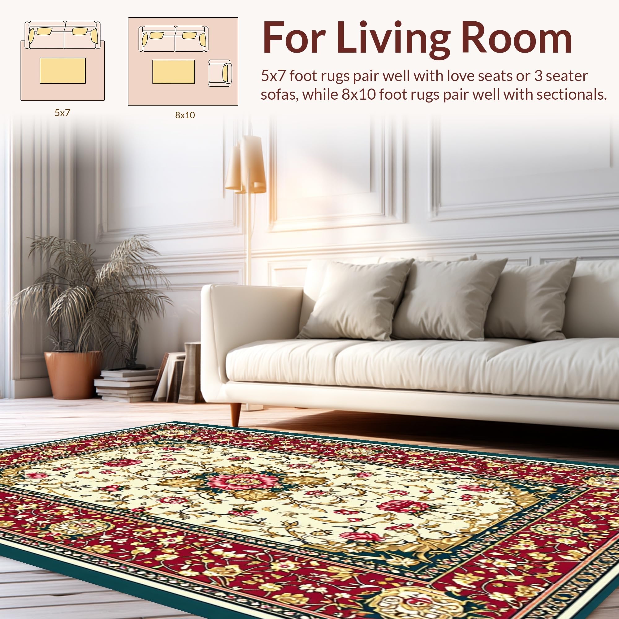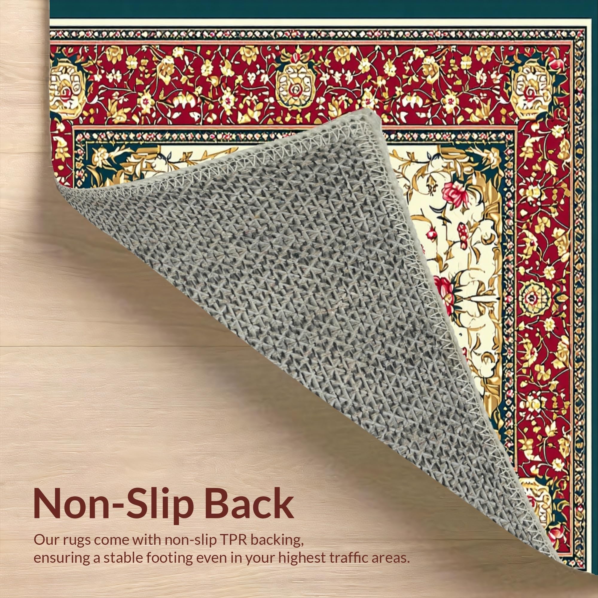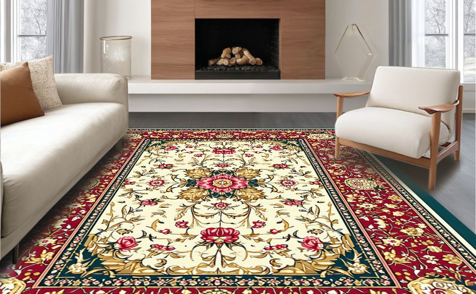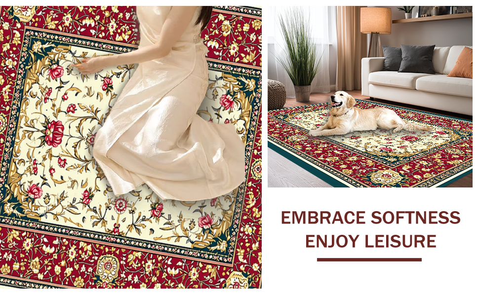 Ultra Soft Area Rug, Non Slip, Stain Resistant, Washable Area Rugs for Living Room, Bedroom, Vibrant Blue Pink Ethnic Style(Red) Overview: