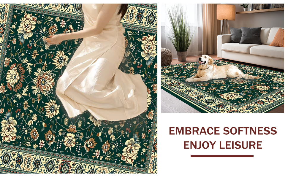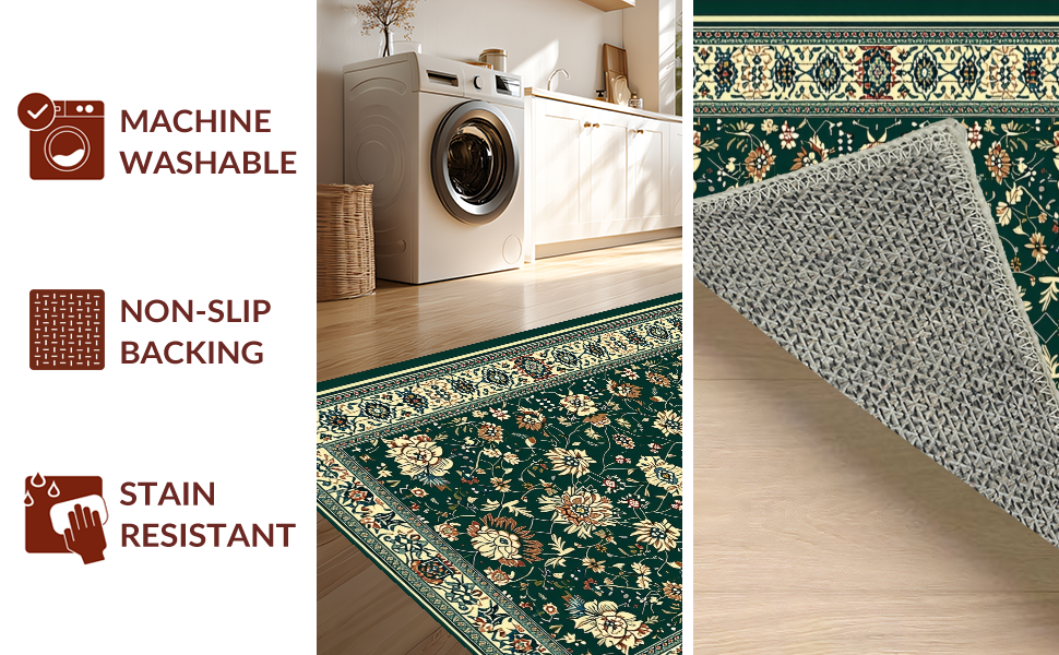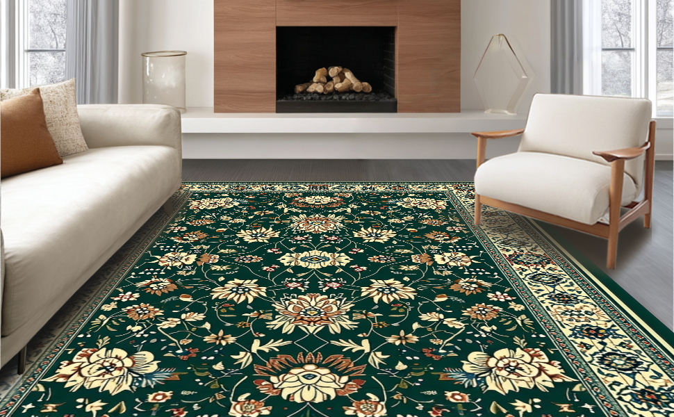 Ultra Soft Area Rug, Non Slip, Stain Resistant, Washable Area Rugs for Living Room, Bedroom, Vibrant Boho Inspired Design(Green) Overview: