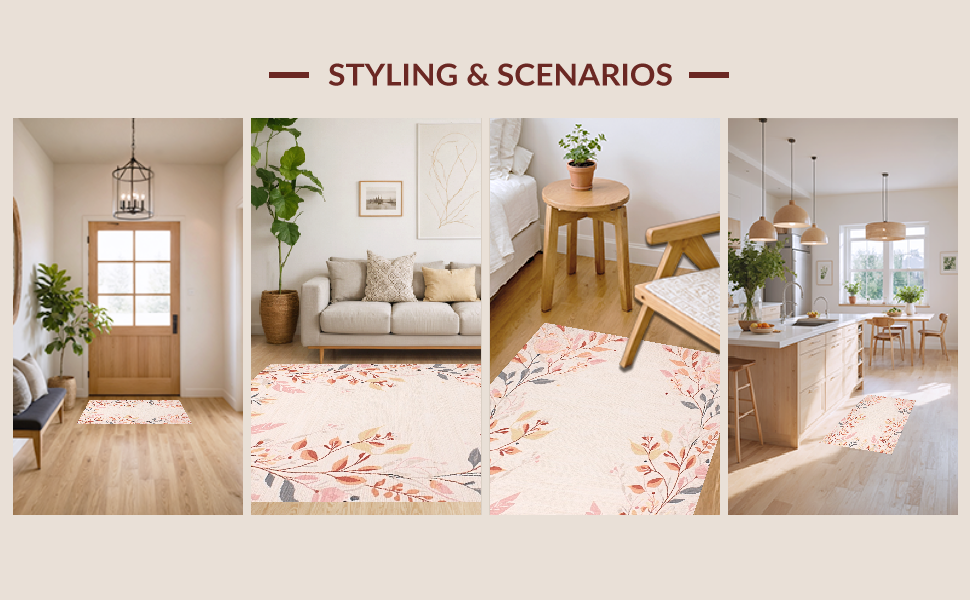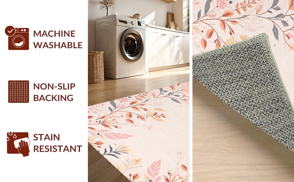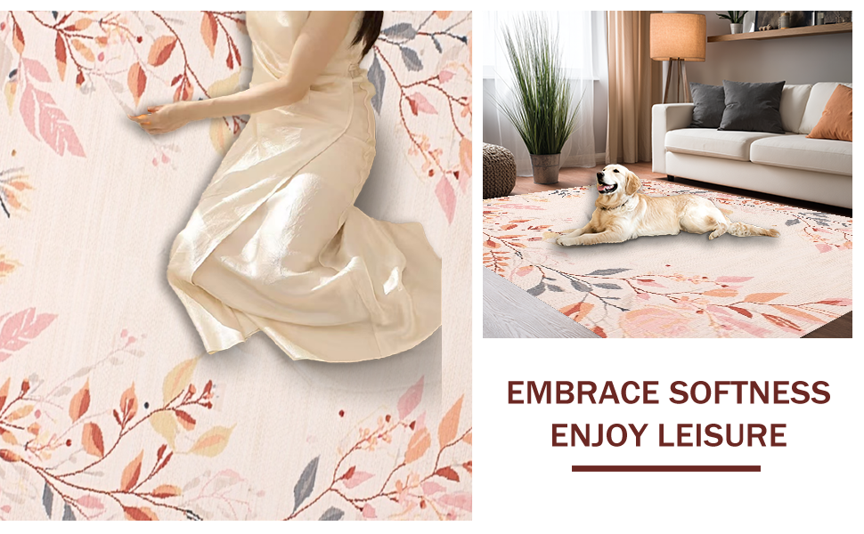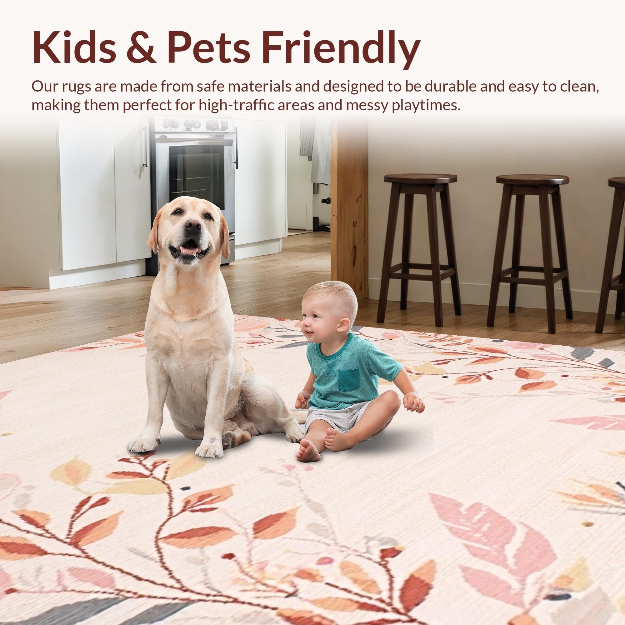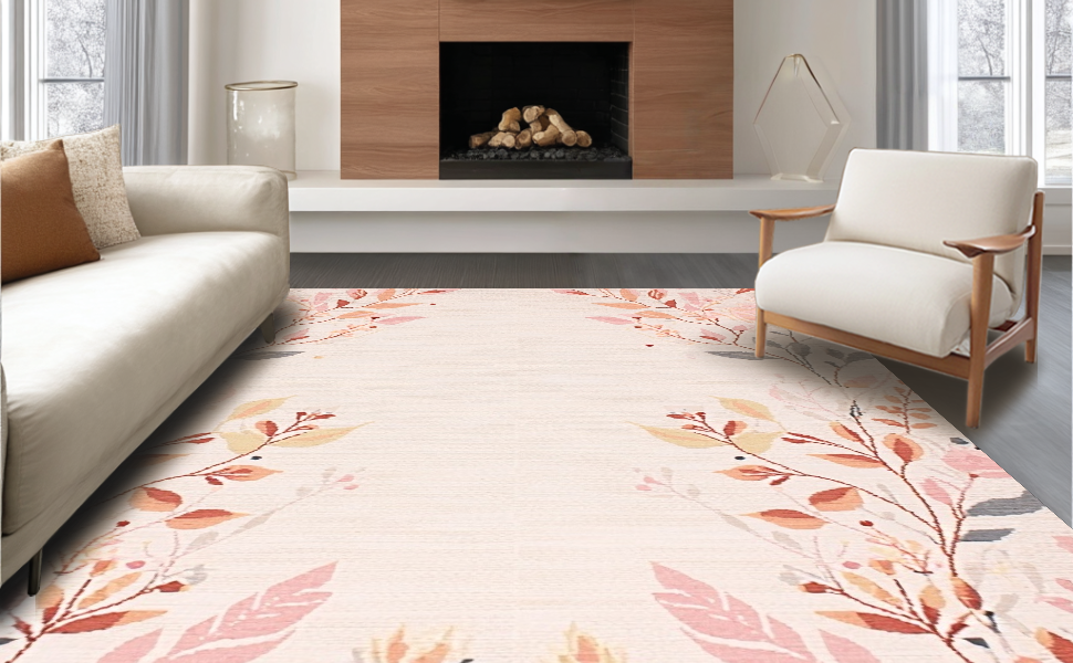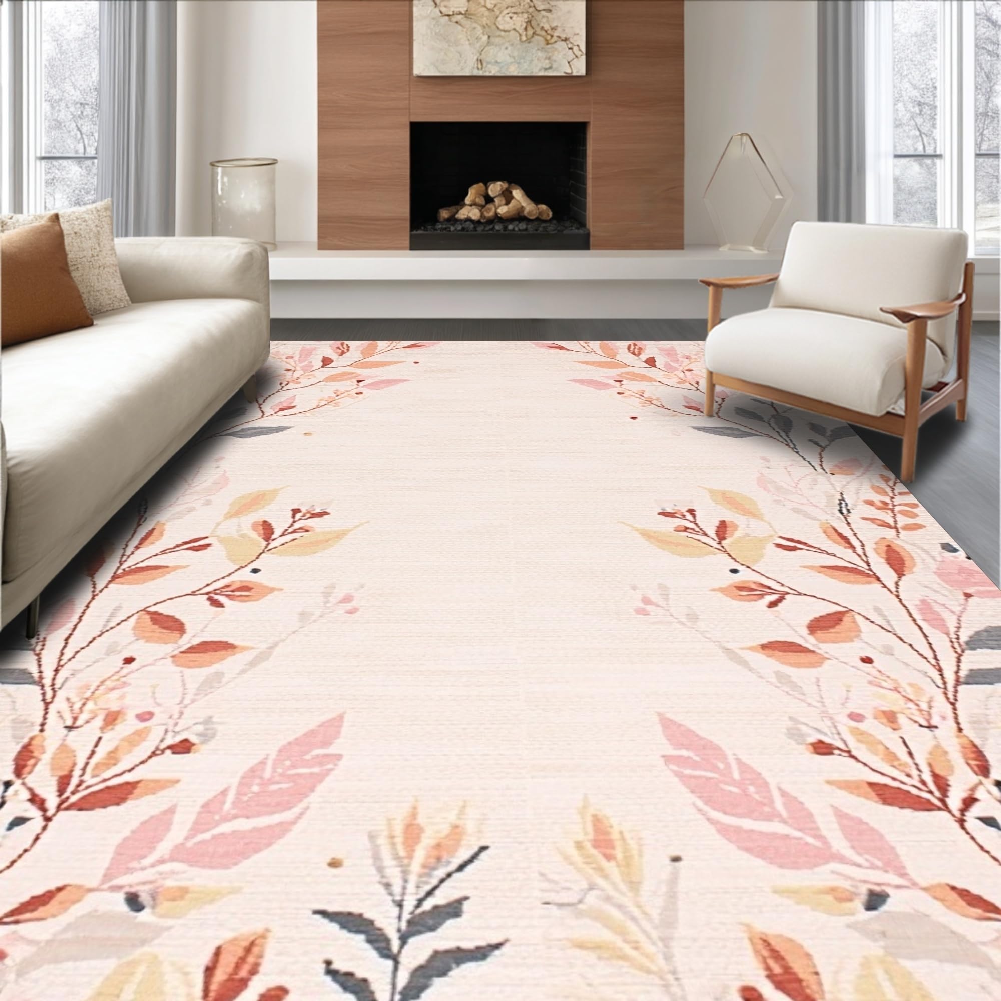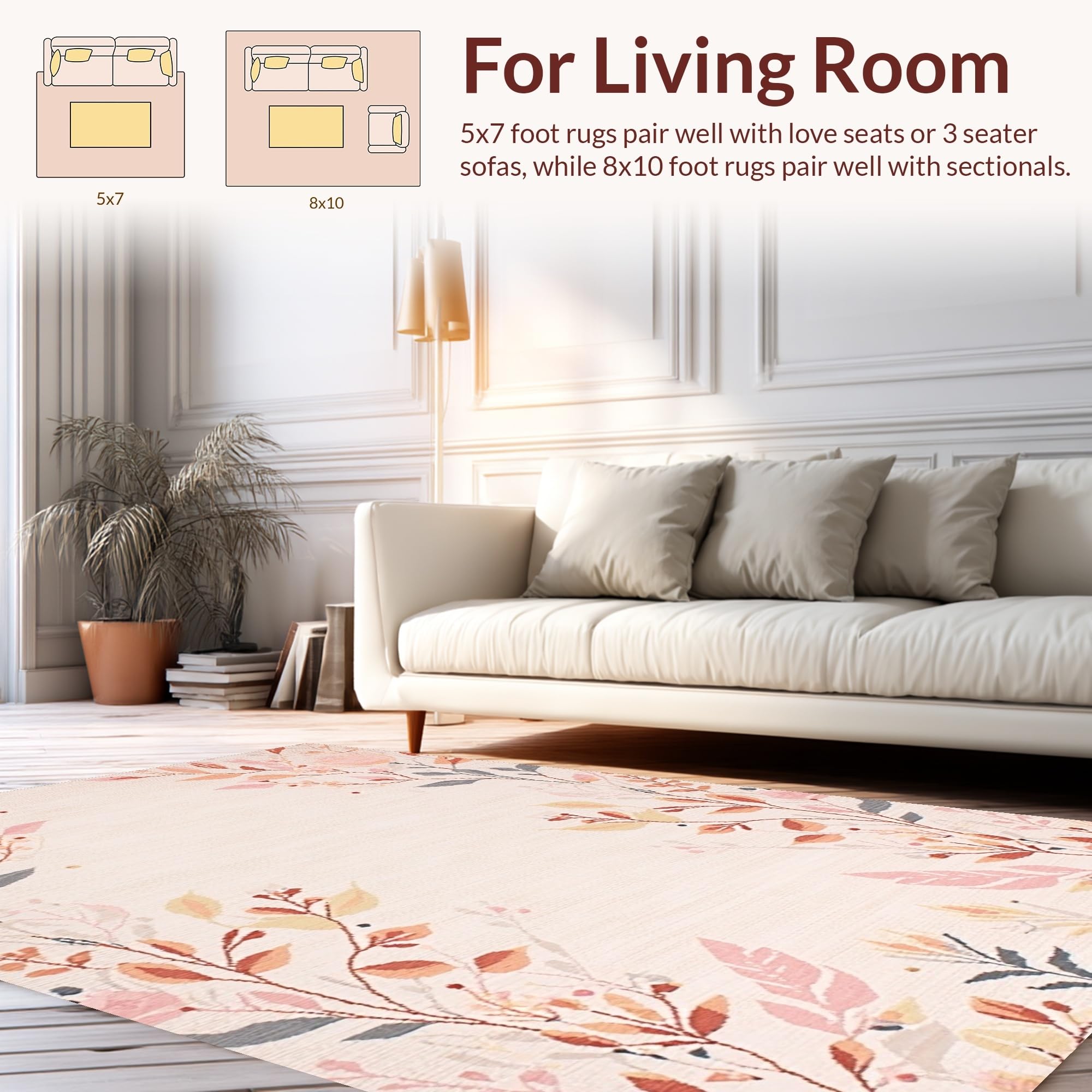 Ultra Soft Area Rug, Non Slip, Stain Resistant, Washable Area Rugs for Living Room, Bedroom, Vibrant Boho Leafy Design(Beige) Overview: