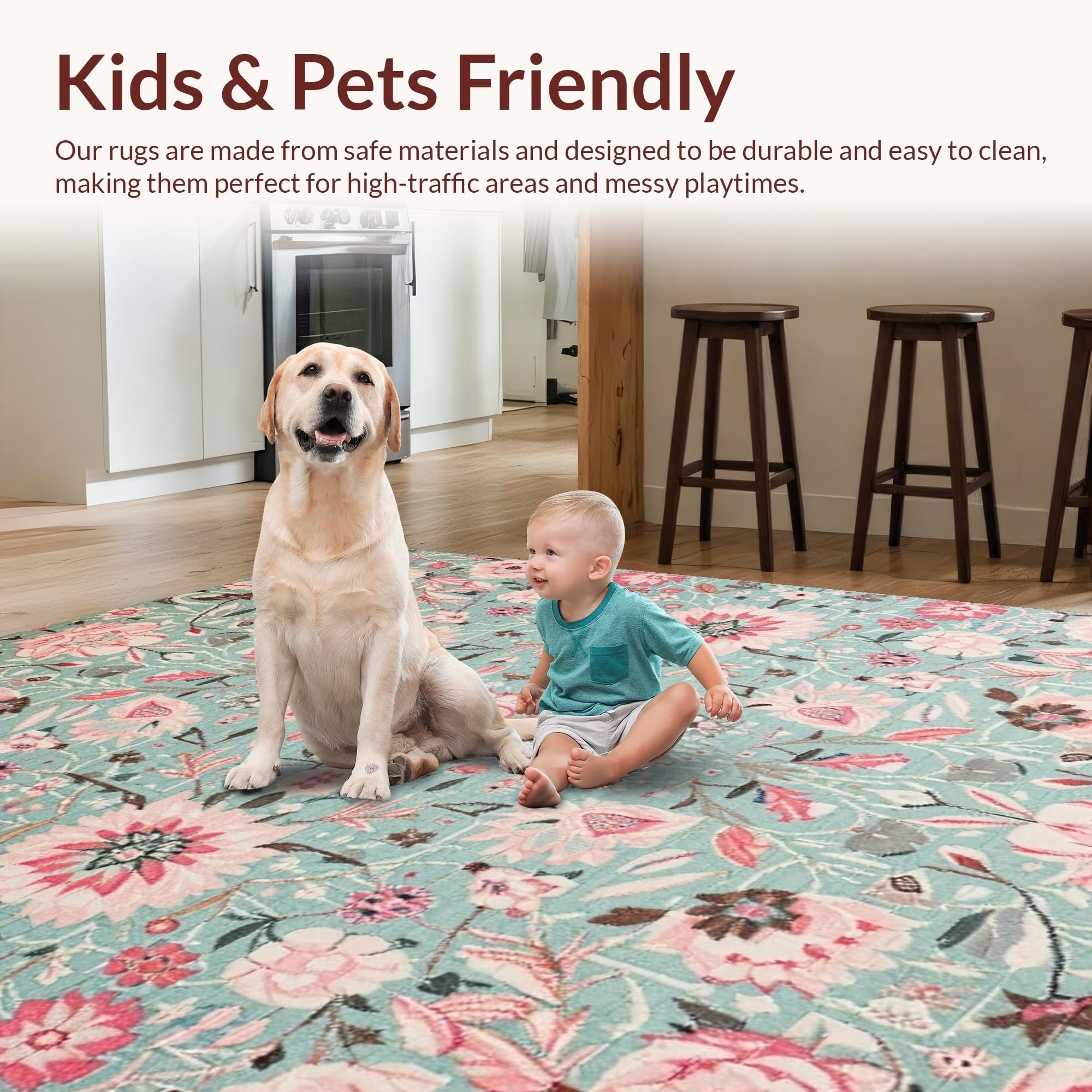 Ultra Soft Area Rug, Non Slip, Stain Resistant, Washable Area Rugs for Living Room, Bedroom, Vibrant Boho Medallion Harmony(Blue) Overview: