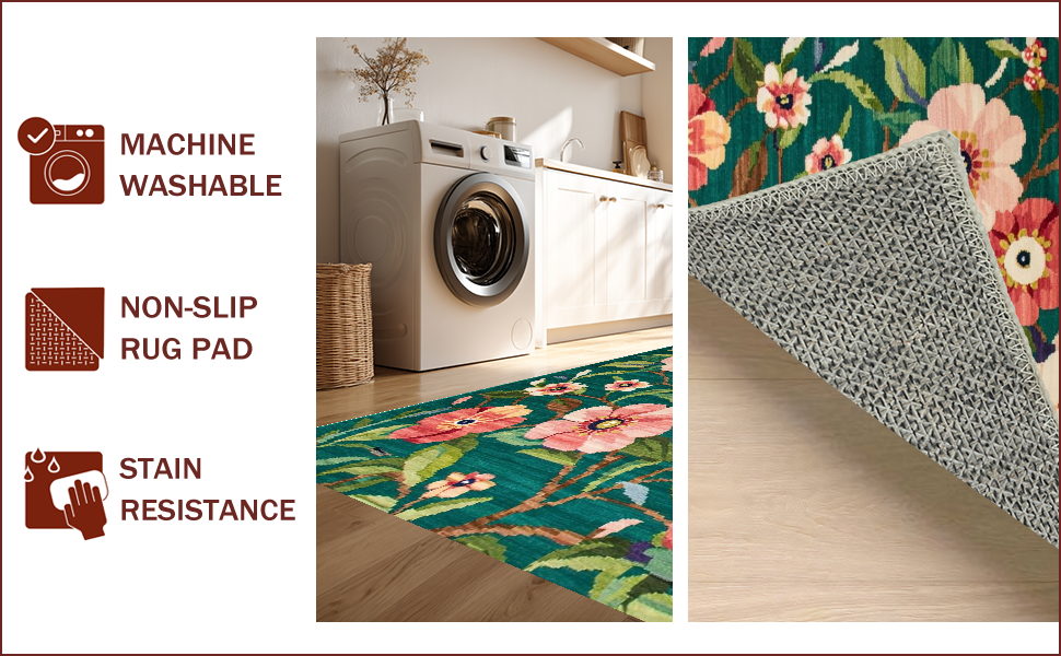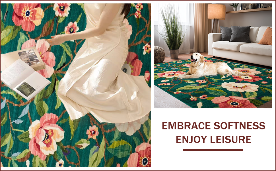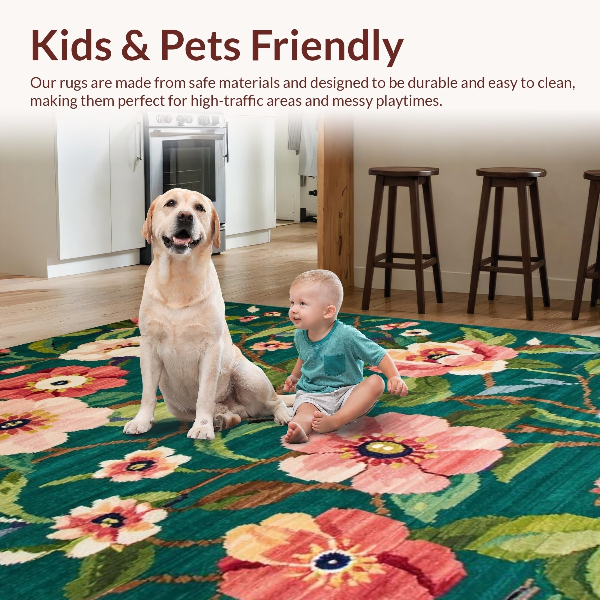 Ultra Soft Area Rug, Non Slip, Stain Resistant, Washable Area Rugs for Living Room, Bedroom, Vibrant Botanical Harmony Design(Green) Overview: