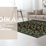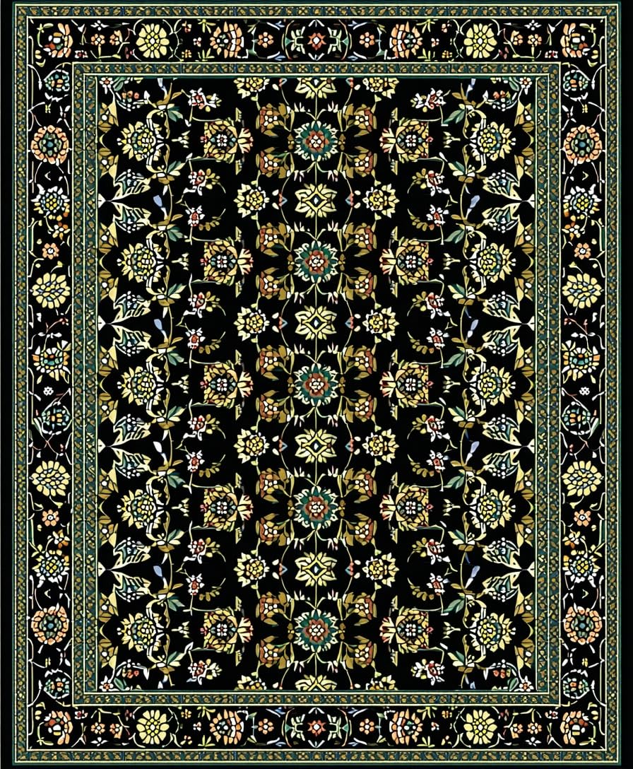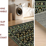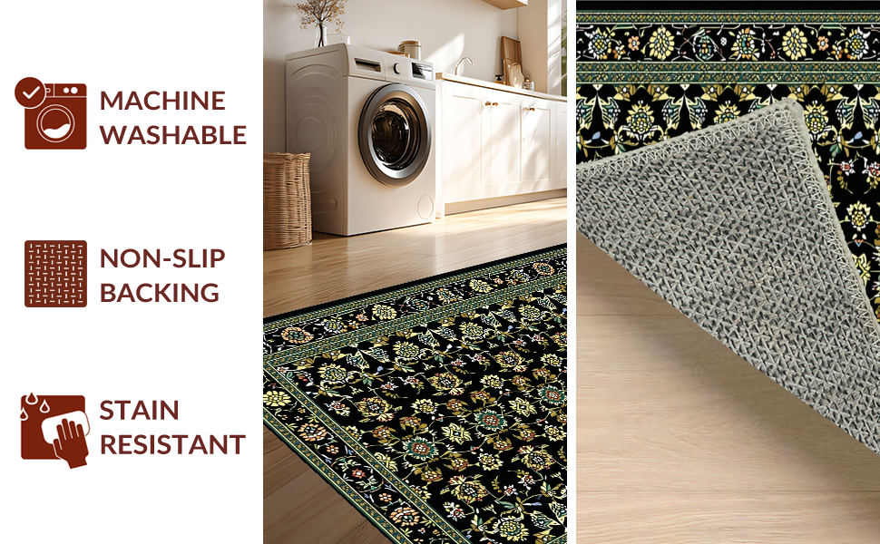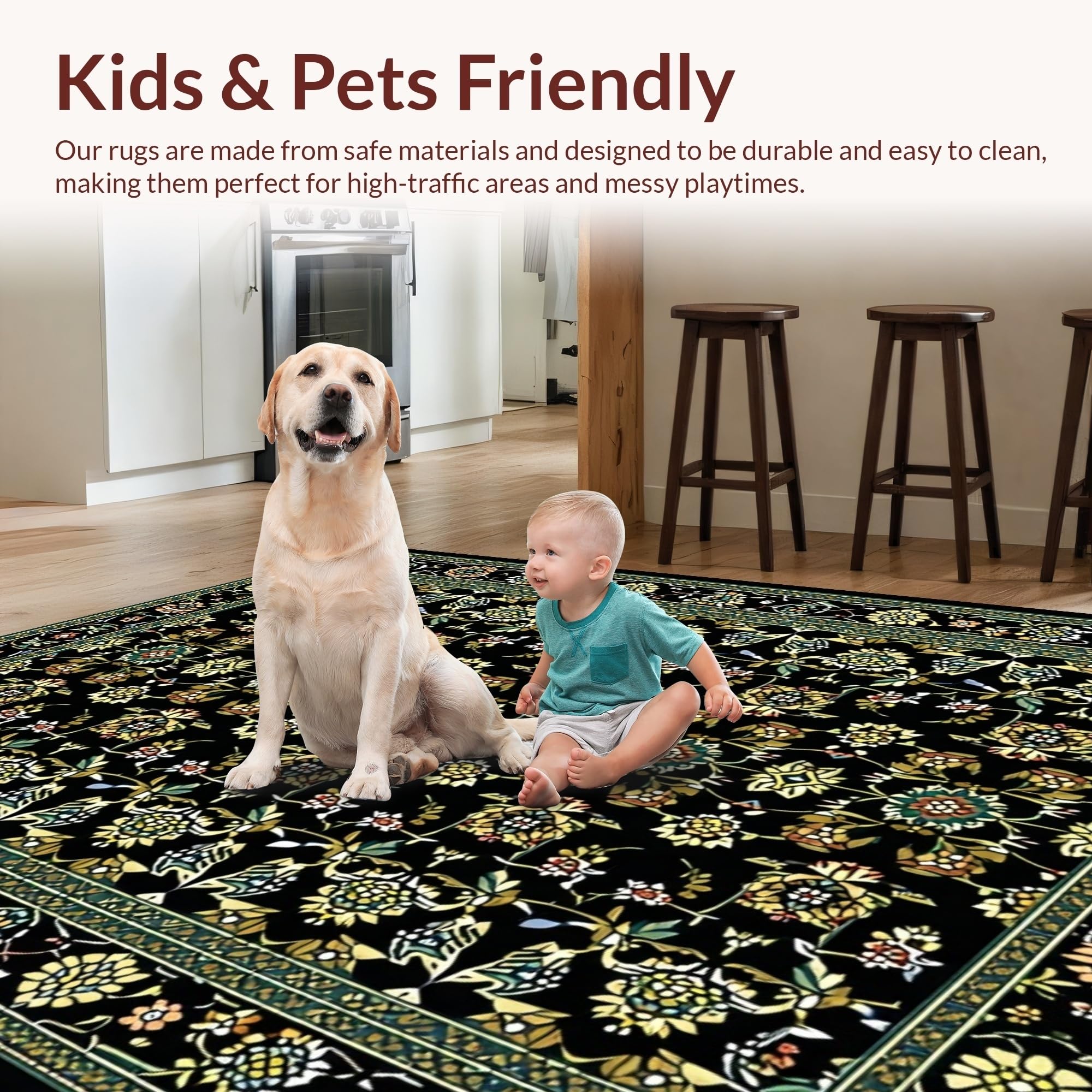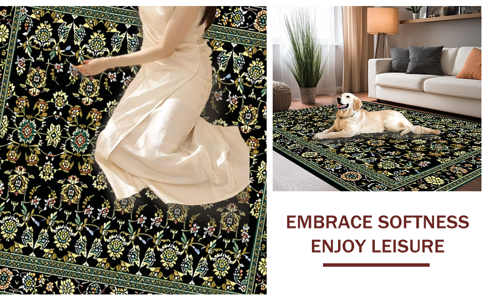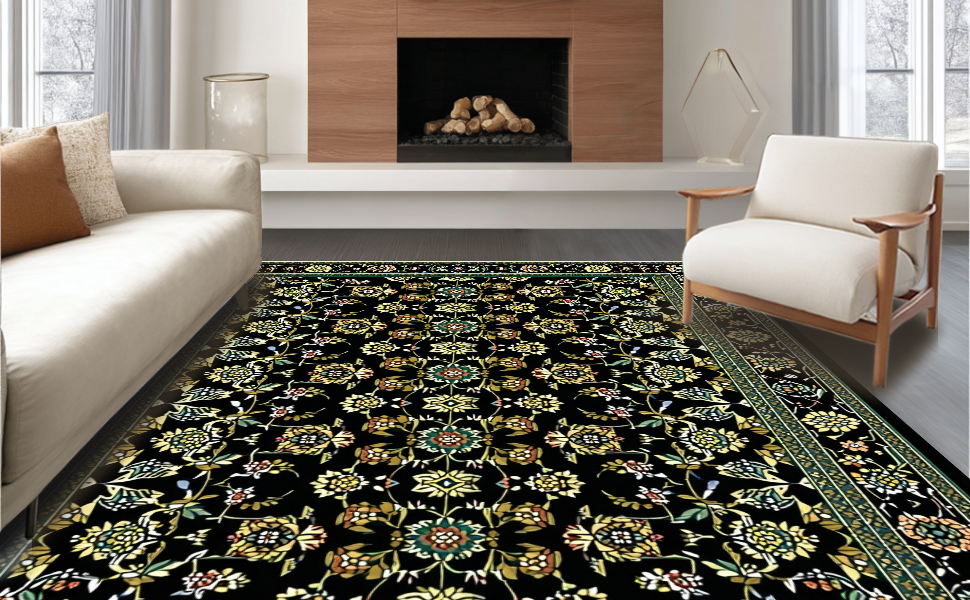 Ultra Soft Area Rug, Non Slip, Stain Resistant, Washable Area Rugs for Living Room, Bedroom, Vibrant Botanical Ogee Style(Black) Overview: