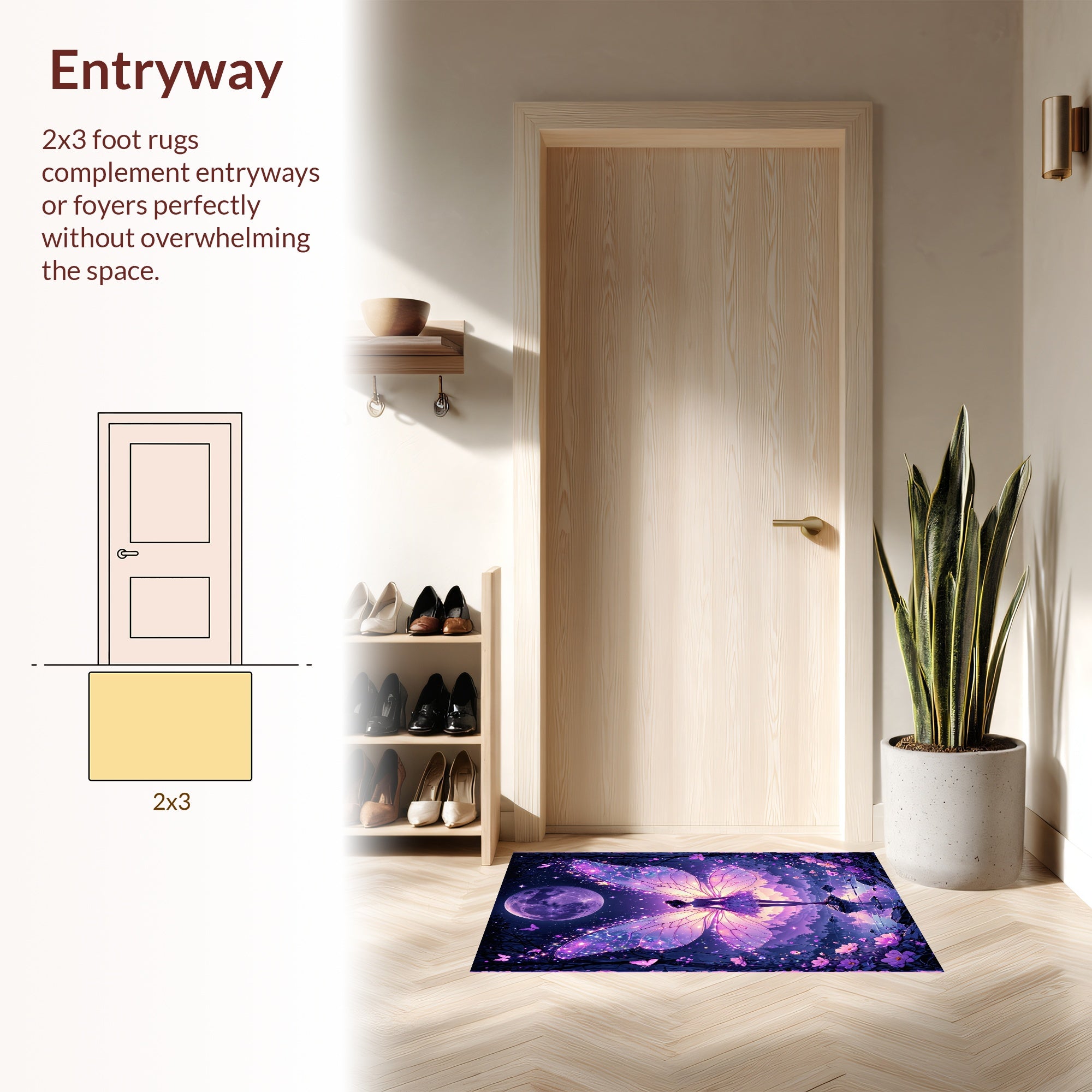 Flatwoven High Traffic Area Rug, Vibrant Celestial Motif, Non Slip, Stain Resistant, Washable Area Rugs for Living Room, Bedroom (Purple) Overview: