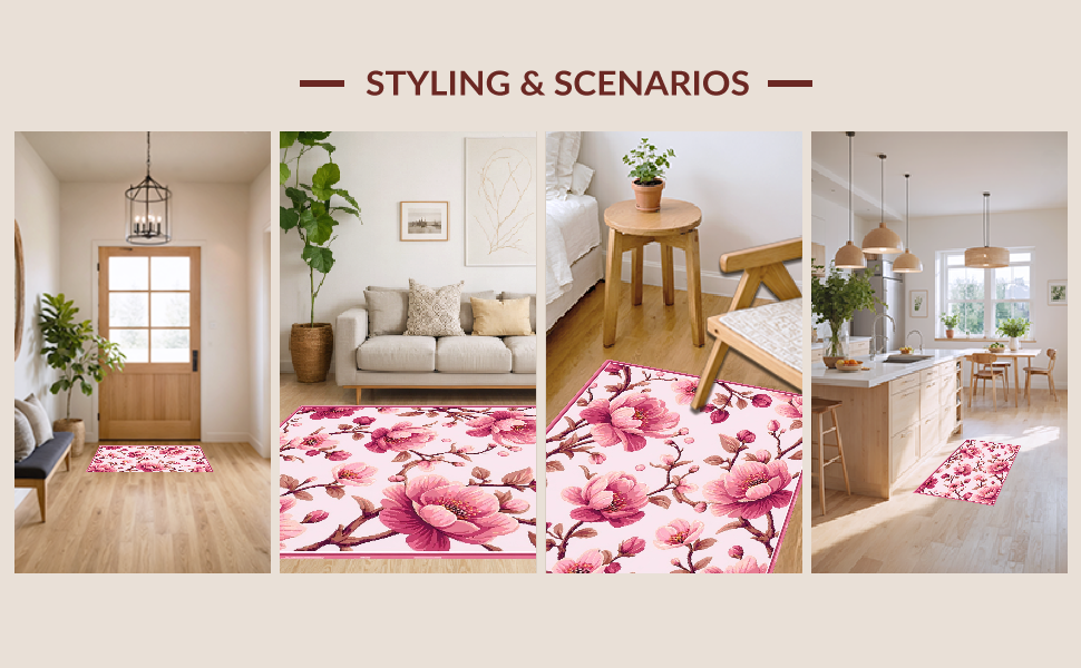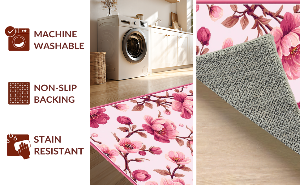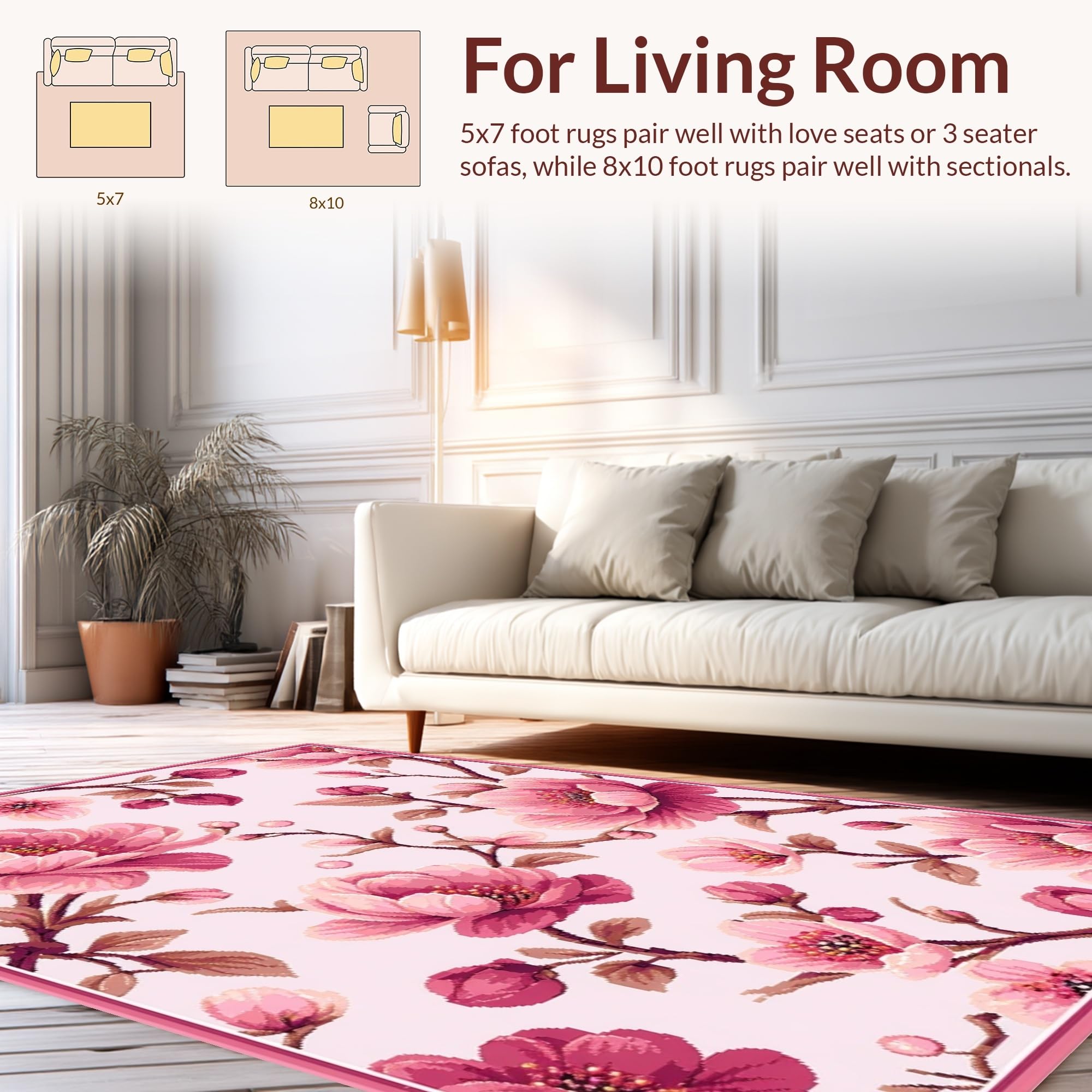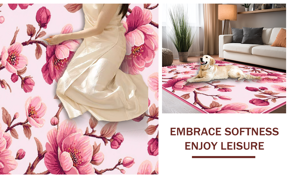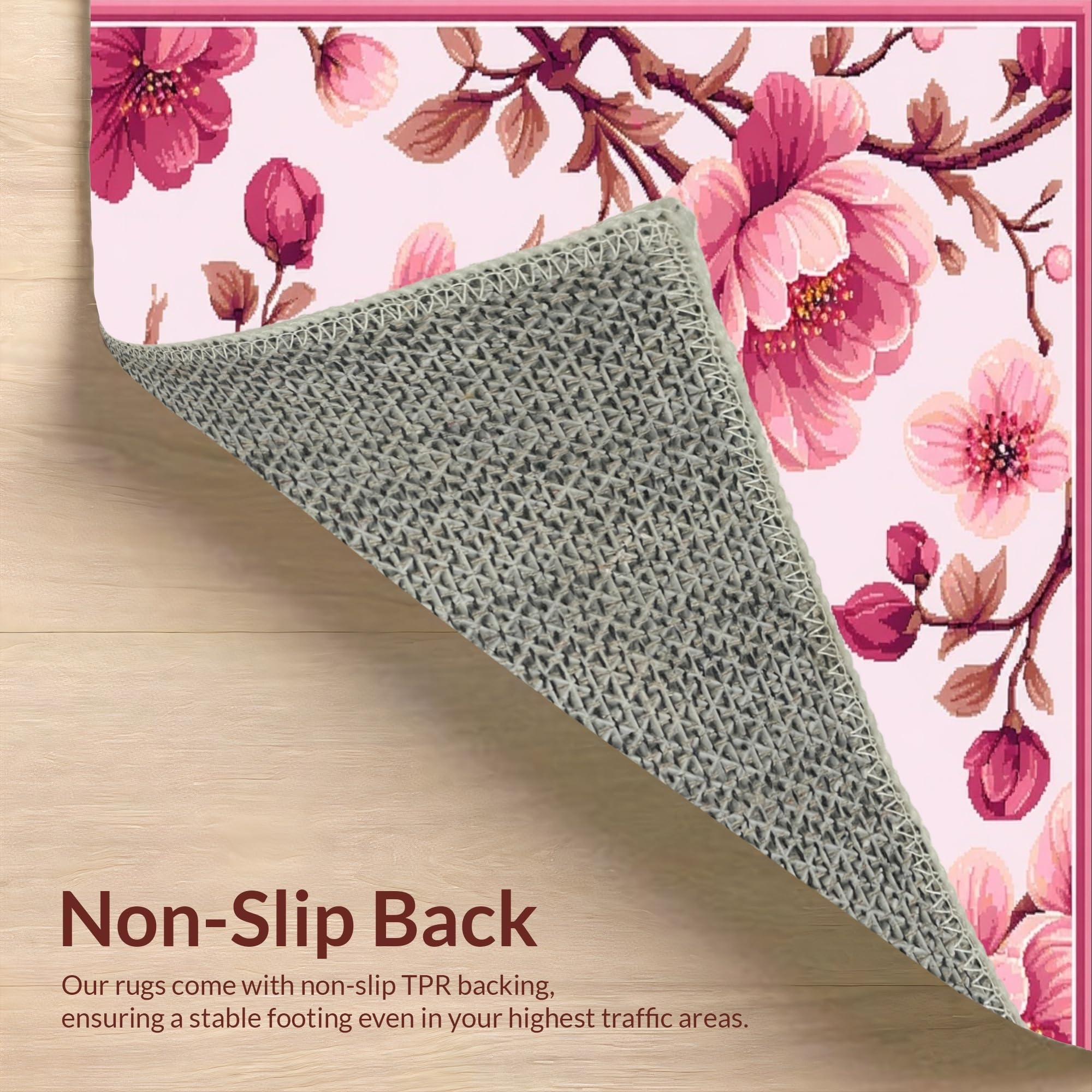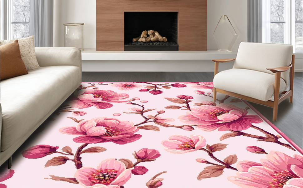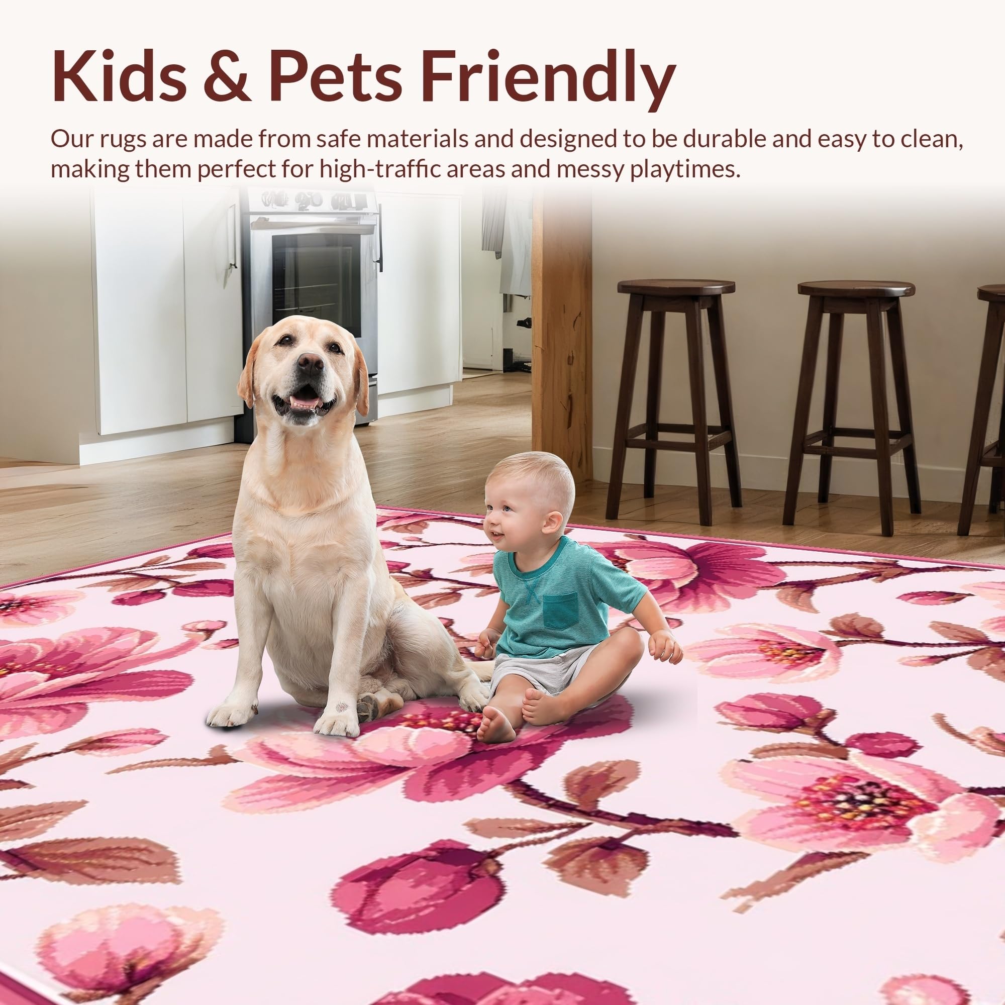 Ultra Soft Area Rug, Non Slip, Stain Resistant, Washable Area Rugs for Living Room, Bedroom, Vibrant Cheerful Garden Pattern(Pink) Overview: