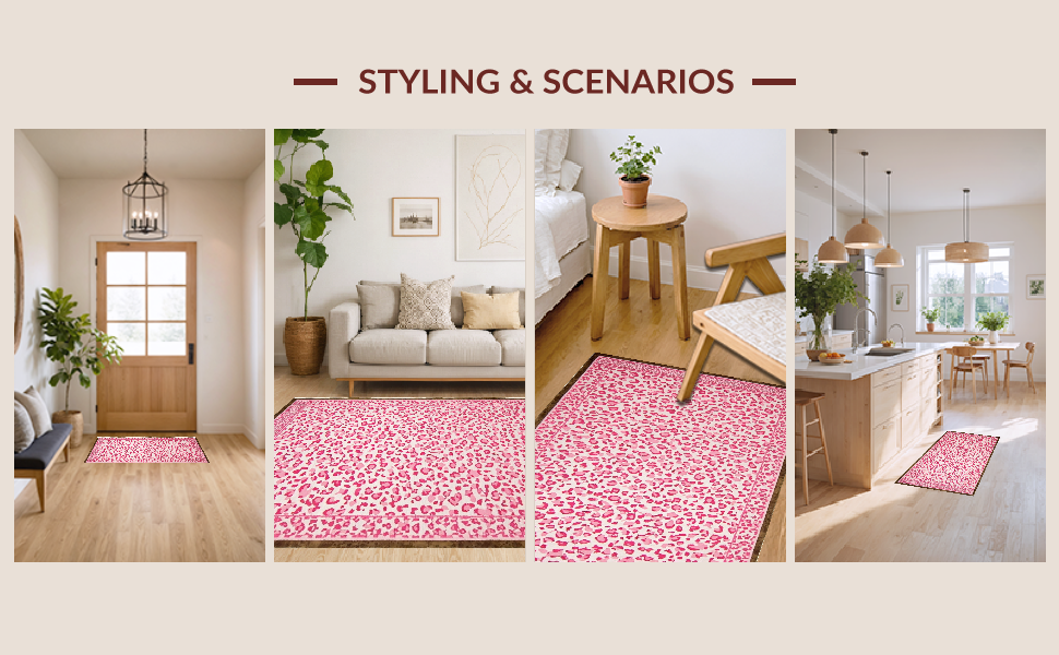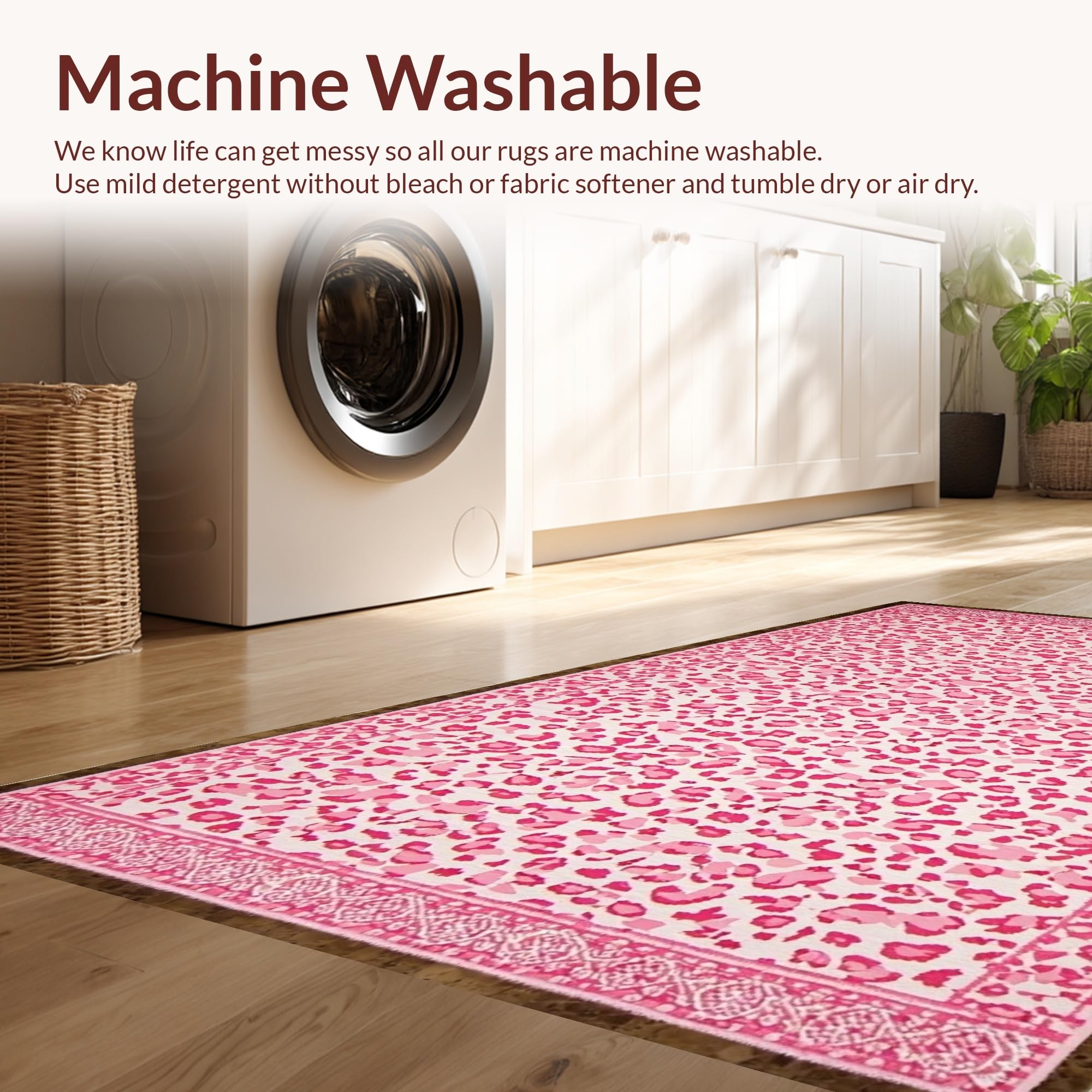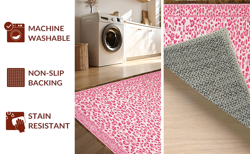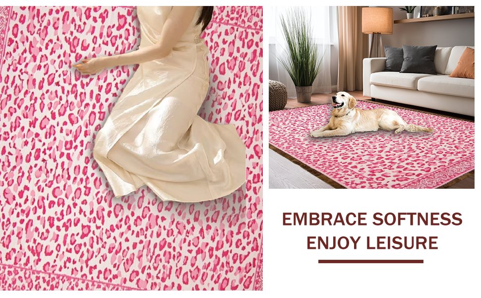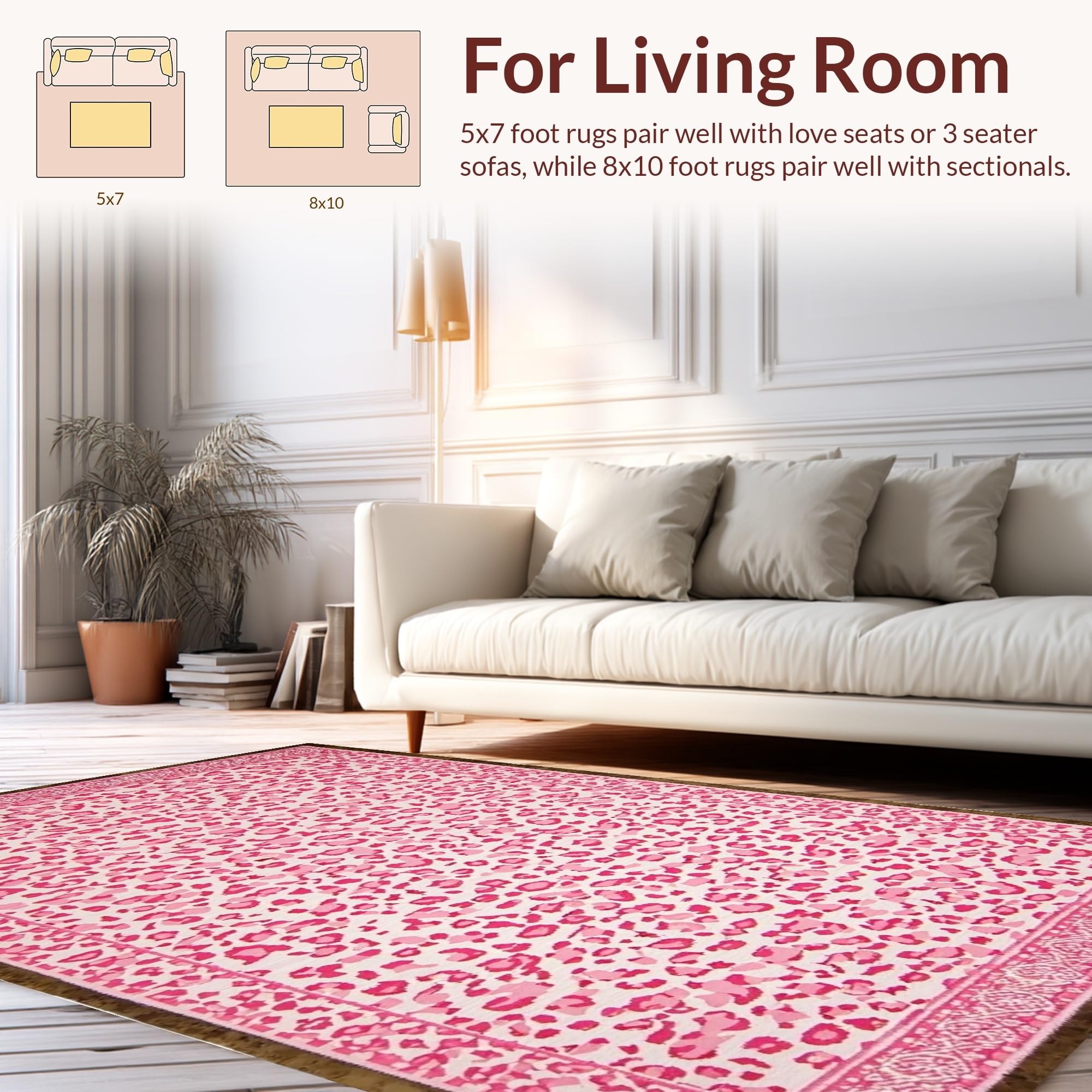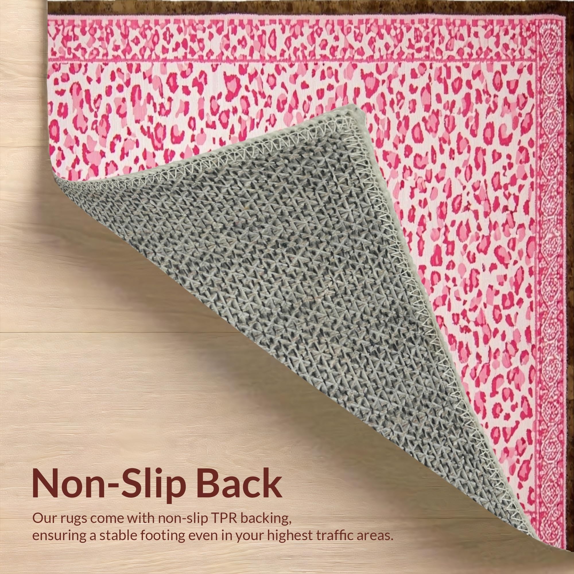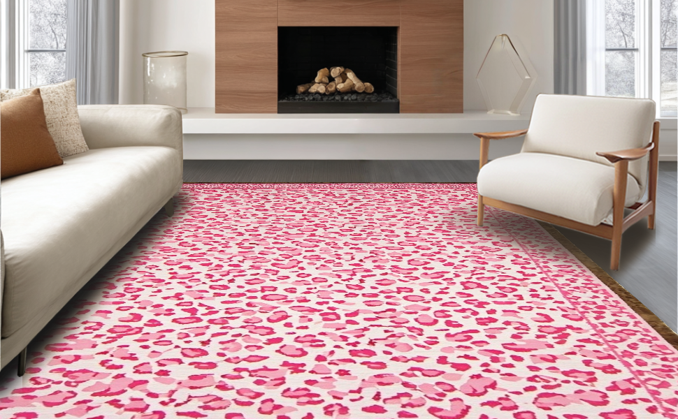 Ultra Soft Area Rug, Non Slip, Stain Resistant, Washable Area Rugs for Living Room, Bedroom, Vibrant Cheetah Print Elegance(Pink) Overview: