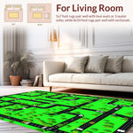 Flatwoven High Traffic Area Rug, Vibrant Cityscape Play, Non Slip, Stain Resistant, Washable Area Rugs for Living Room, Bedroom (Green) Overview: