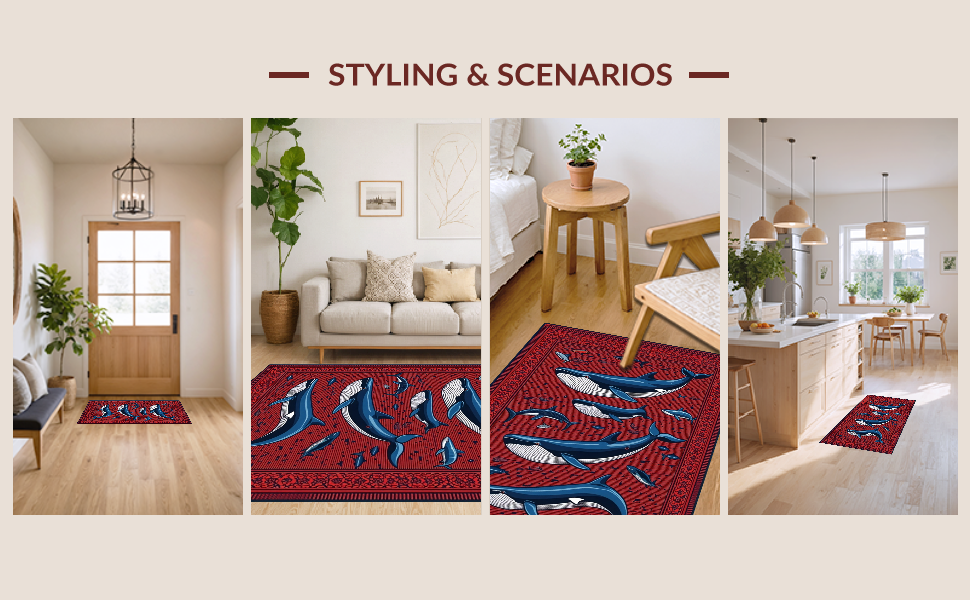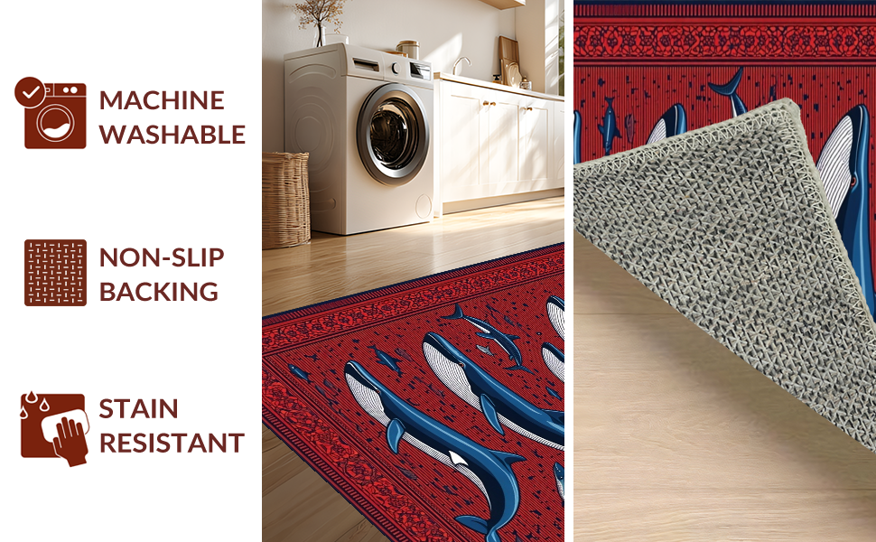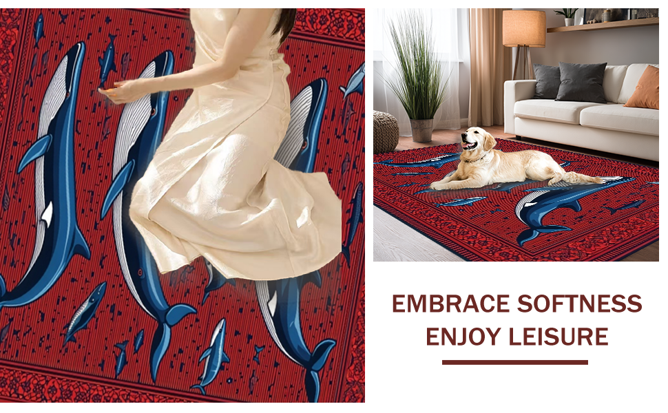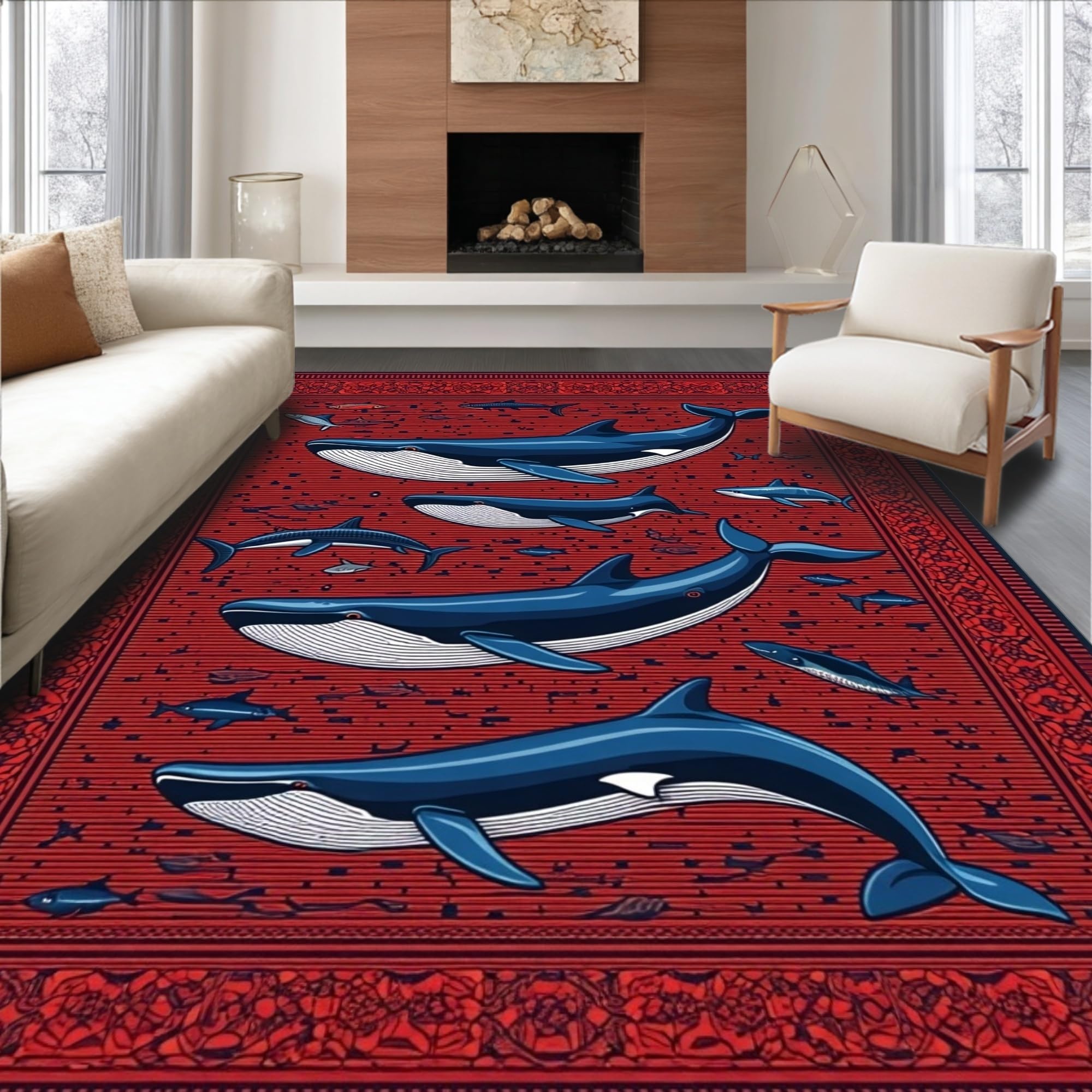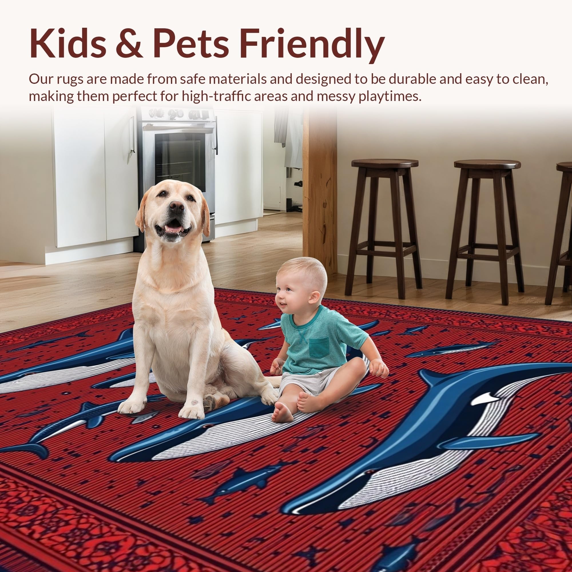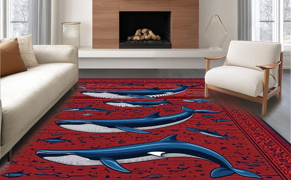 Ultra Soft Area Rug, Non Slip, Stain Resistant, Washable Area Rugs for Living Room, Bedroom, Vibrant Coastal Creature Design(Red) Overview: